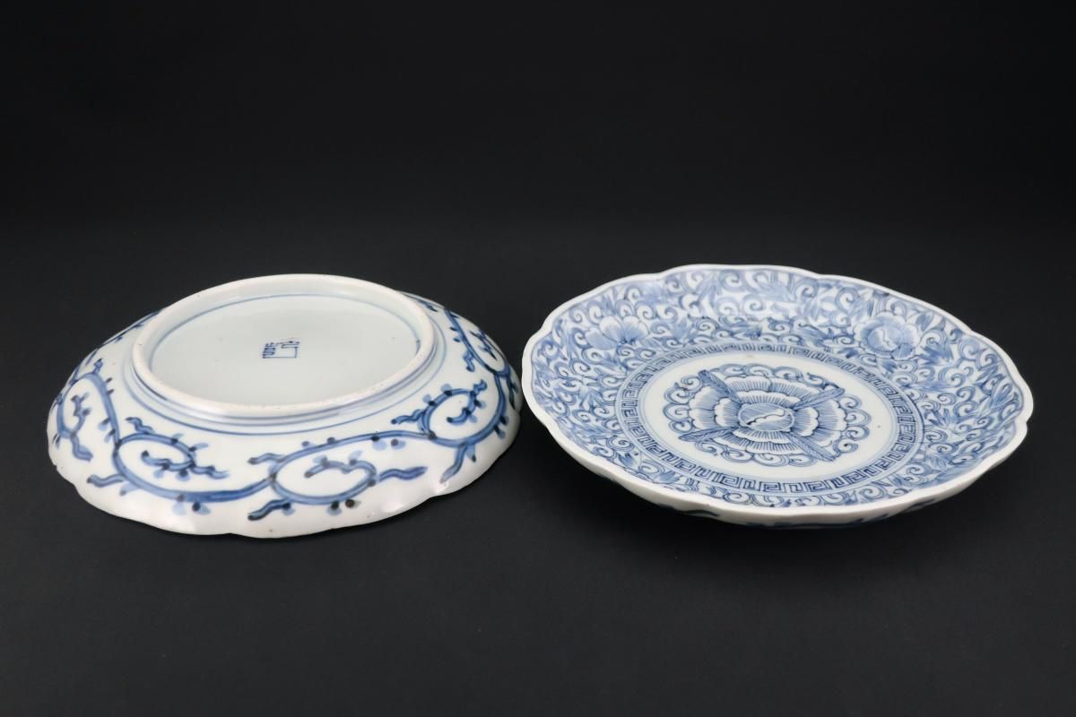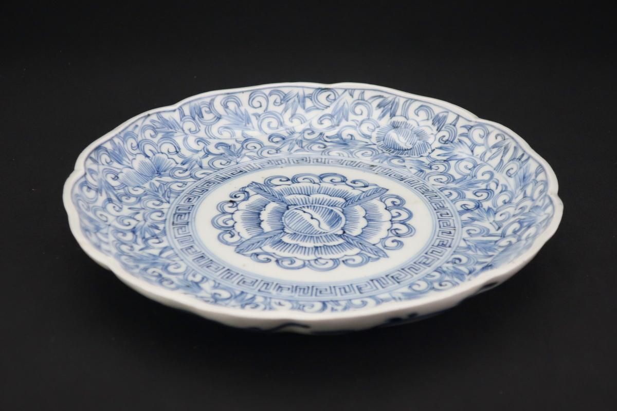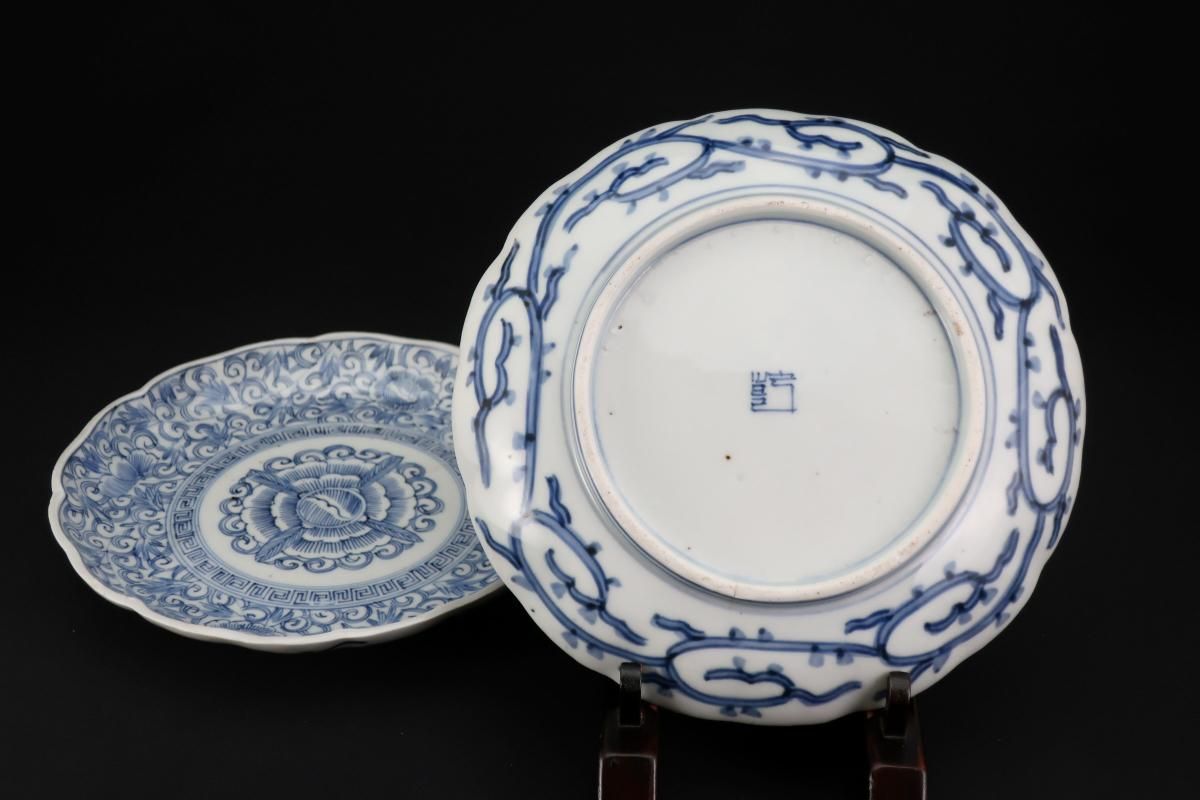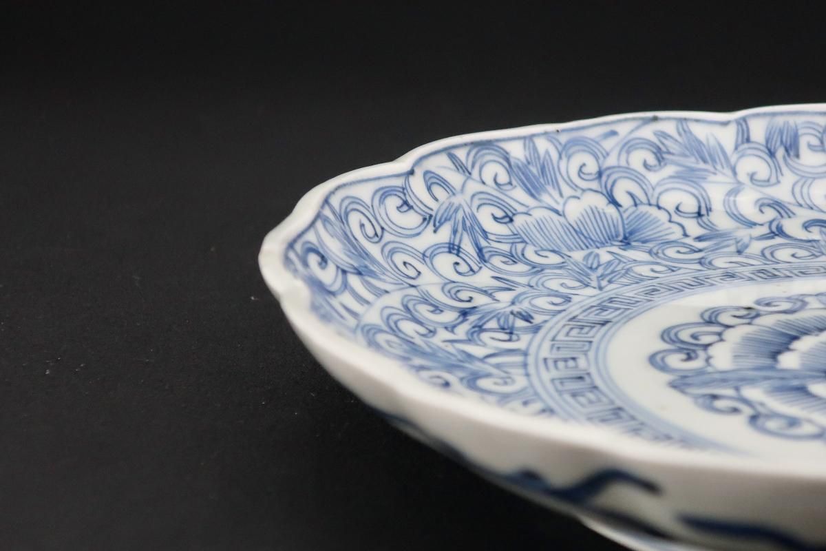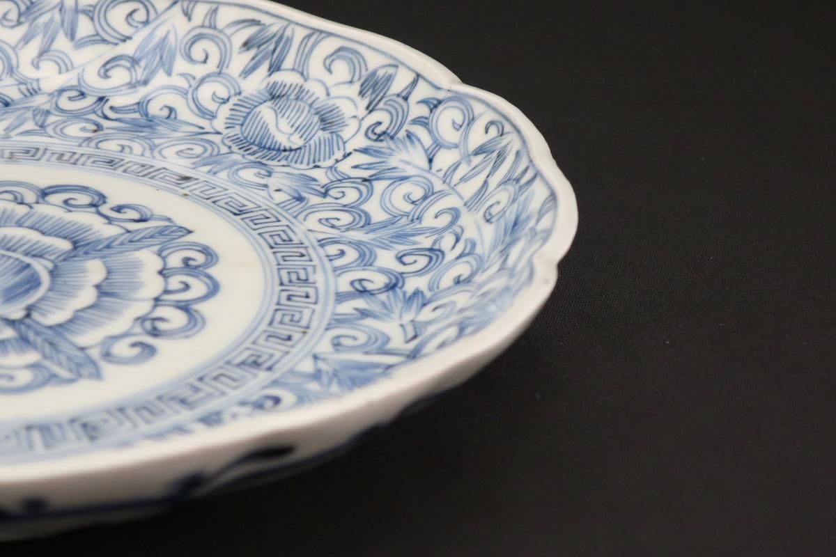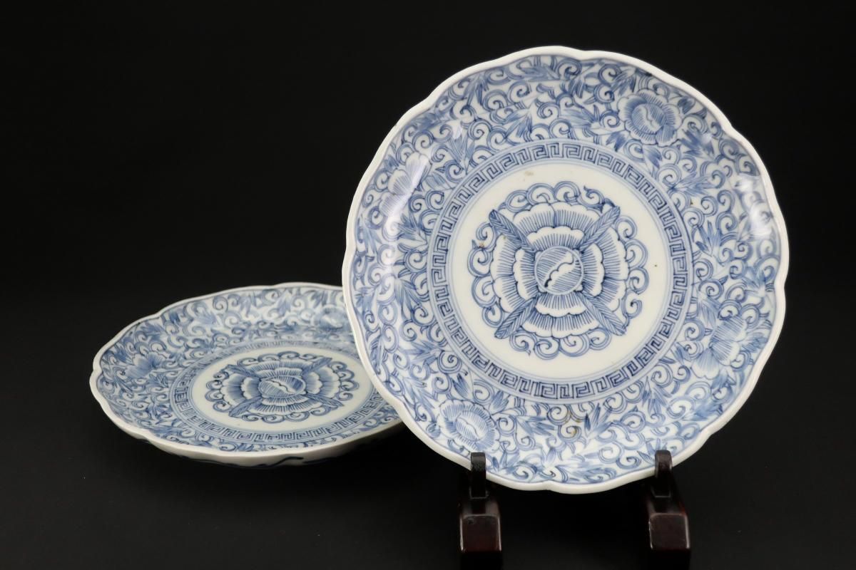 伊万里線描牡丹文七寸皿 二枚組 / Imari Blue & White Plates with the picture of Peony flower set of 2