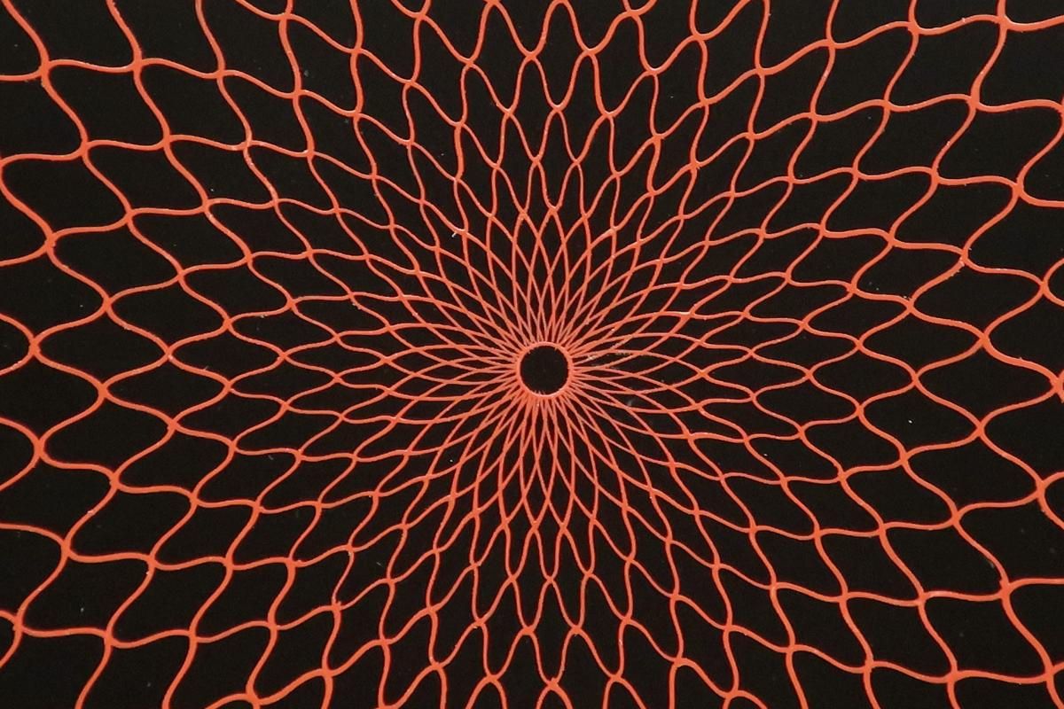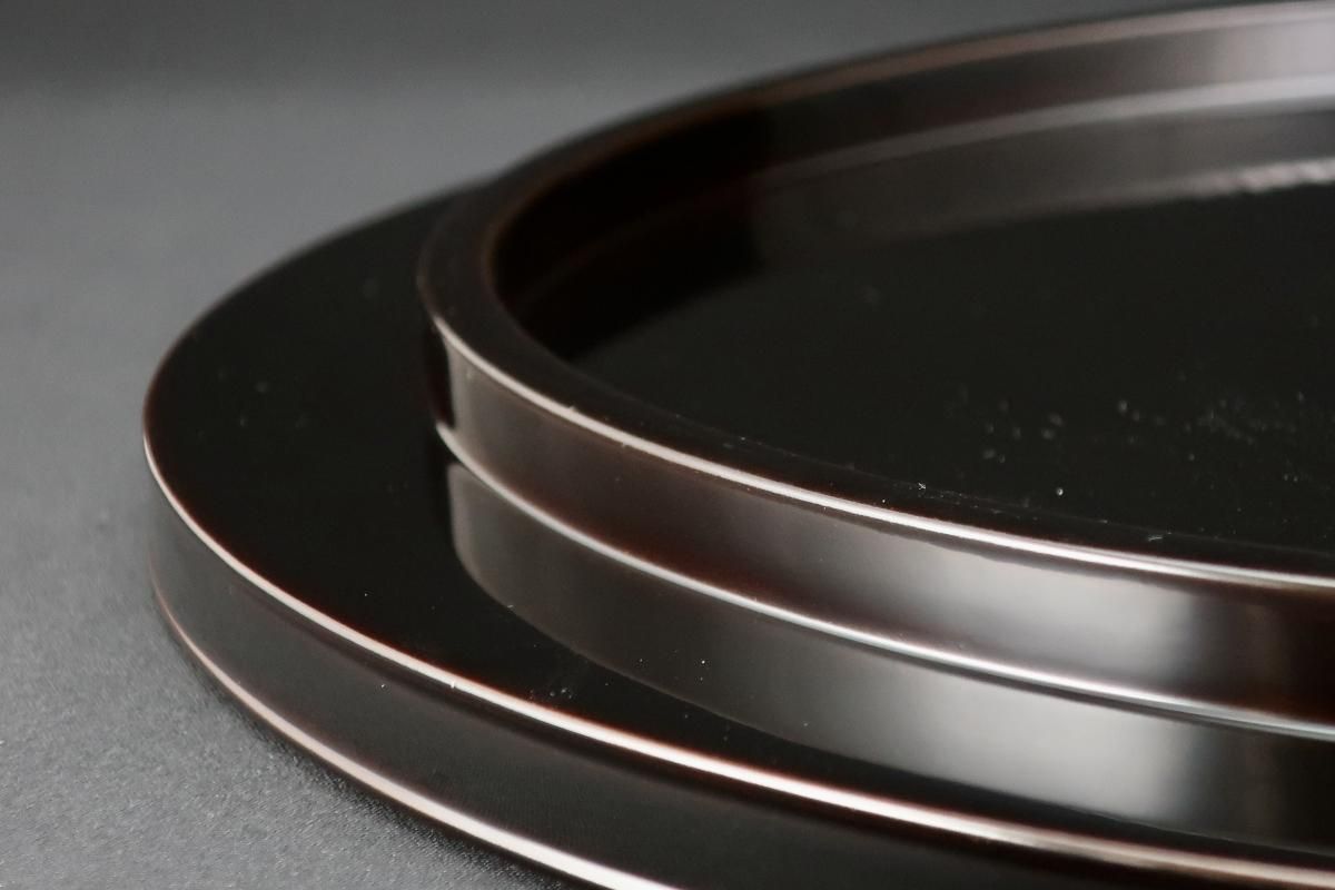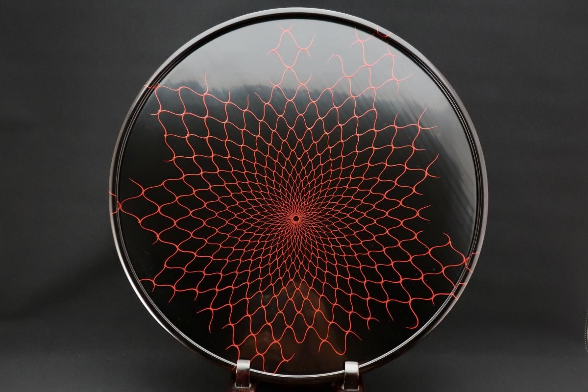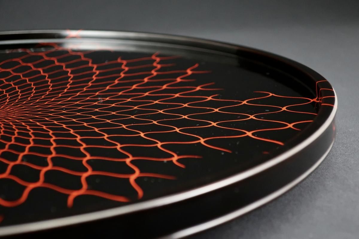 黒塗朱網蒔絵丸膳 四枚組 / Black-lacquered Round Trays with Red Net pattern set of 4