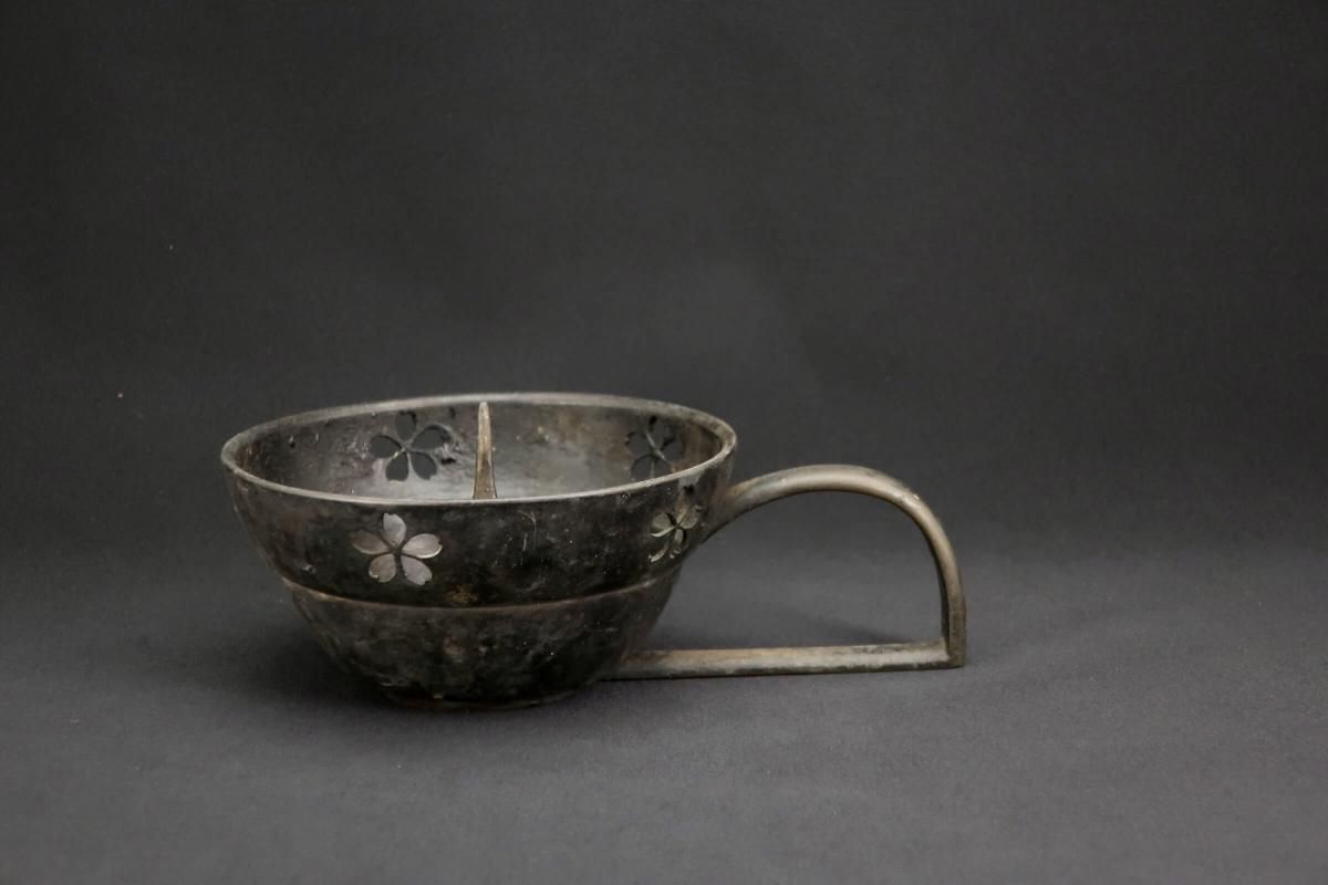 古銅桜透かしカップ形手燭 / Bronze Portable Candle Stick