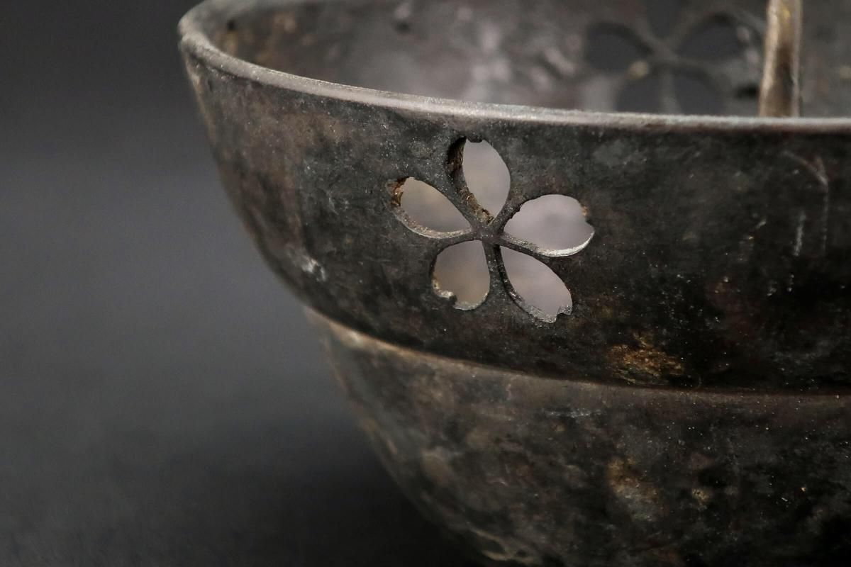 桜の透かしの装飾がなんともお洒落。小さな道具でもきっと大切に使われていたことでしょう。さりげなくお気に入りの場所に添えてあげてください。