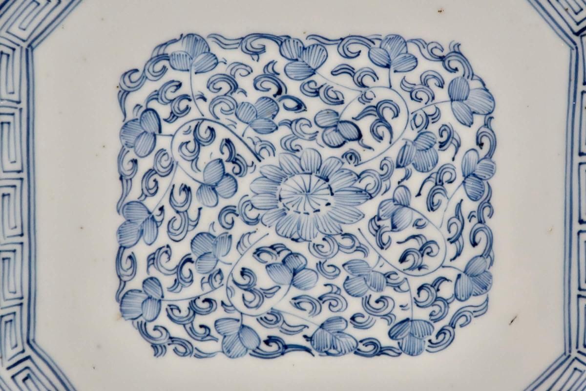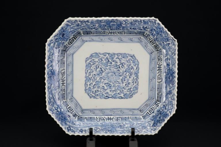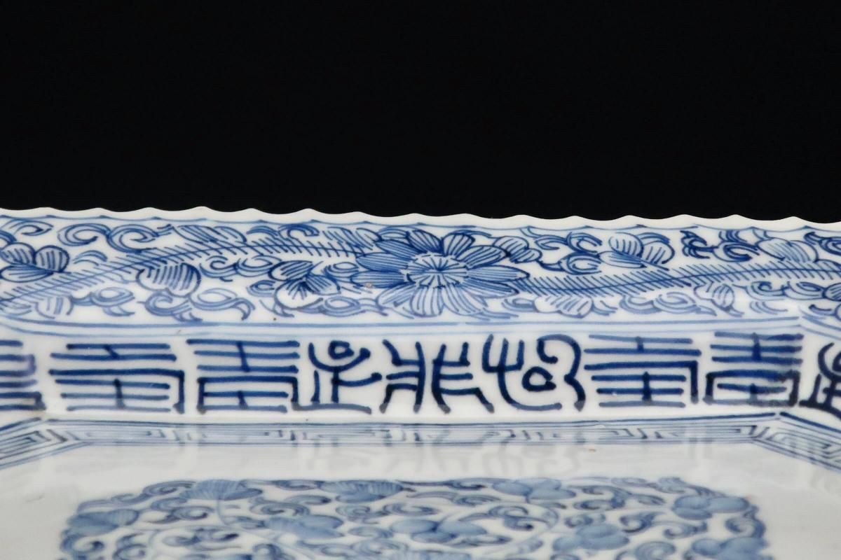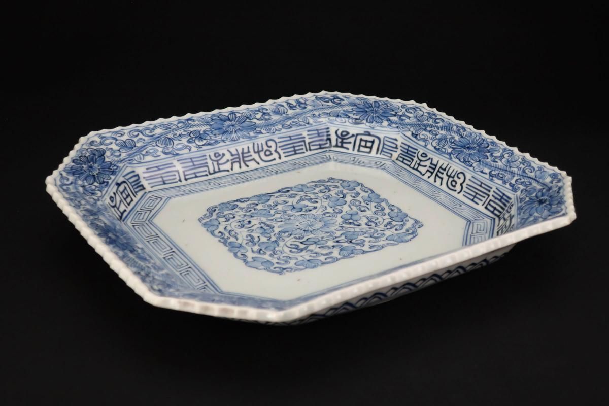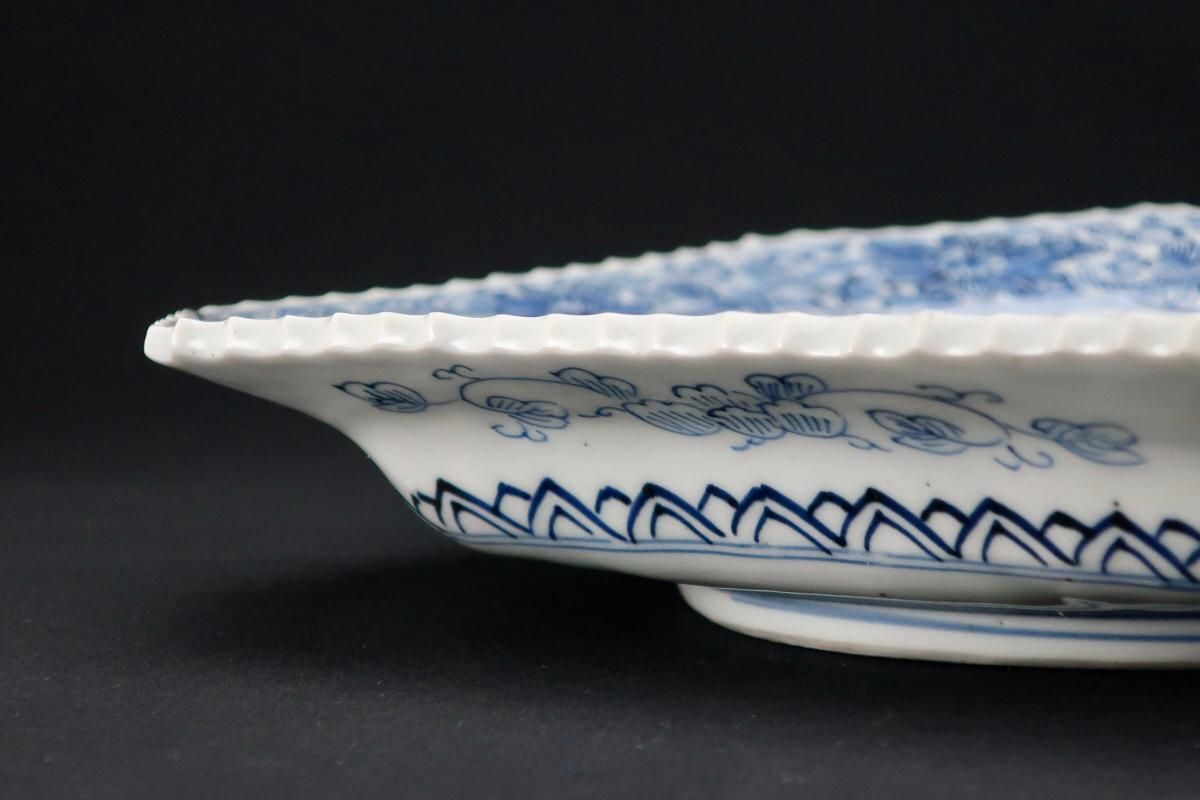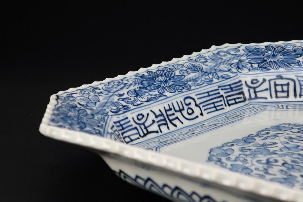 ☆線描で隅切でギザギザで・・・古伊万里ではお馴染みのこの色形。細かな絵付けが綺麗なやや長方形の染付皿。今ではきちんと残っているものも珍しくなってきました。