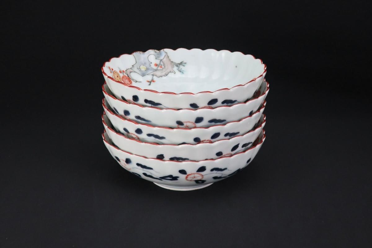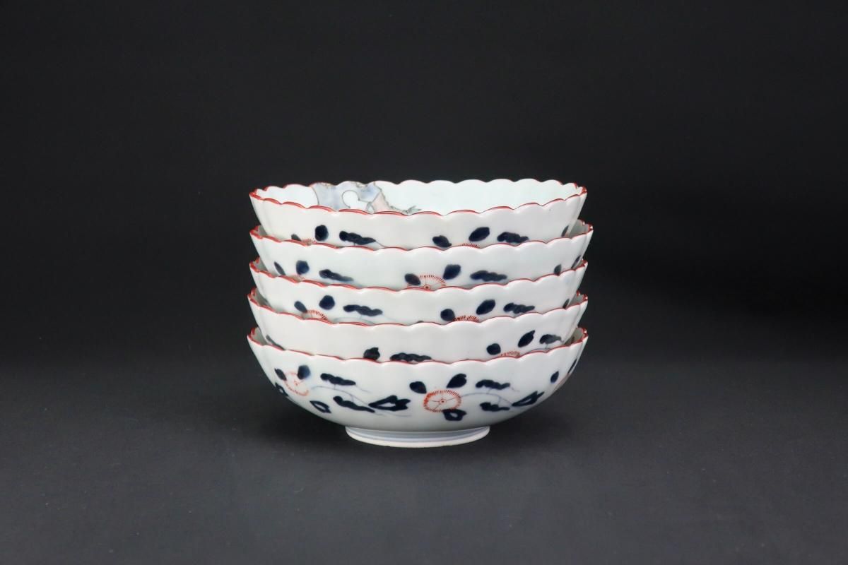 伊万里柿右衛門手菊花楕円形向付 五客組 / Imar Kakiemon-styled Oval Bowls set of 5