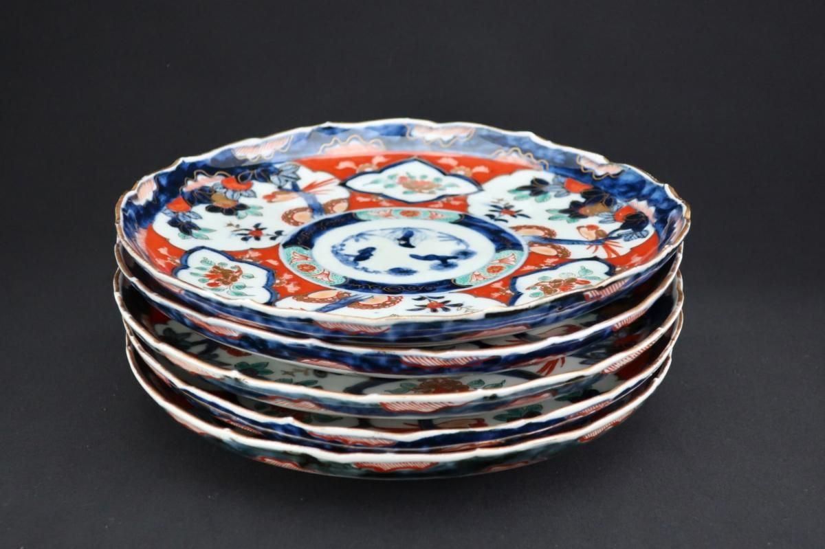 伊万里色絵窓絵花鳥文七寸皿 五枚組 / Imari Polychrome Plates with the picture of Flowers and Birds set of 5