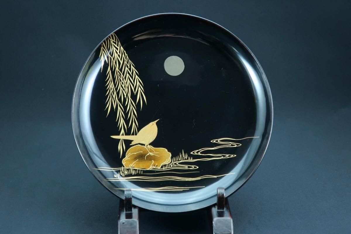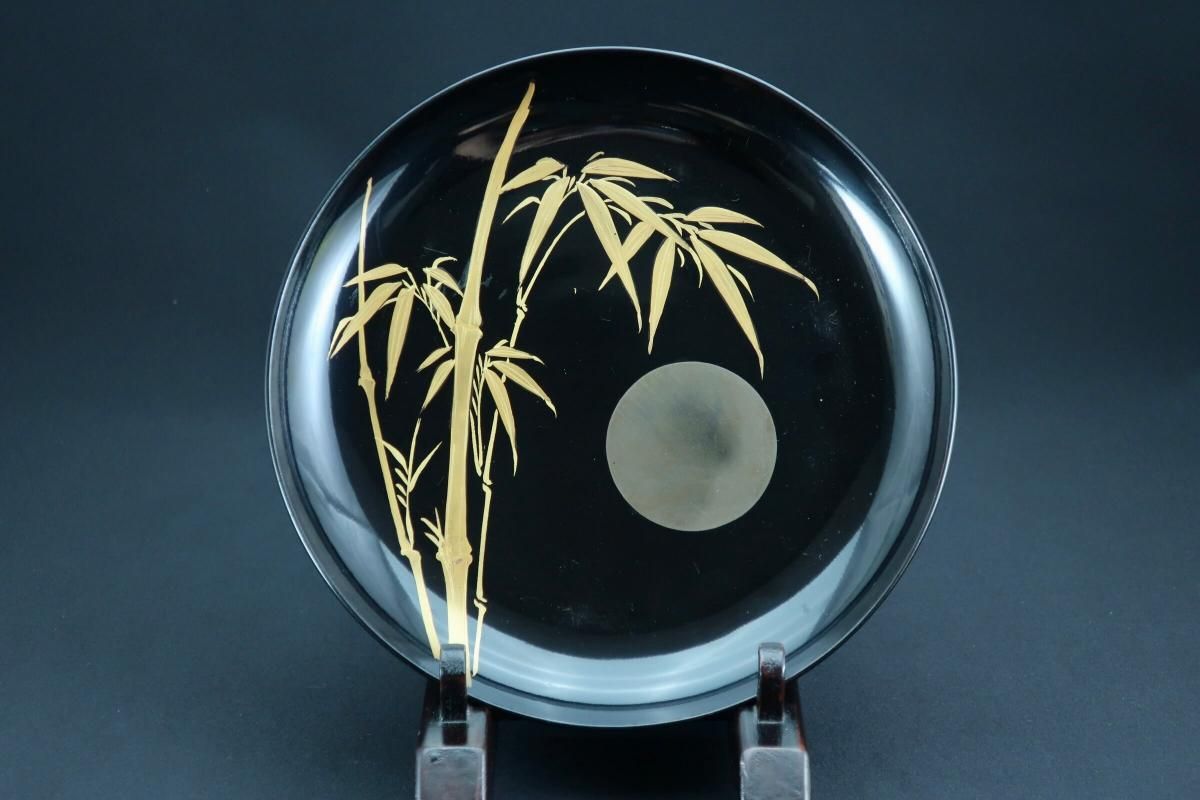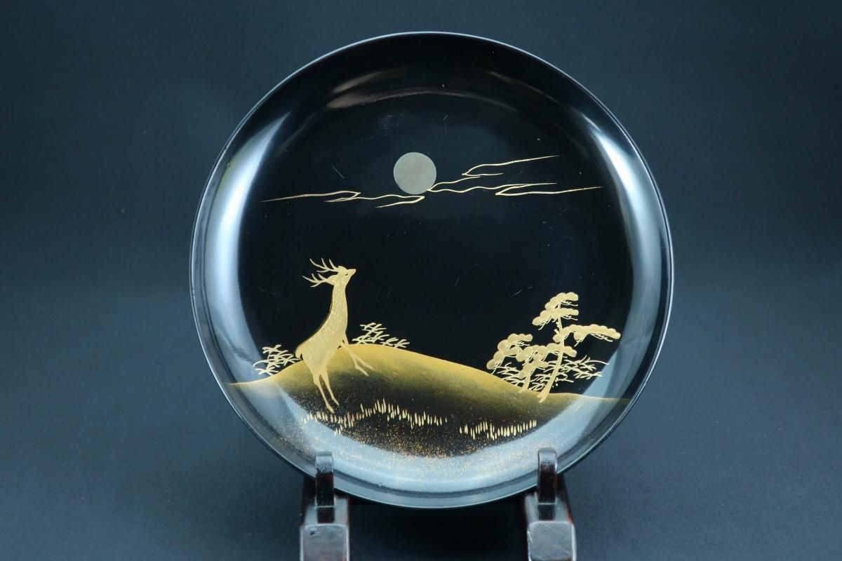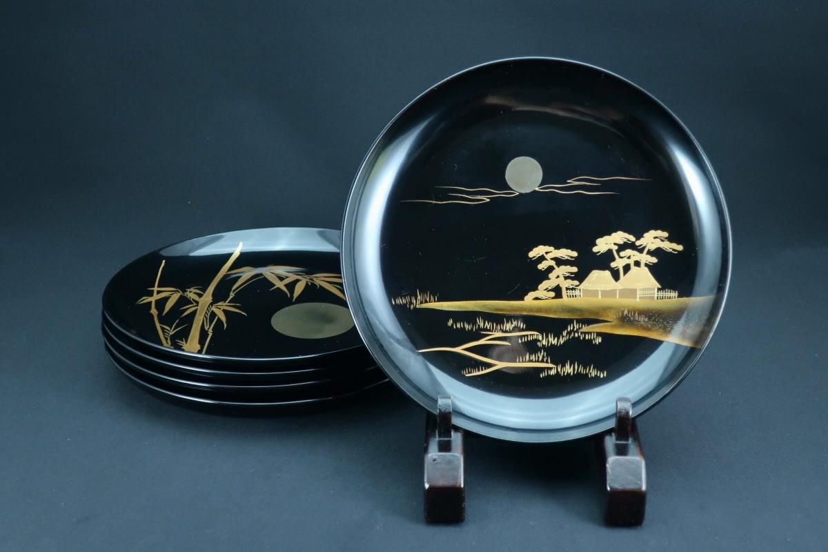 ¹õÅÉ¿ÞÊѷ³¨Ï»À£»®¡¡¸ÞËçÁÈ­¡ / Black-lacquered Plate with 'Makie' picture of Moon set of 5