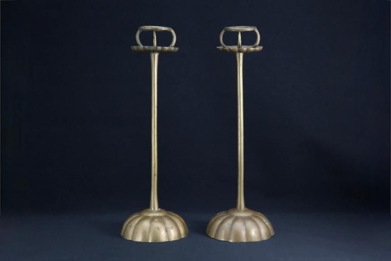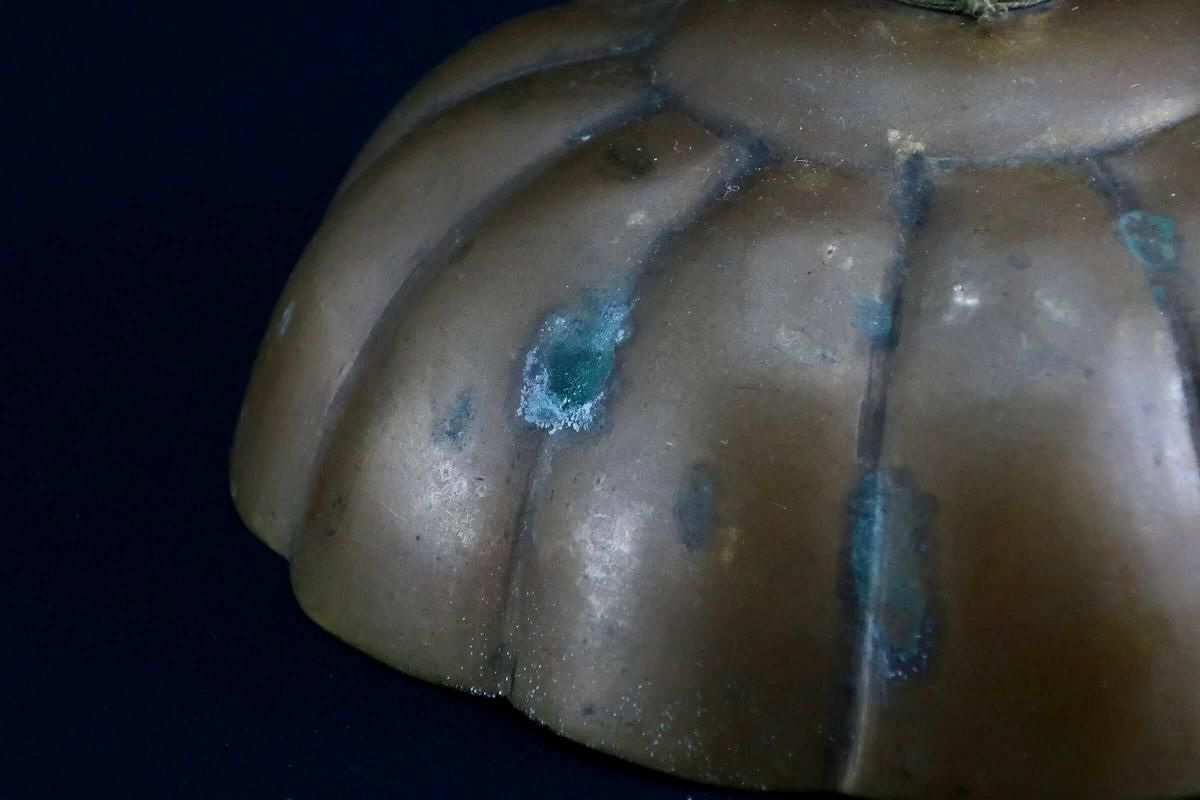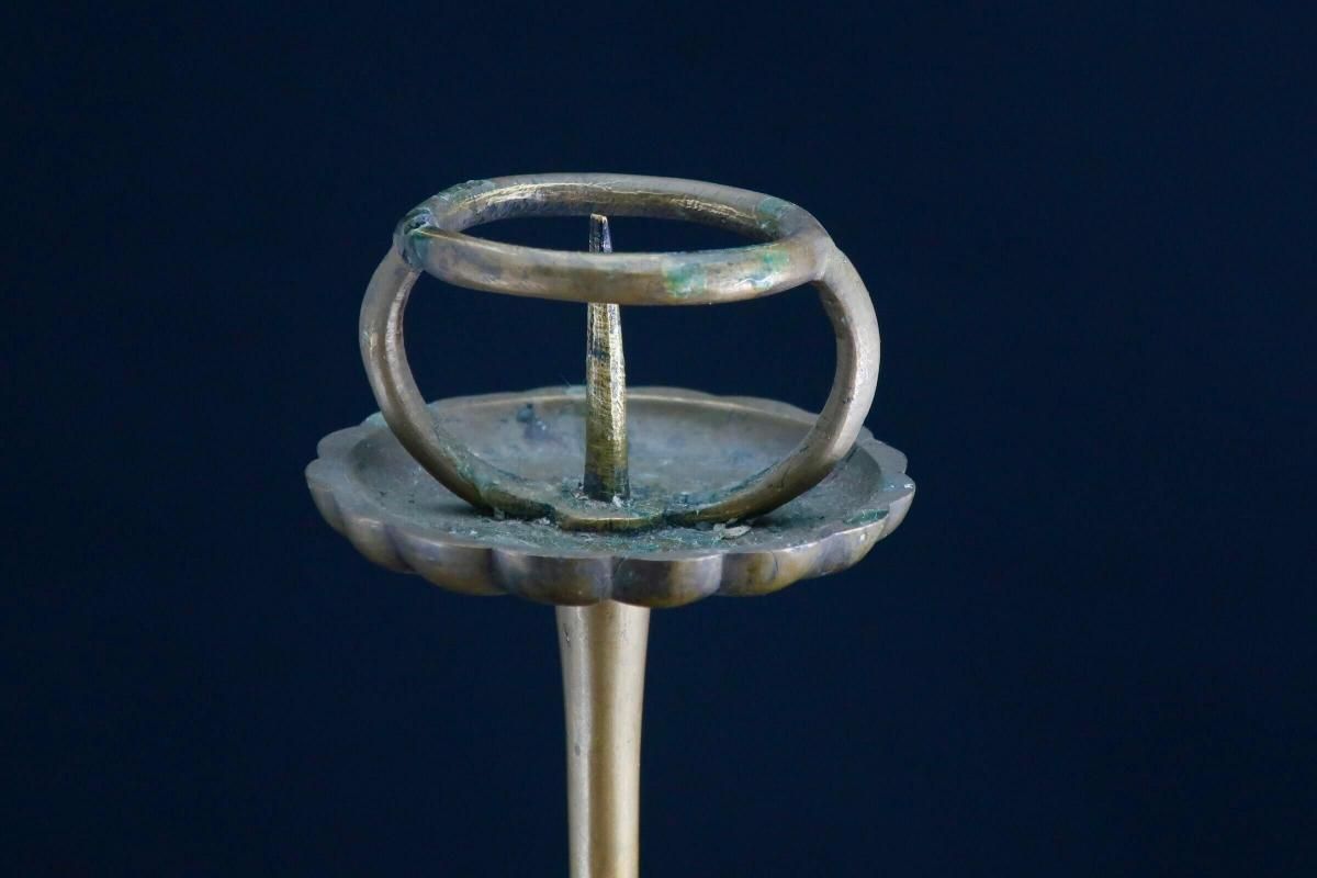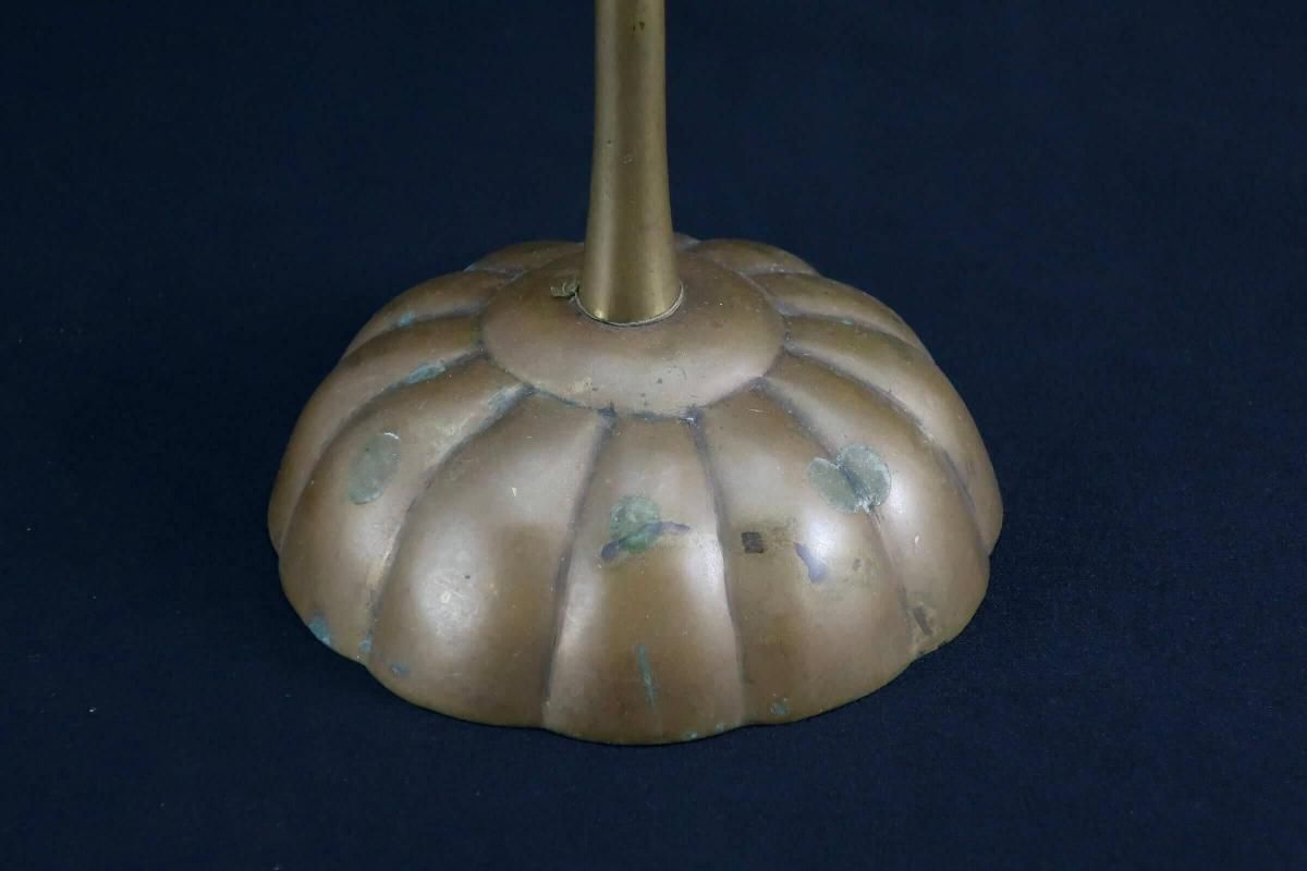 ☆実際に蝋燭を灯さなくともオブジェとしても楽しめる古い銅製の燭台。時代の緑青が時代を物語ってくれています。