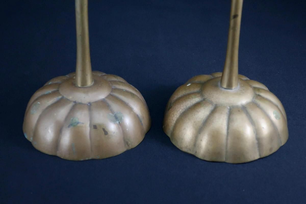銅器菊花形燭台 一対 / Bronze Chrysanthemum-flower-shaped Candle Sticks 1 pair