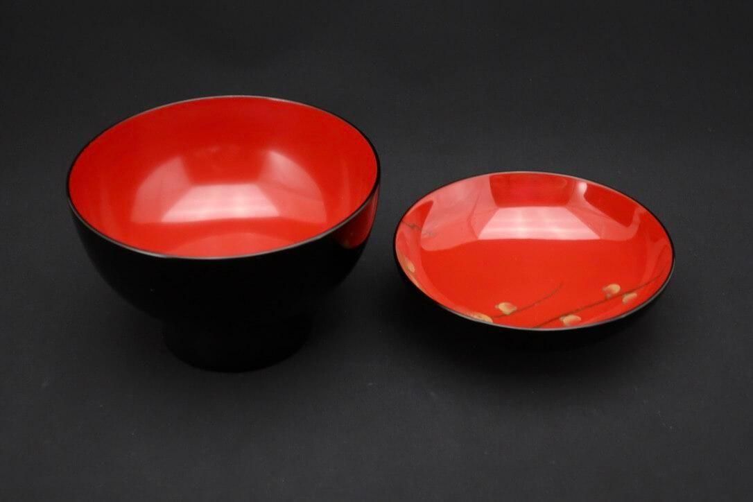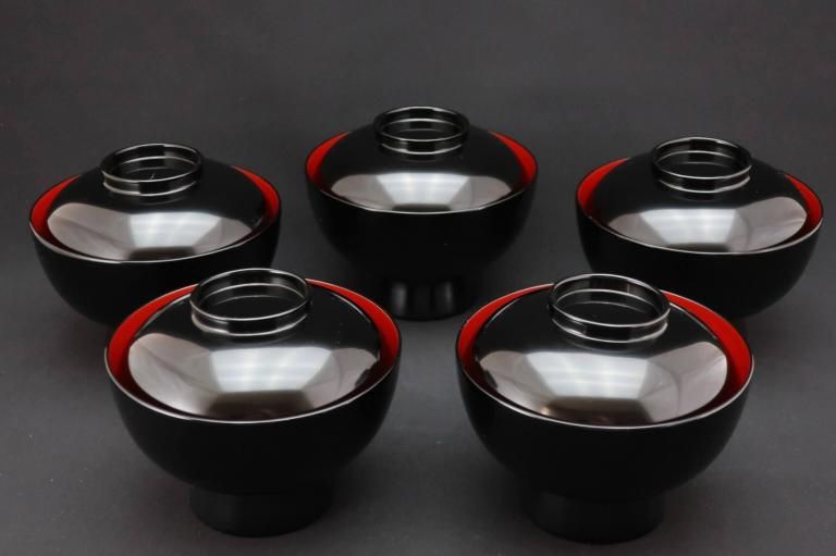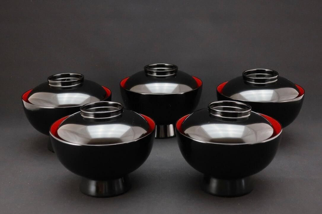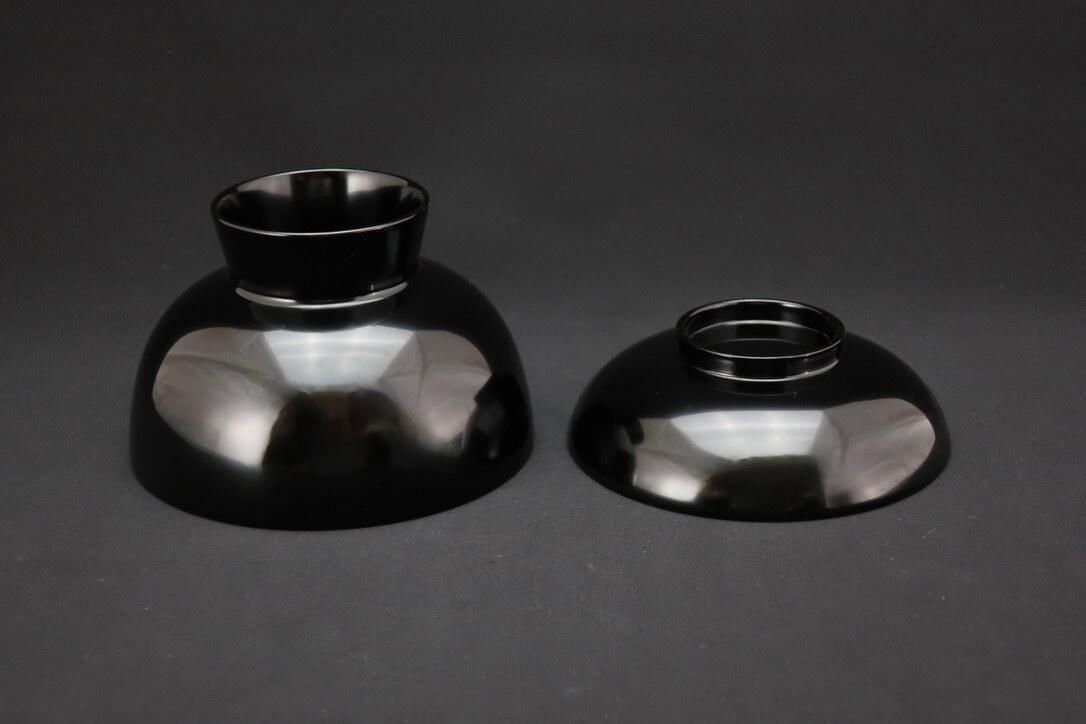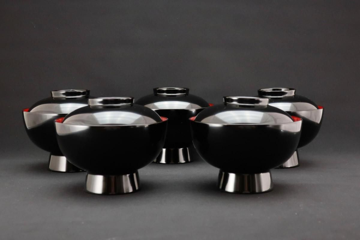 輪島尚古堂黒塗梅の図煮物椀 五客組 / Wajima Black-lacquered Bowls with Lids set of 5