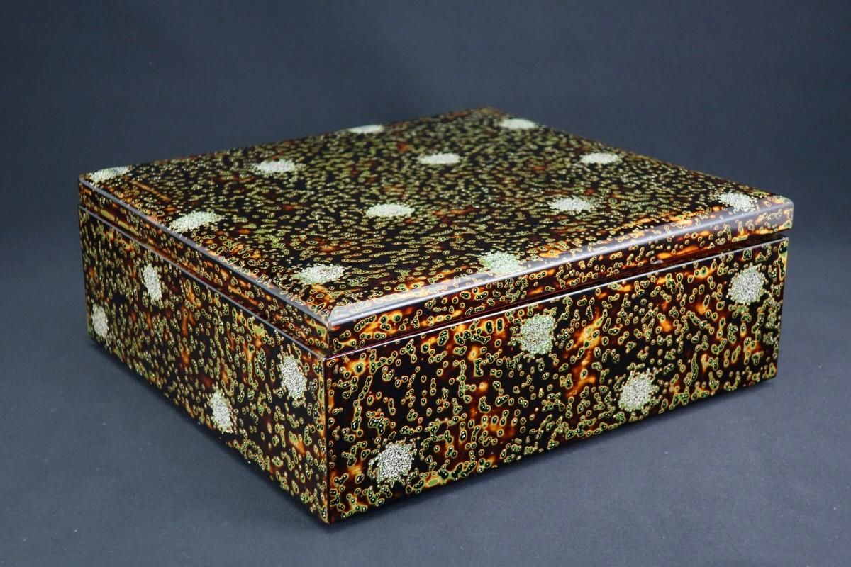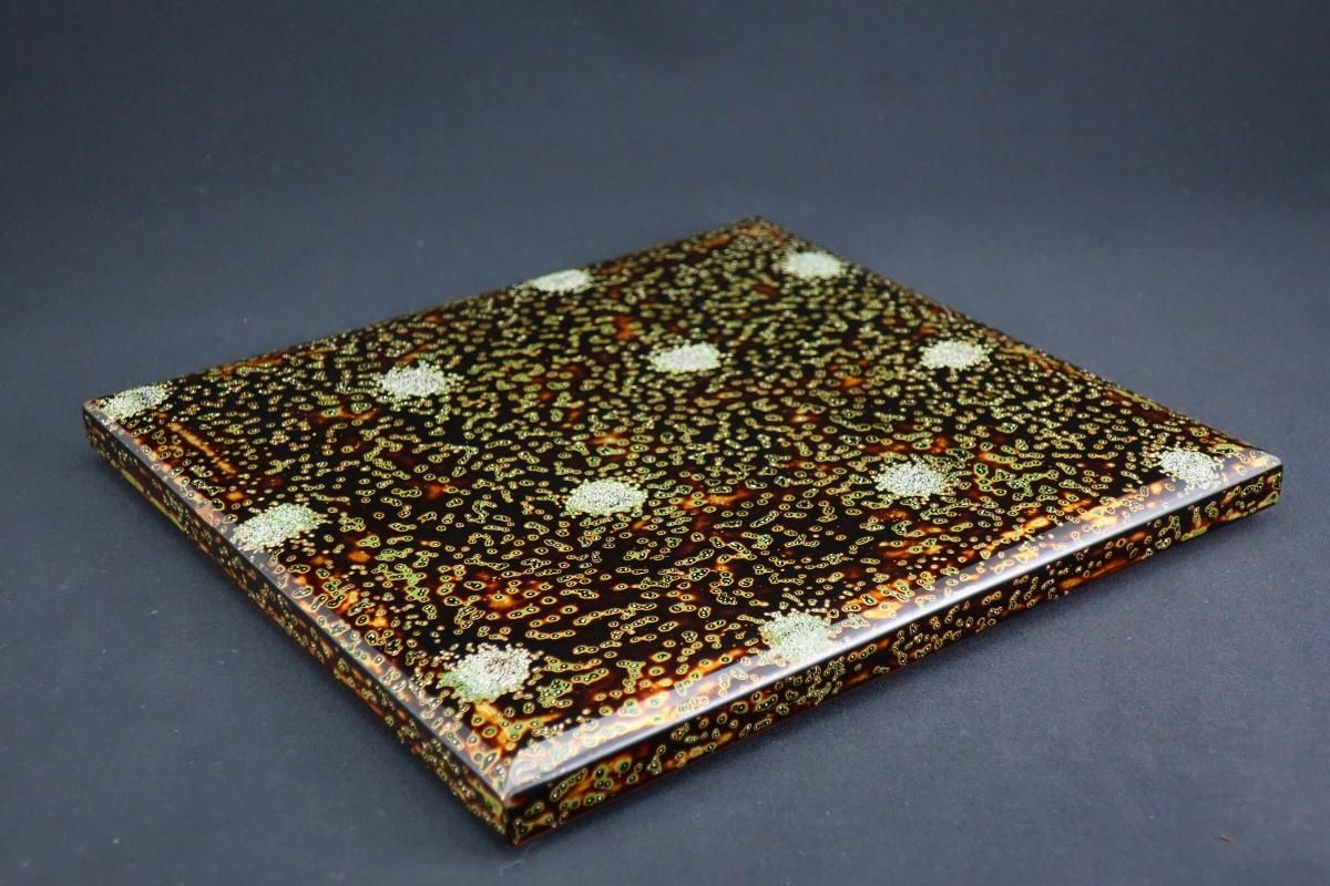☆卵の殻、貝殻、松葉、ヒノキ葉、菜種など、自然素材を使って研ぎ出した独特の模様で有名な若狭塗。この装飾が出来上がるまでの工程を知り、美しい艶を見ると作り手さんの根気を称賛したくなります。まさに根気とセンスの賜物、まずは画像でお楽しみください。