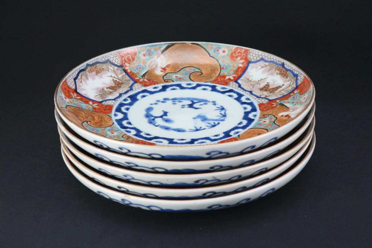 伊万里色絵鳳凰草花文七寸皿 五枚組 / Imari Polychrome Plates with the picture of Phoenixes and Flowers set of 5