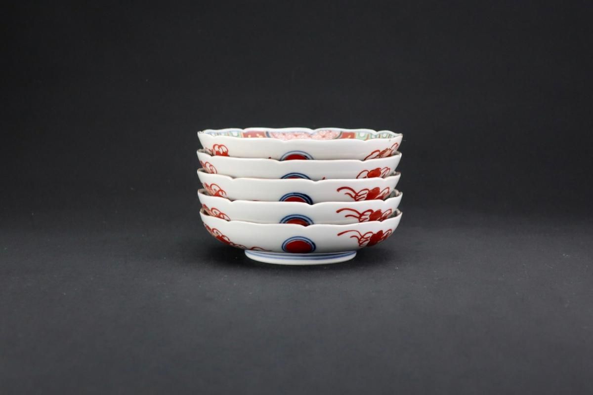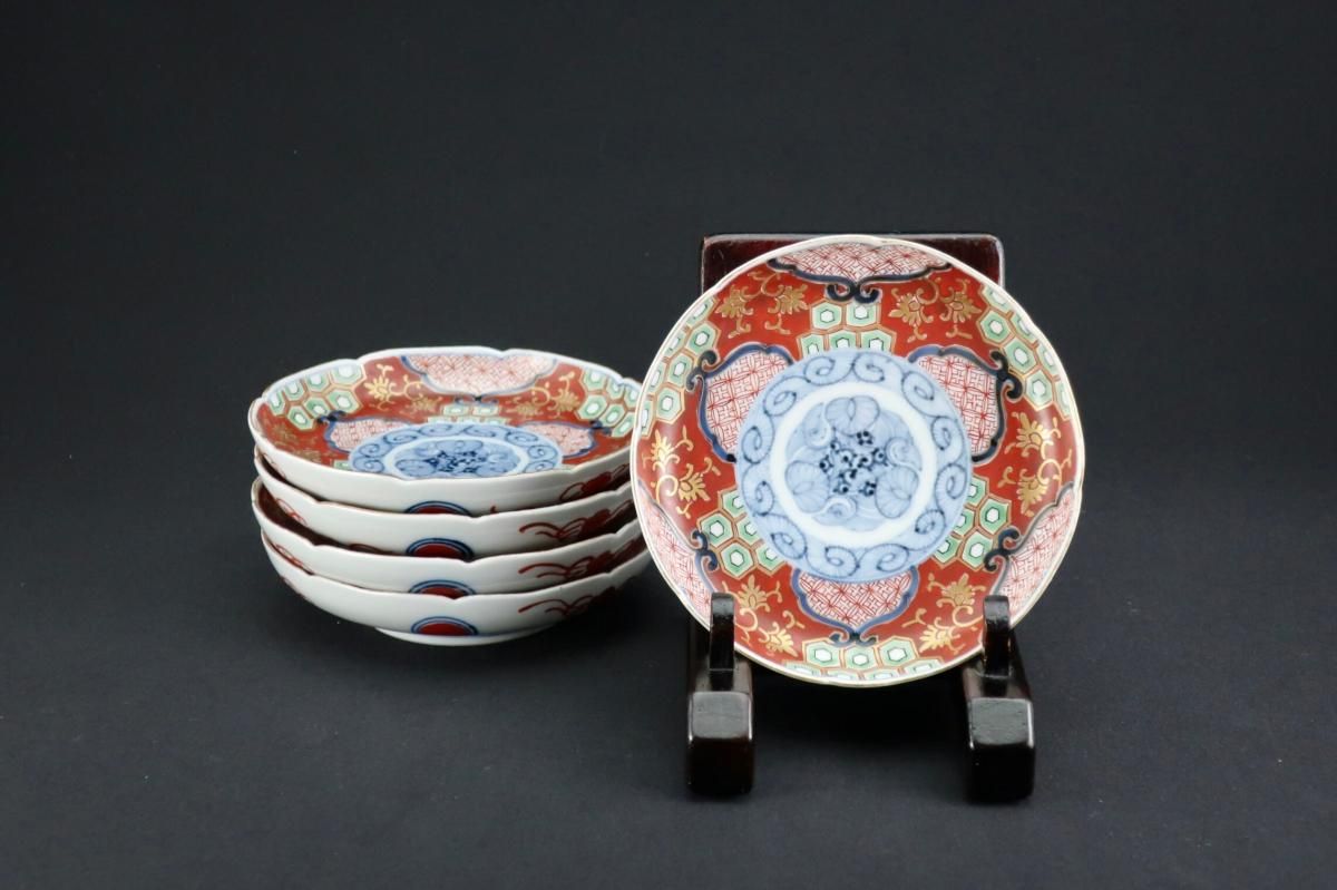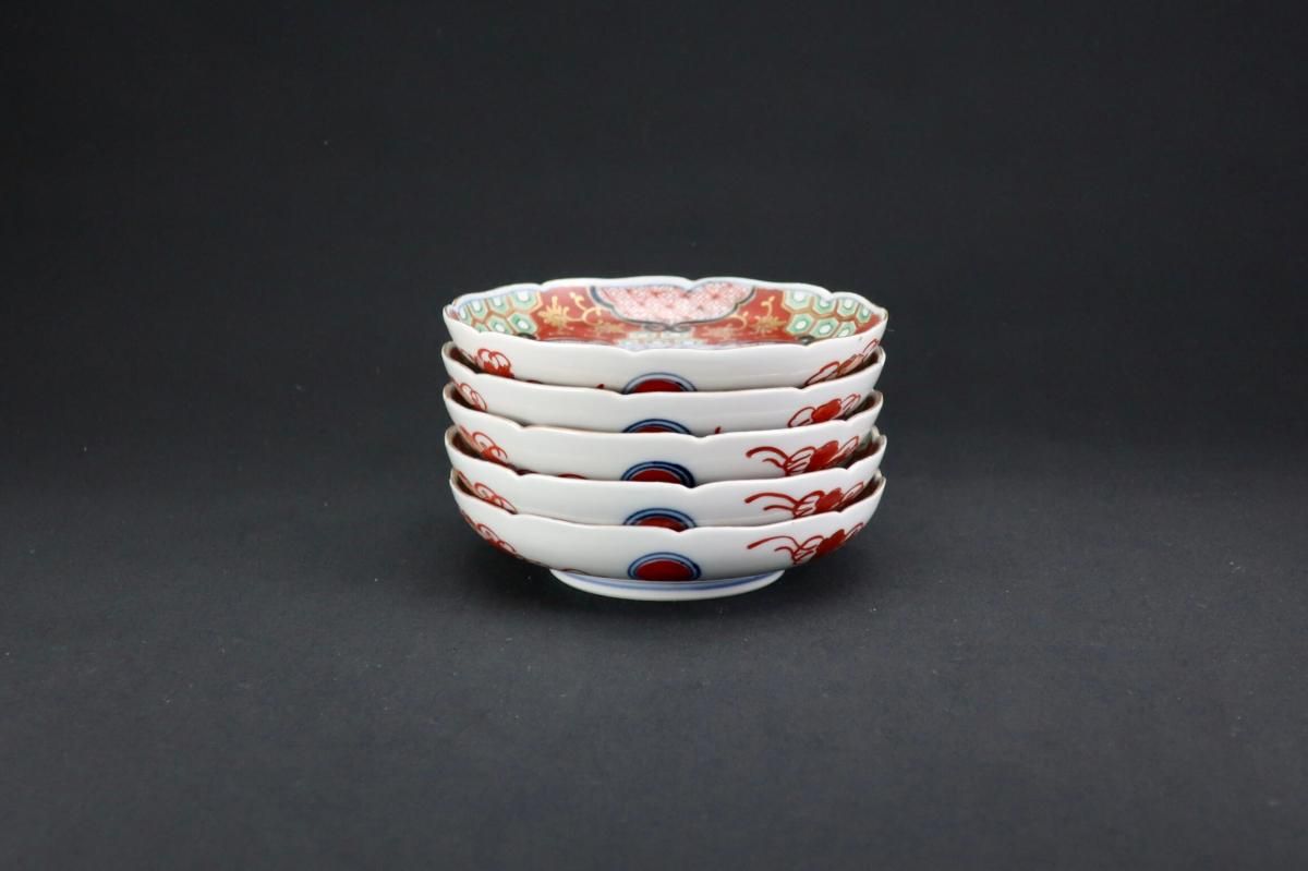 大聖寺伊万里金彩赤絵亀甲文四寸皿 五枚組 / Daishoji Imari Small Polychrome Plates set of 5