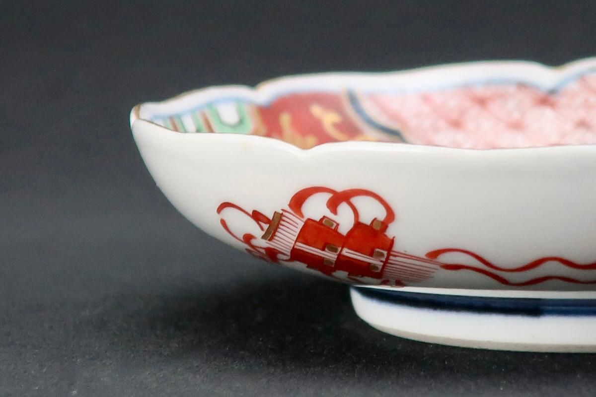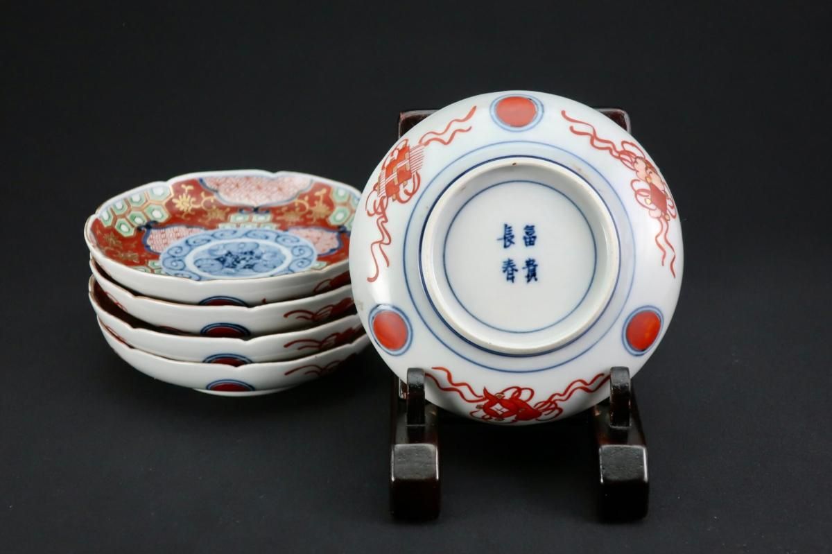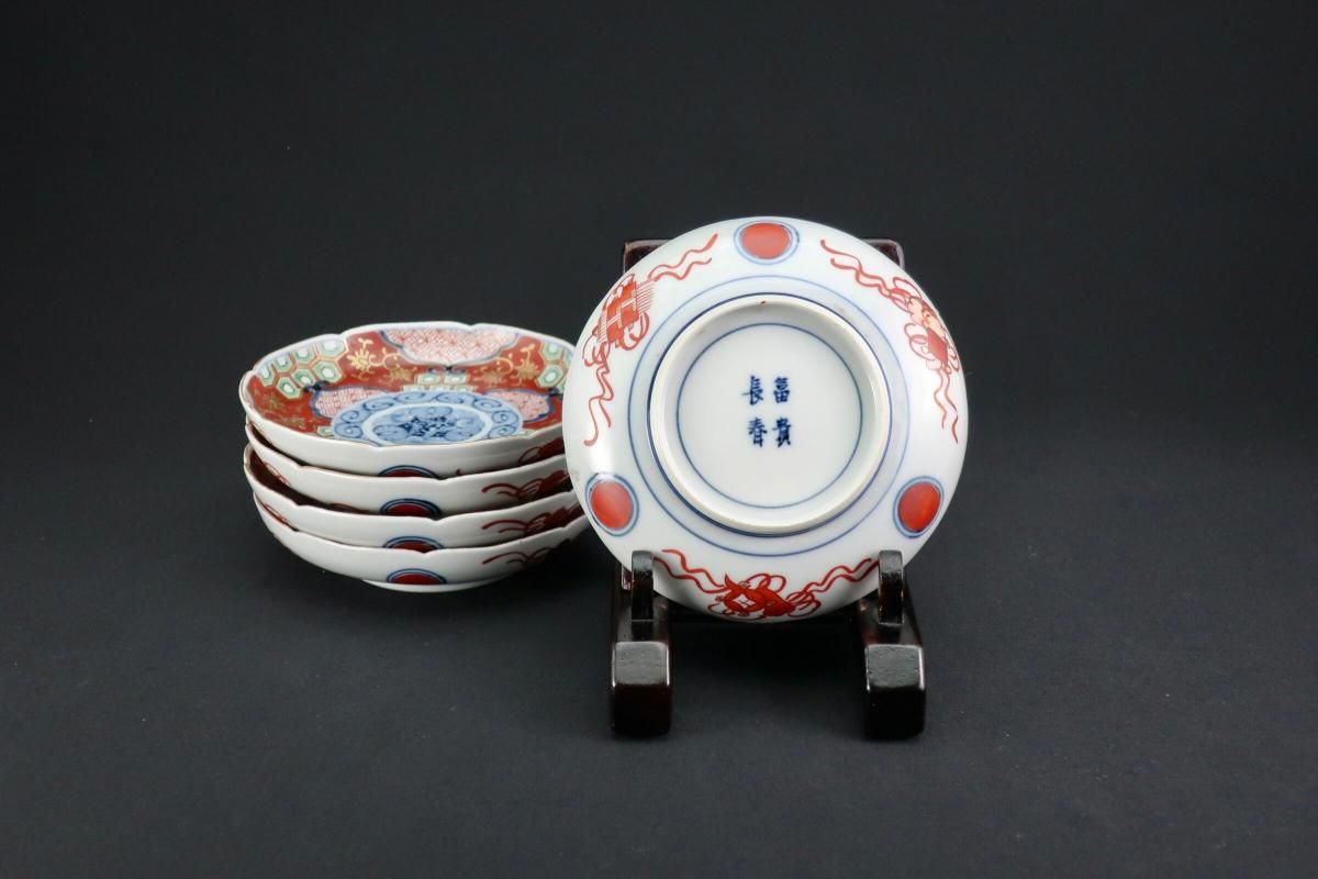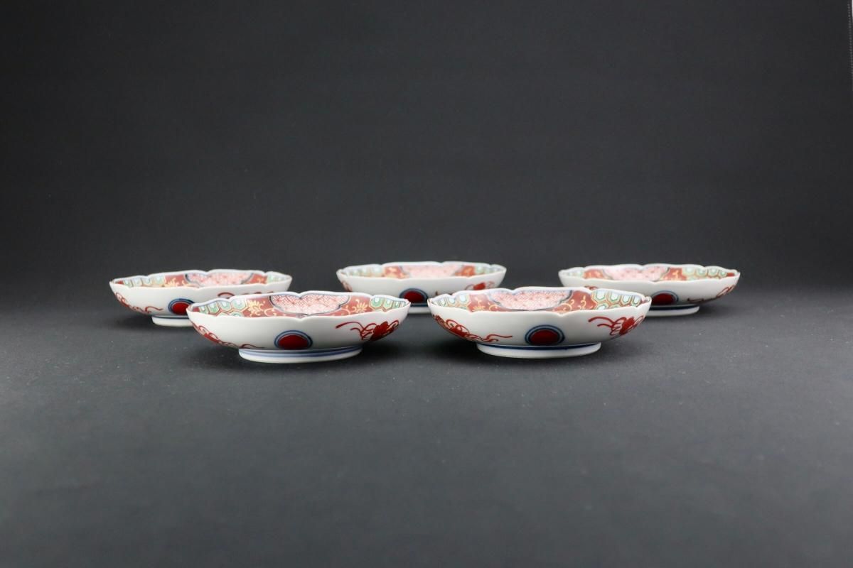 大聖寺伊万里金彩赤絵亀甲文四寸皿 五枚組 / Daishoji Imari Small Polychrome Plates set of 5