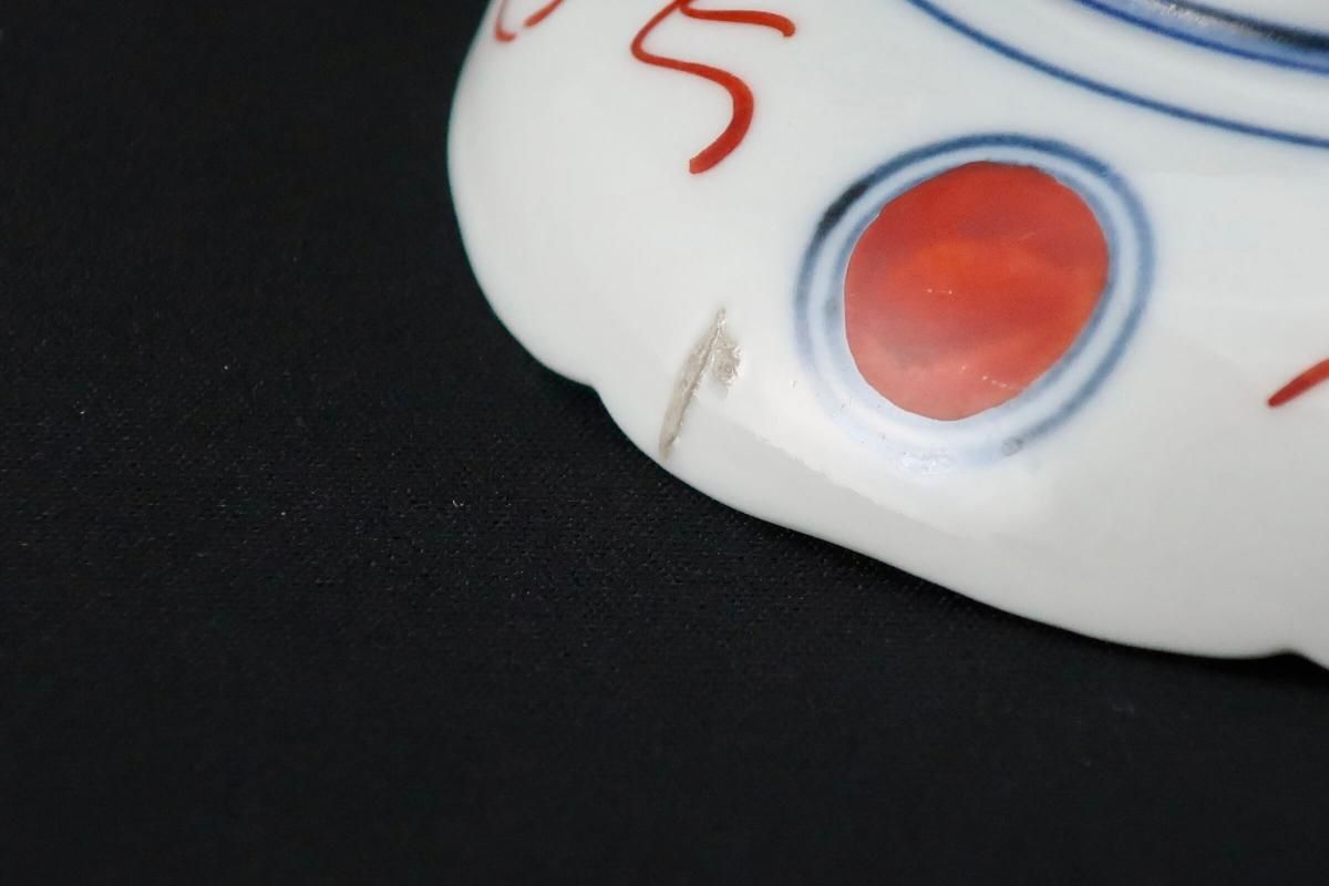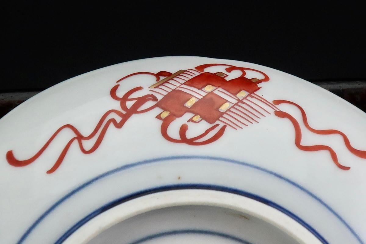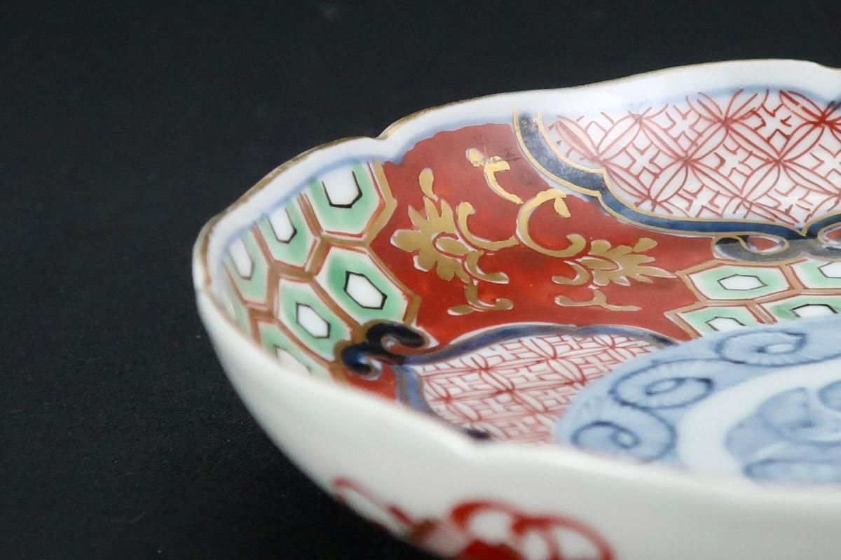 ☆鮮やかな金彩赤絵と亀甲文に七宝文、メリハリのあるデザインがとても魅力的。細い筆で描かれた繊細な絵付は大聖寺伊万里の特徴とも言えます。小さなお皿とは思えない賑やかさ♡裏の赤玉も可愛いですよ♫