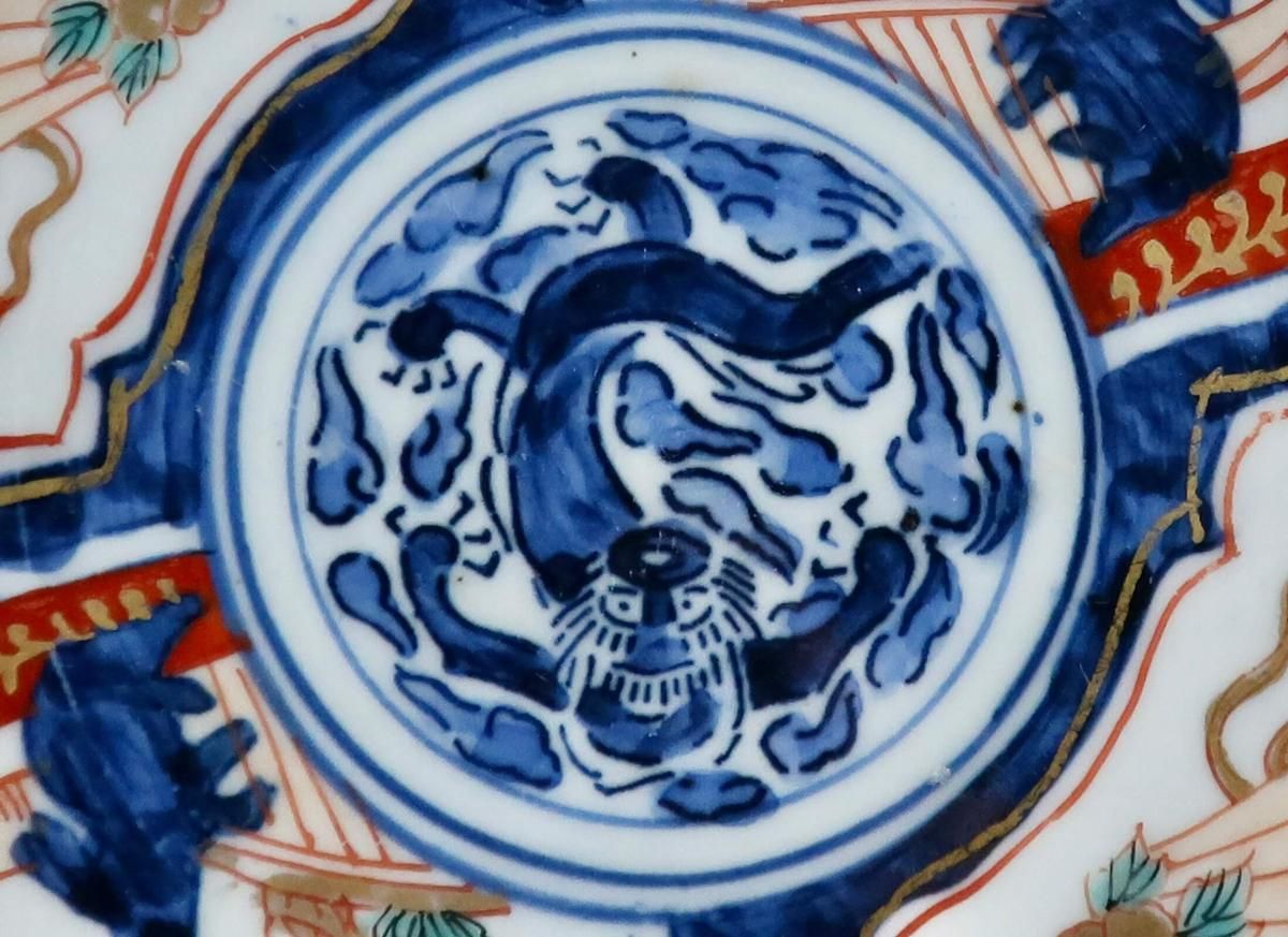 ☆うさぎのシルエットが可愛い色絵皿。通常呉須の絵付けを最初に施して色絵は次の段階に描くのですが、まるでウサギがお花見をしているかのような構図になっているのが微笑ましい。もしかしたらデザインを間違えてしまったのか?それともとにかく兎を描きたかったのか?