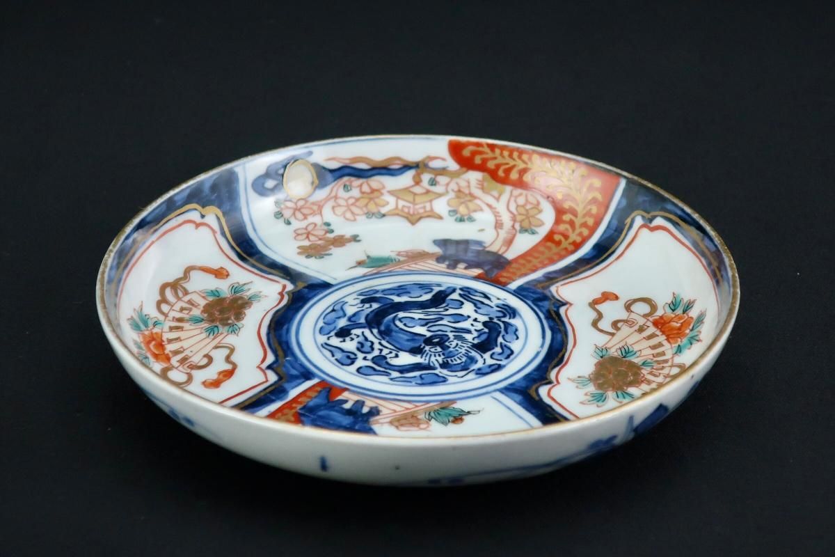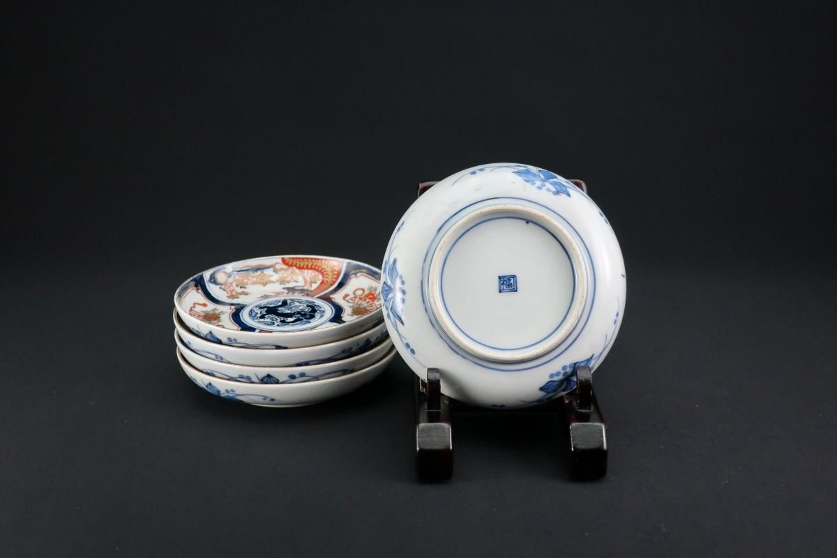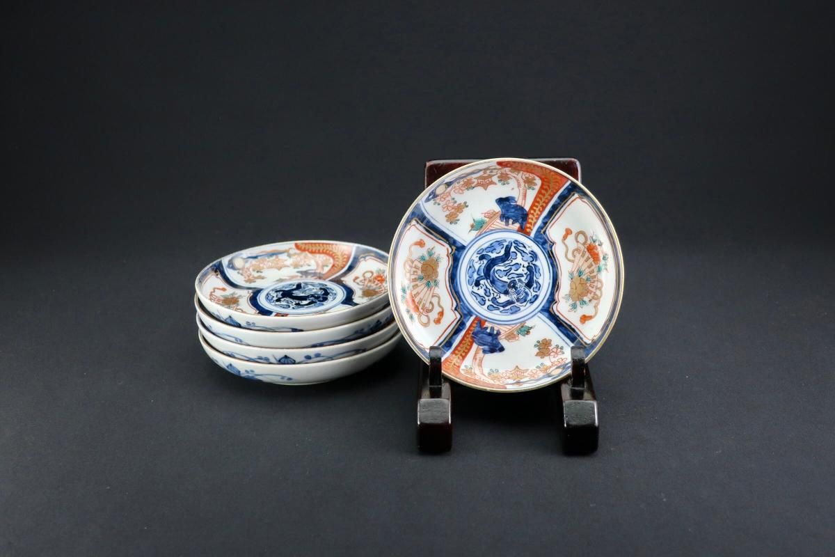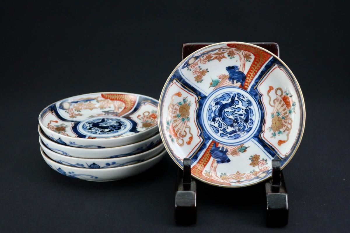 伊万里色絵扇面桜兎文四寸皿 五枚組 / Imari Small Polychrome Plates with the picture of Sakura & Rabbits set of 5