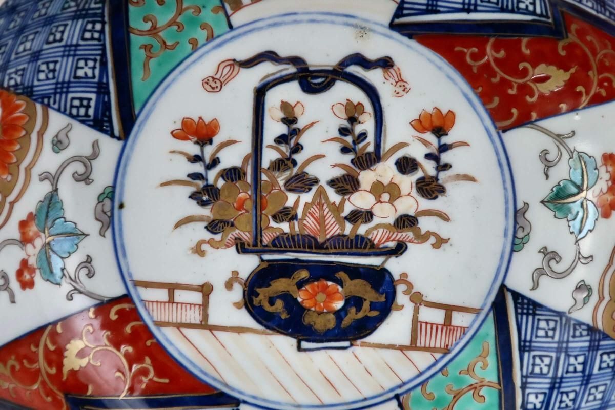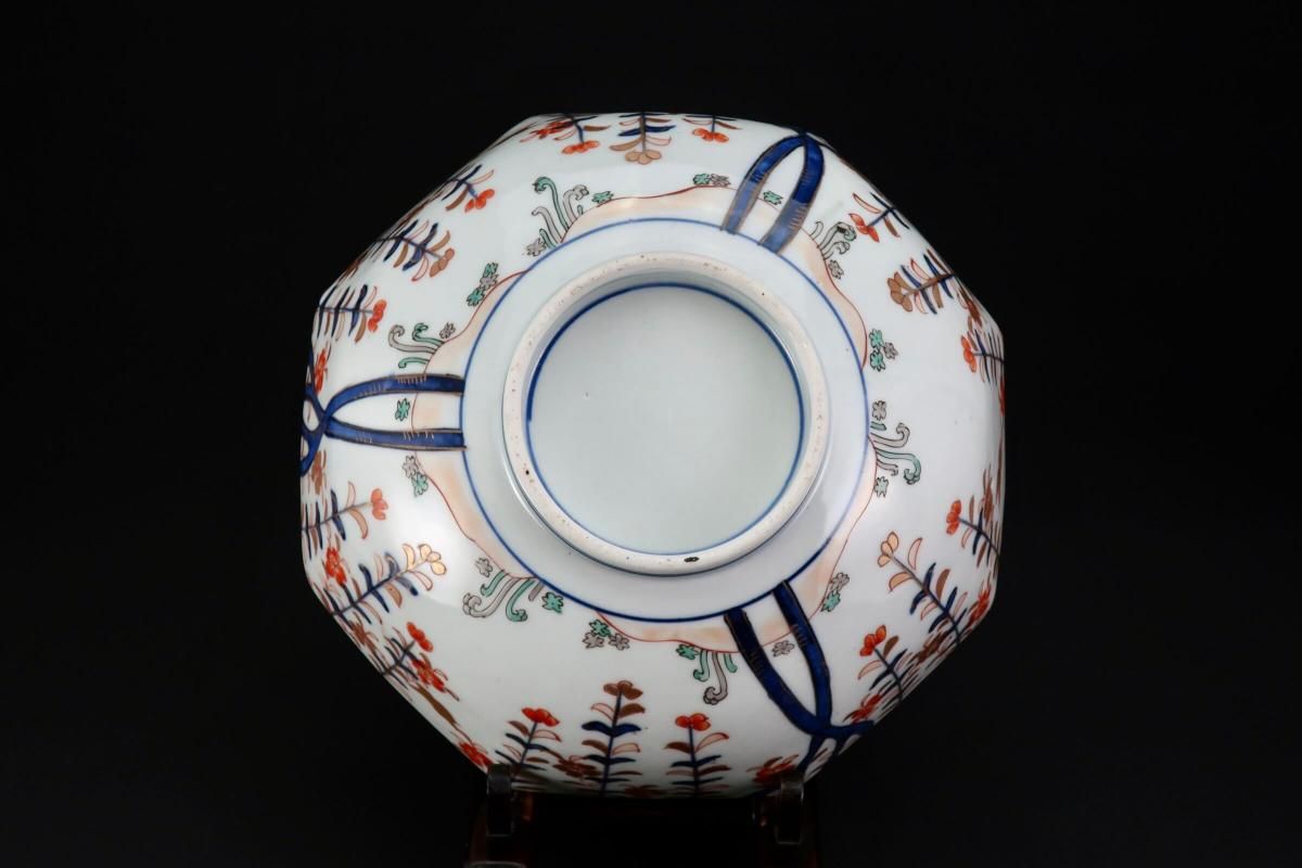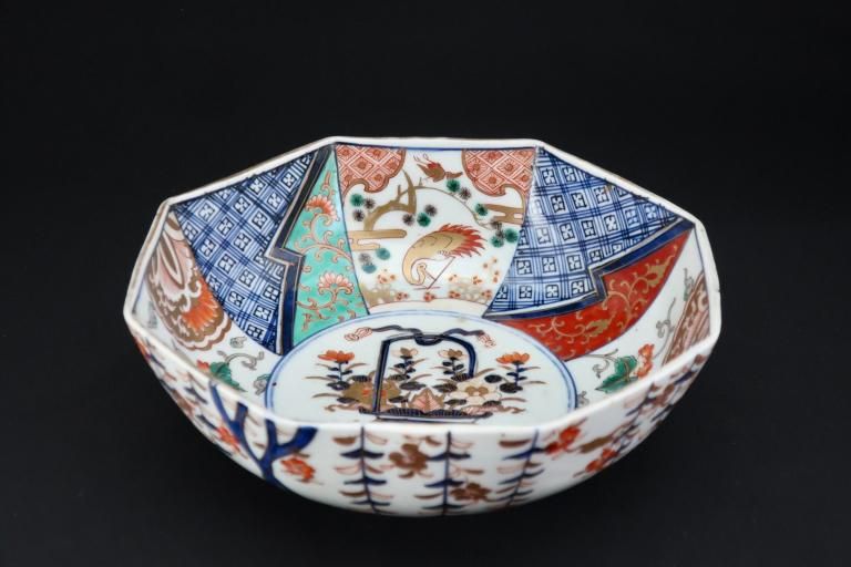 伊万里色絵花籠手八角大鉢(中) / Imari Large Octagonal Polychrome Bowl with the picture of Flower Basket (M)