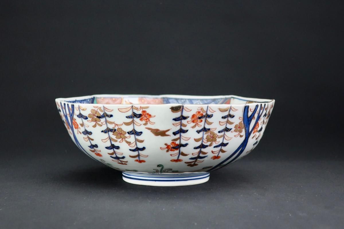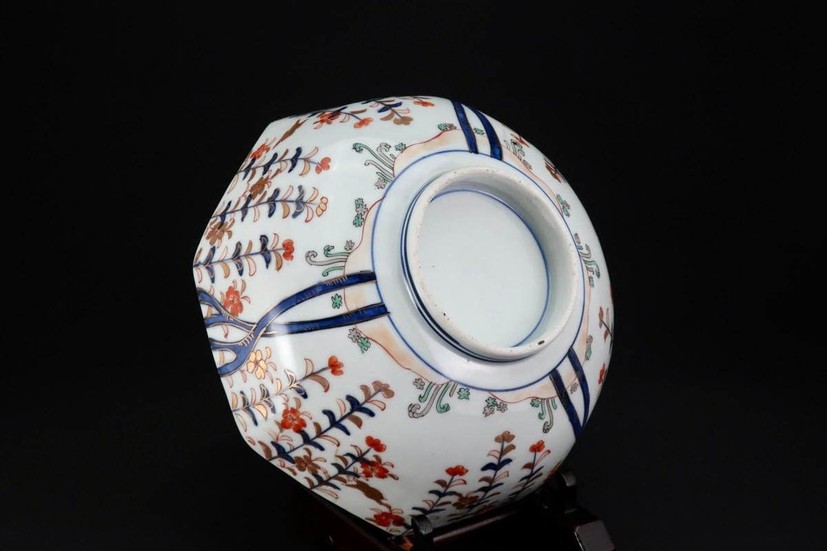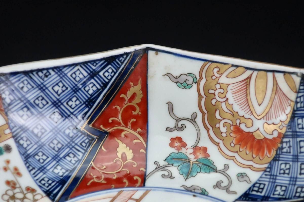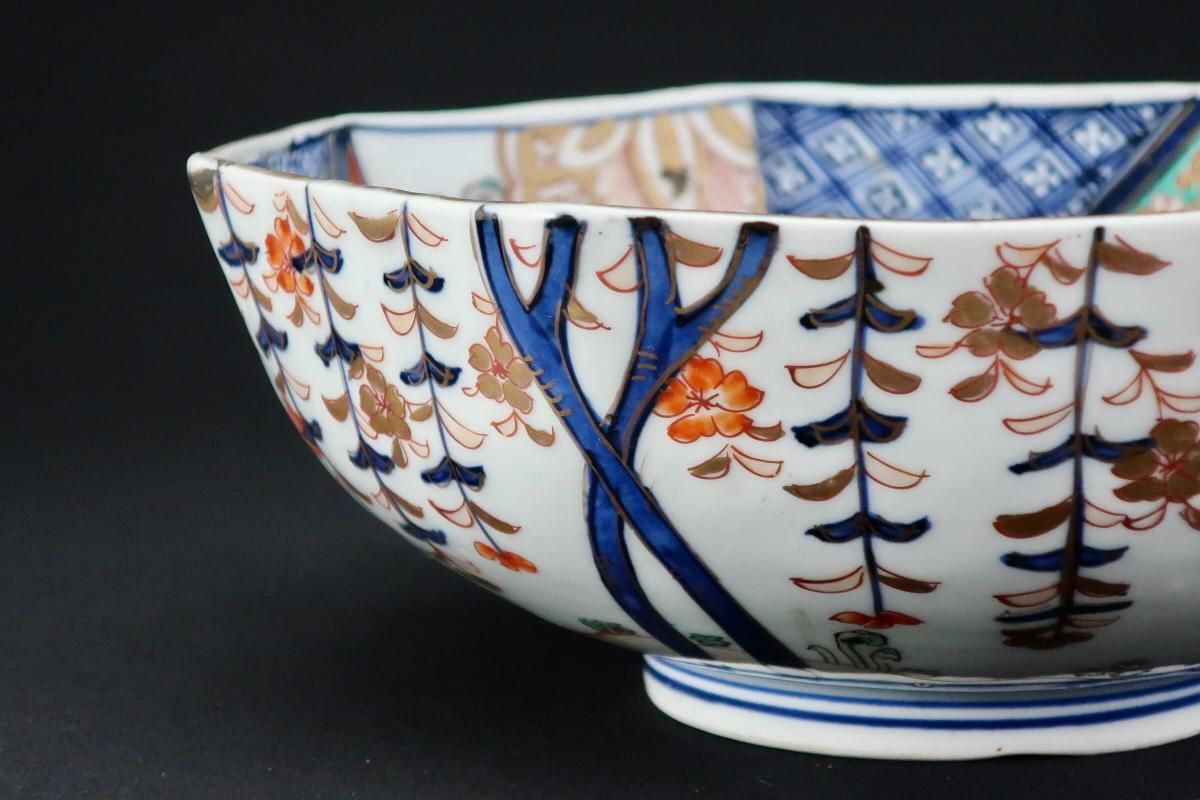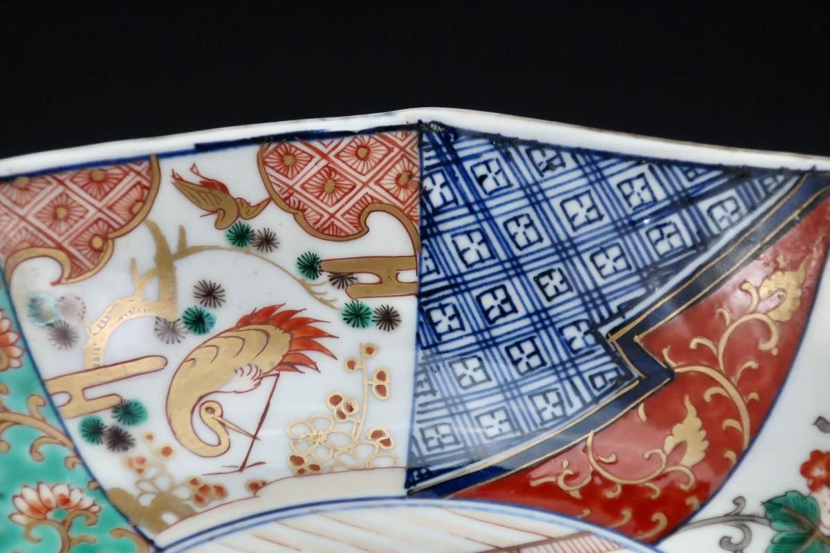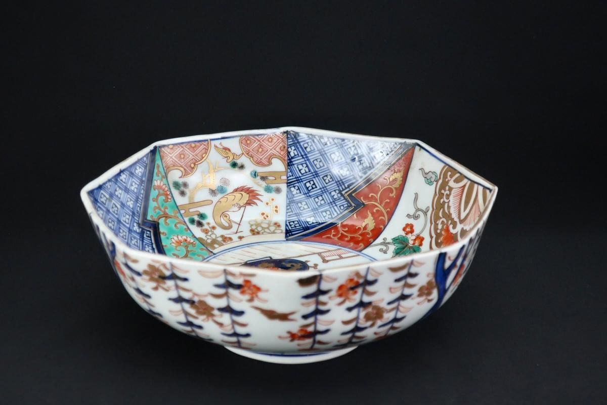こちらはもっと時代は遡ります。元々三つ組で作られたもので、すっきりとした綺麗な構図の絵付と八角形の形がとても良いバランスの大鉢です。