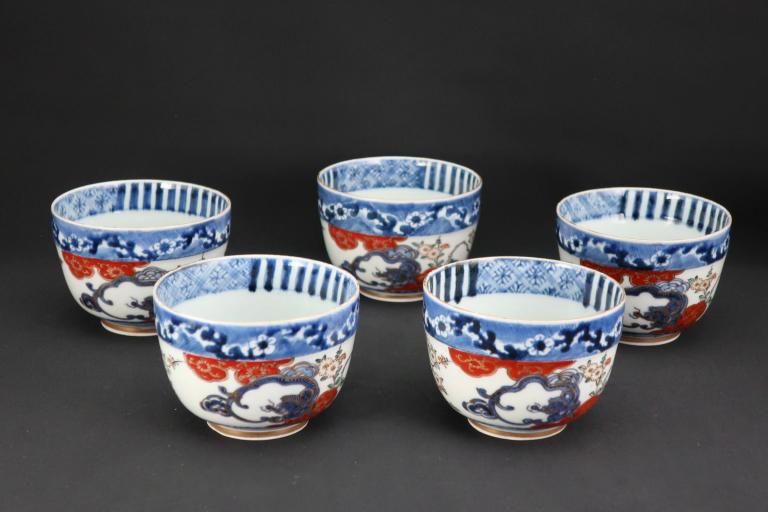 伊万里色絵龍草花文向付 五客組 / Imari Polychrome 'Mukoduke' Cups set of 5