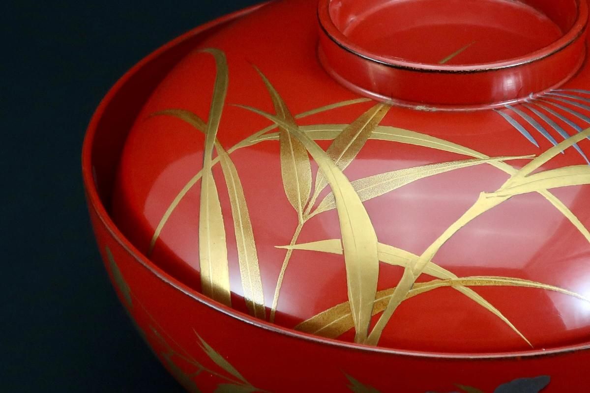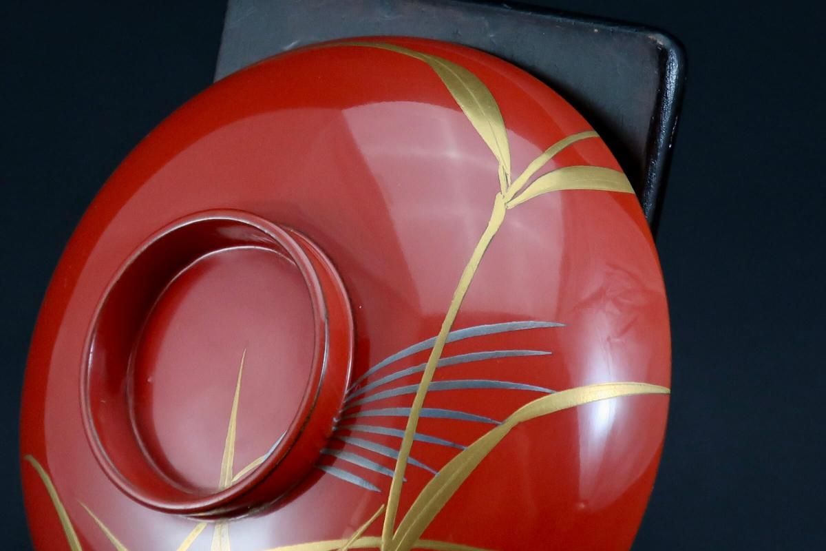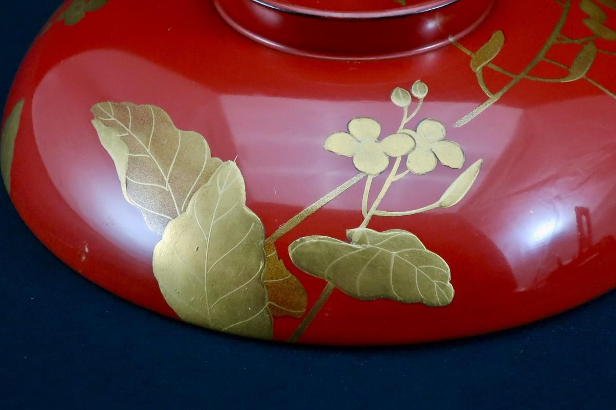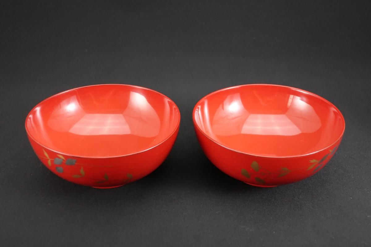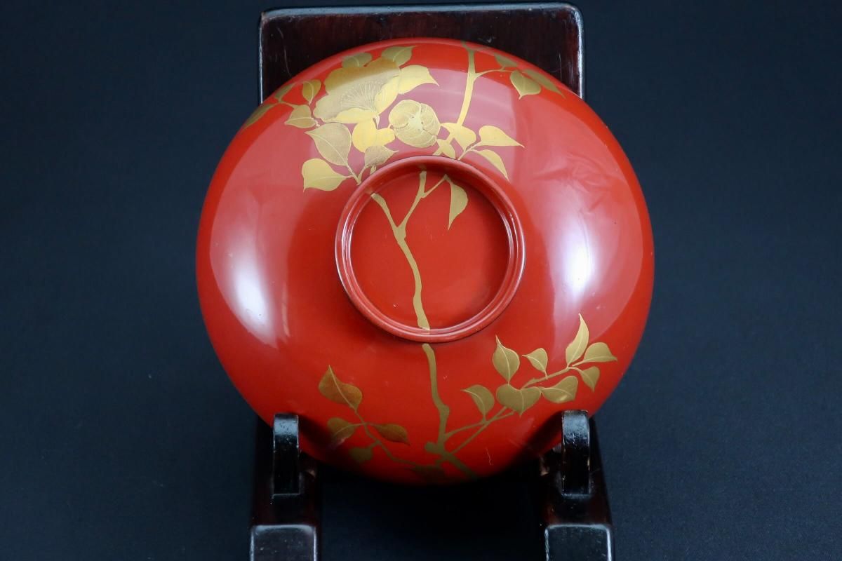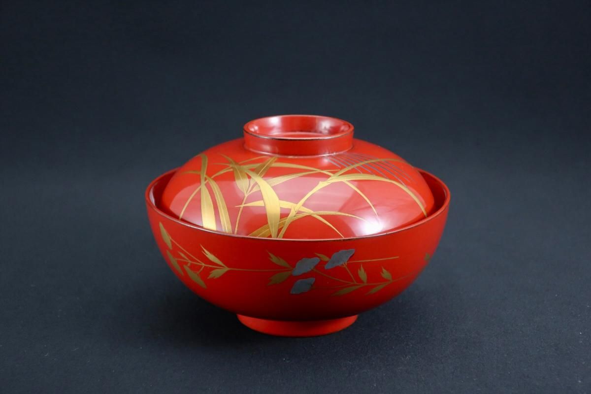 朱塗図変秋草蒔絵吸物椀 五客組 / Red-lacquered Soup Bowls & Lids with Makie picture of Autumn plants set of 5