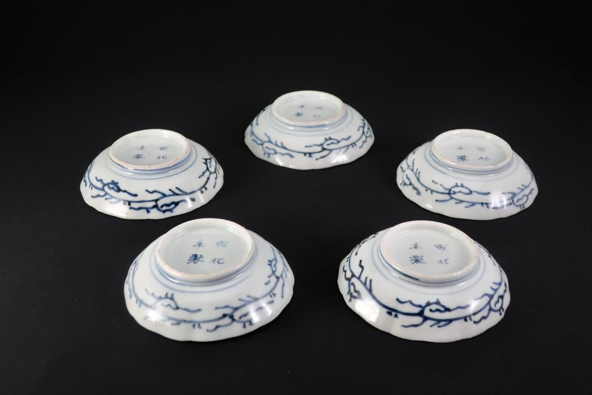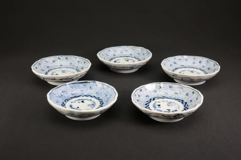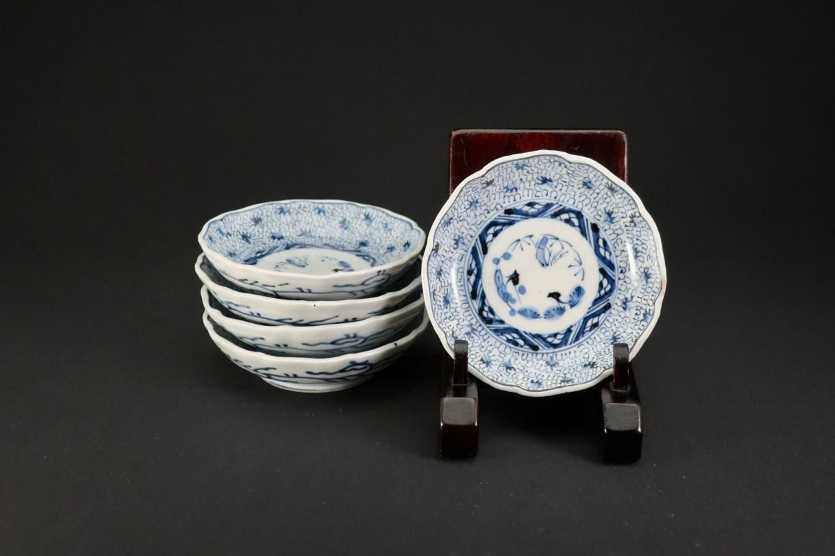 伊万里染付微塵唐草文小皿 五枚組 / Imari Small Blue & White Plates with the pattern of 'Mijinkarakusa' set of 5