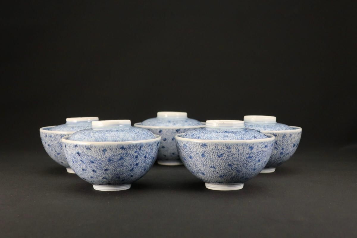 伊万里染付微塵唐草文蓋茶碗 五客組 / Imari Blue & White Bowls with Lids set of 5