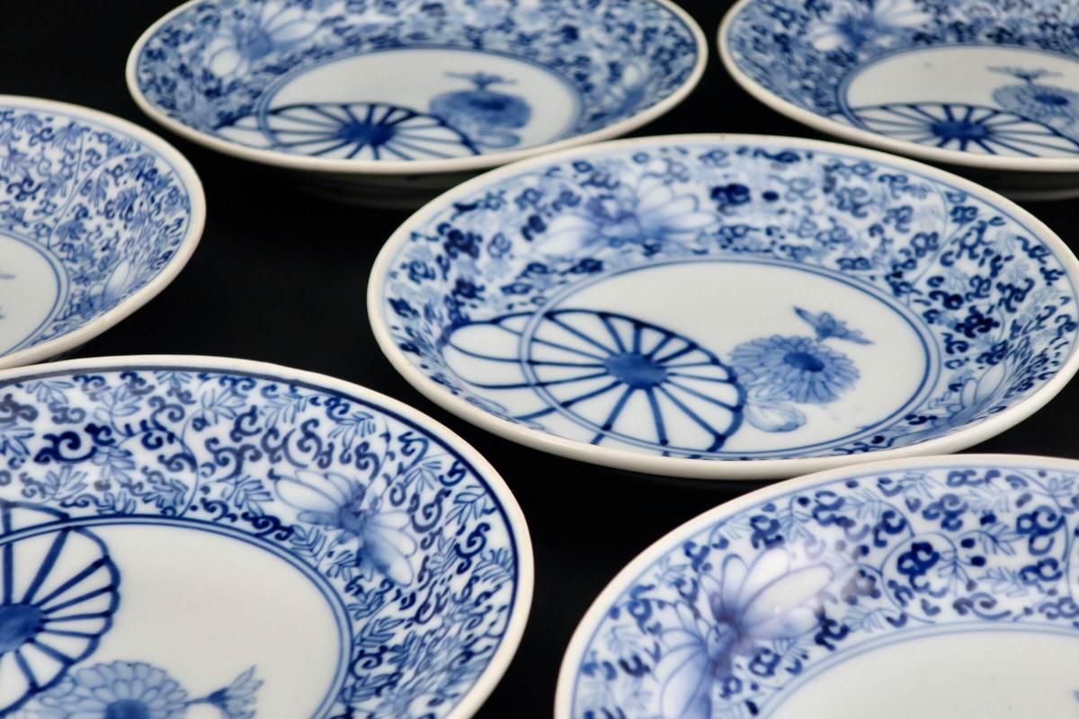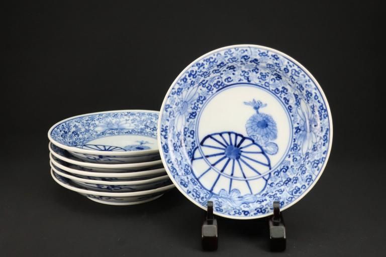 伊万里染付菊花唐草文六寸皿 六枚組 / Imari Blue & White Plates with the picture of Chrysanthemum Flowers set of 6