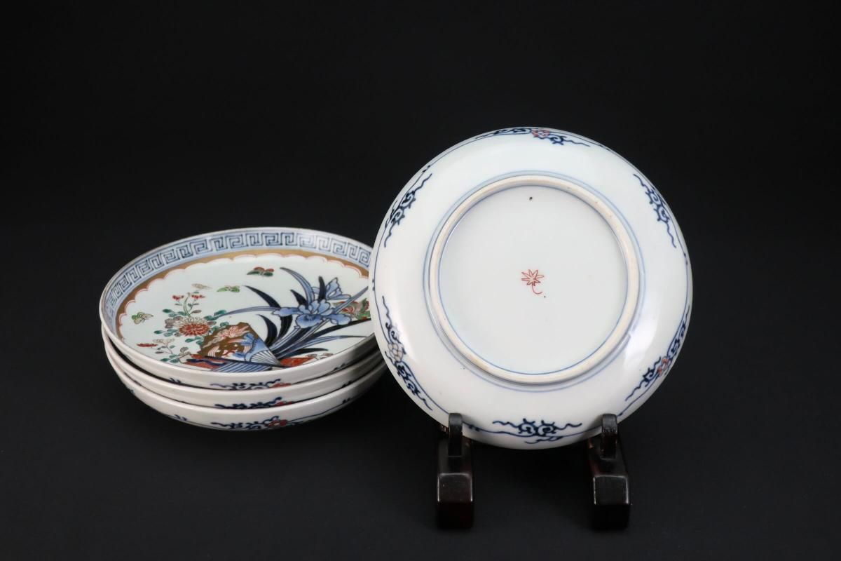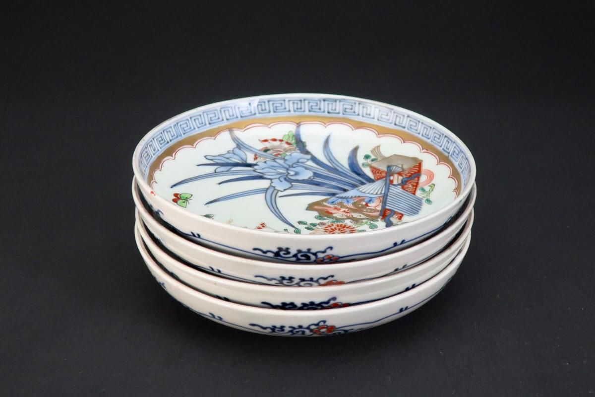 伊万里色絵花蝶文五寸皿 四枚組 / Imari Polychrome Plates with the picture of Flowers and Butterflies set of 4