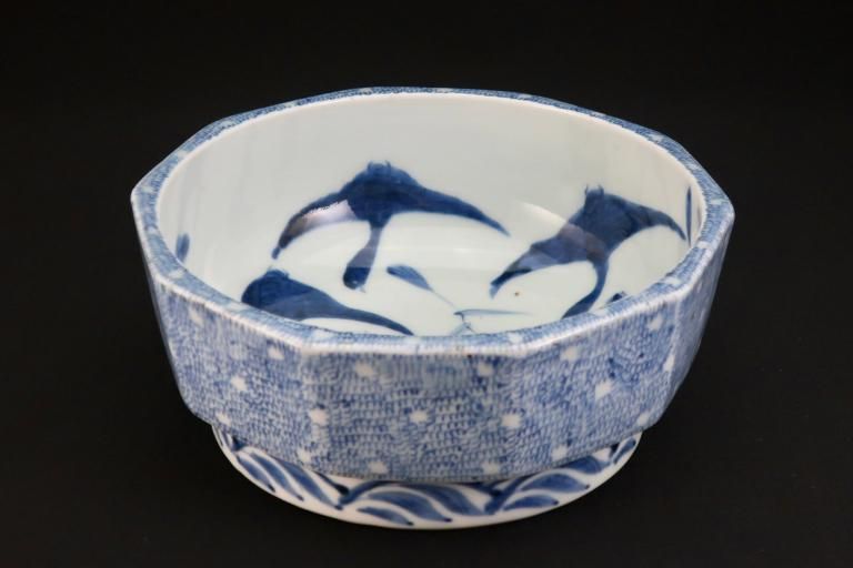 伊万里染付微塵唐草文十角中鉢 / Imari Decagonal Blue & White Bowl