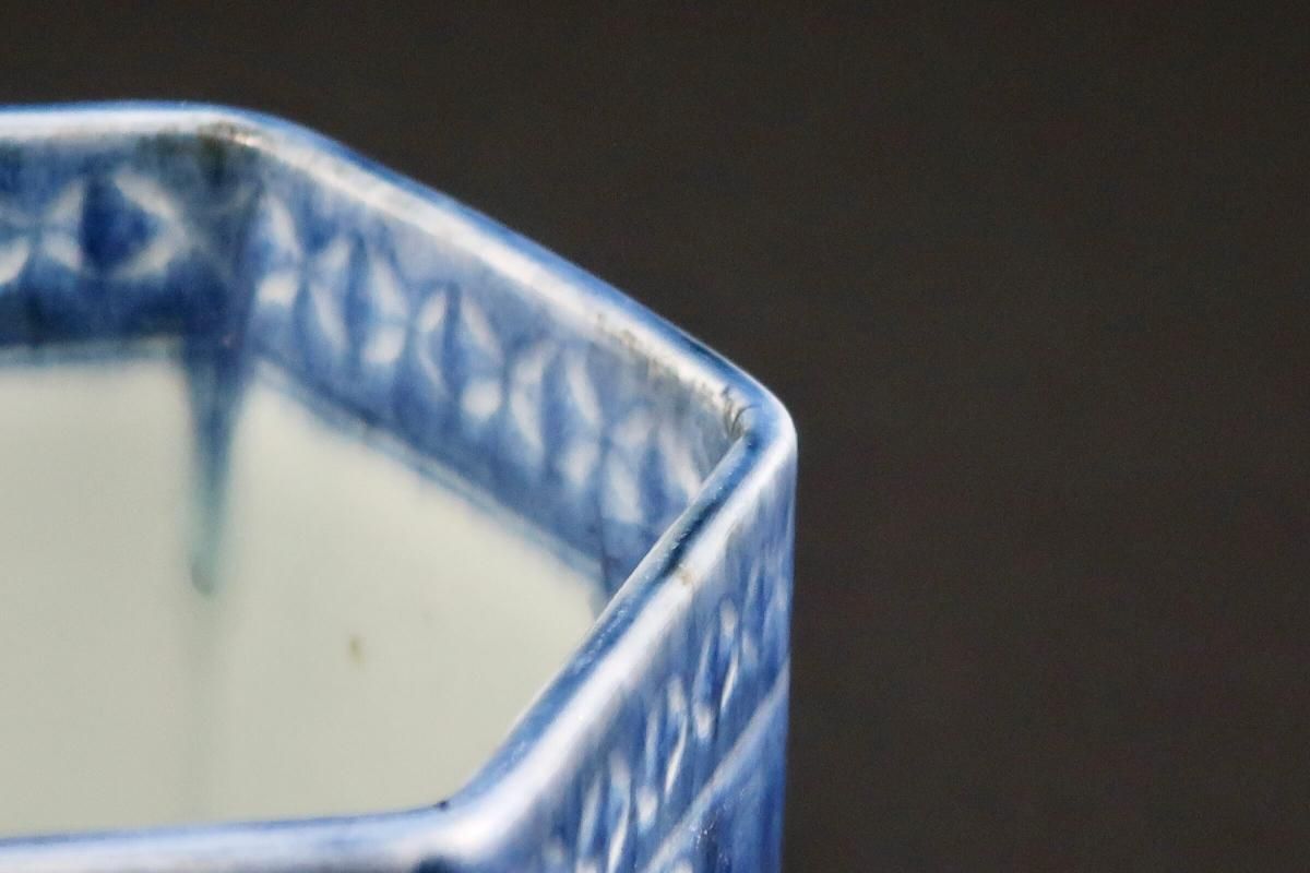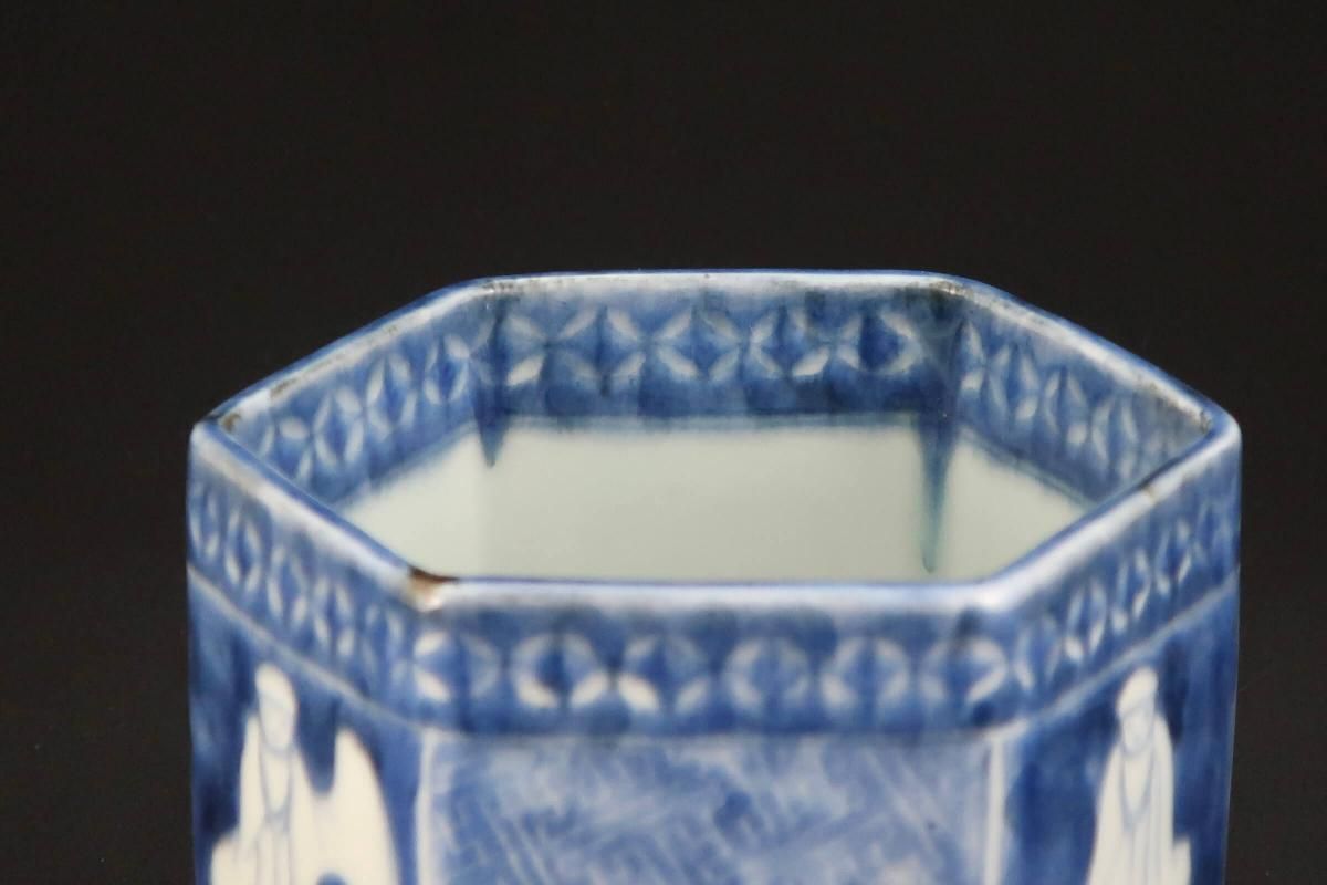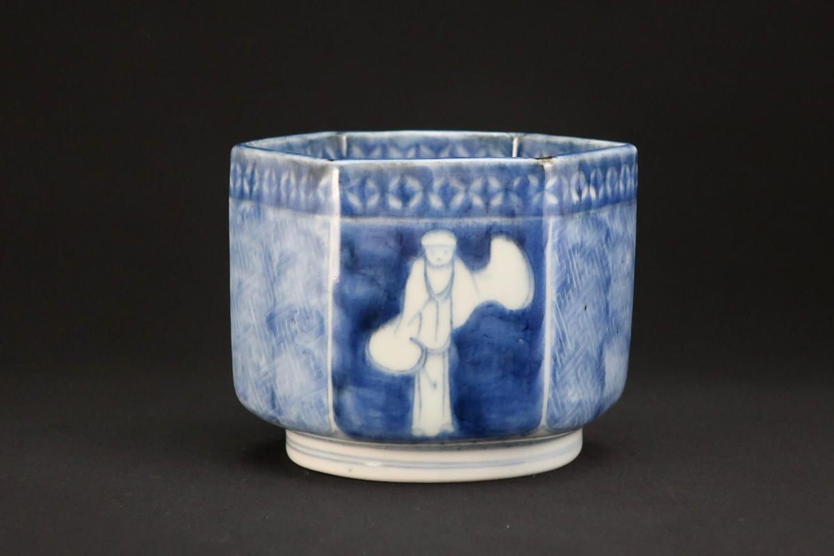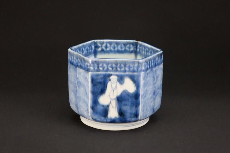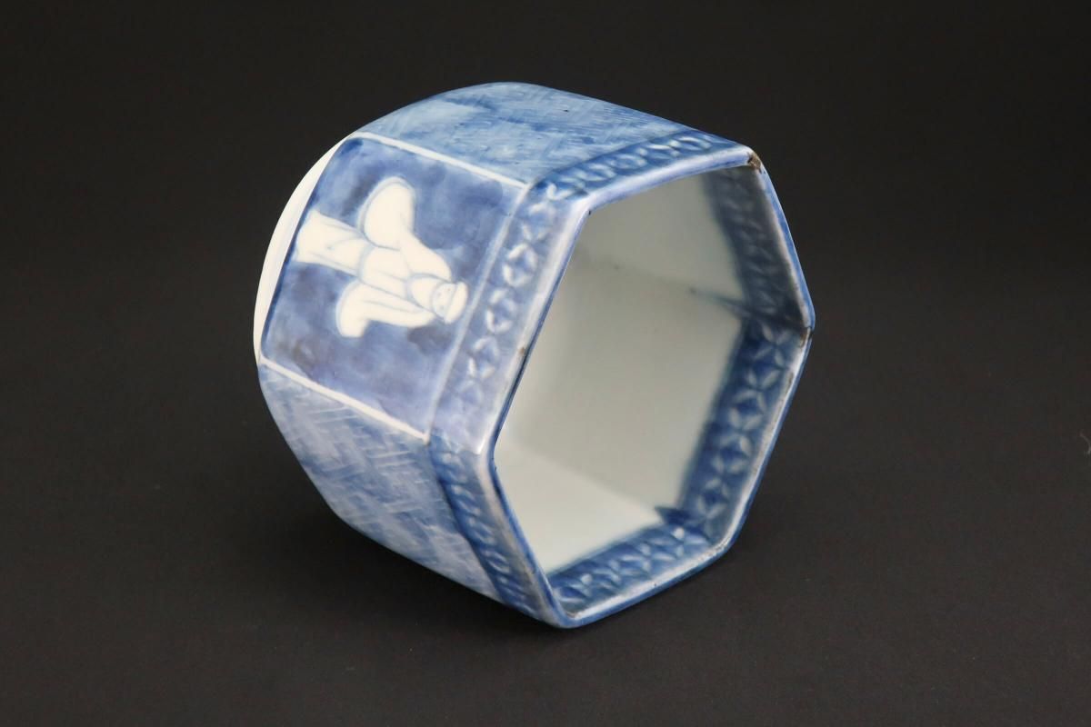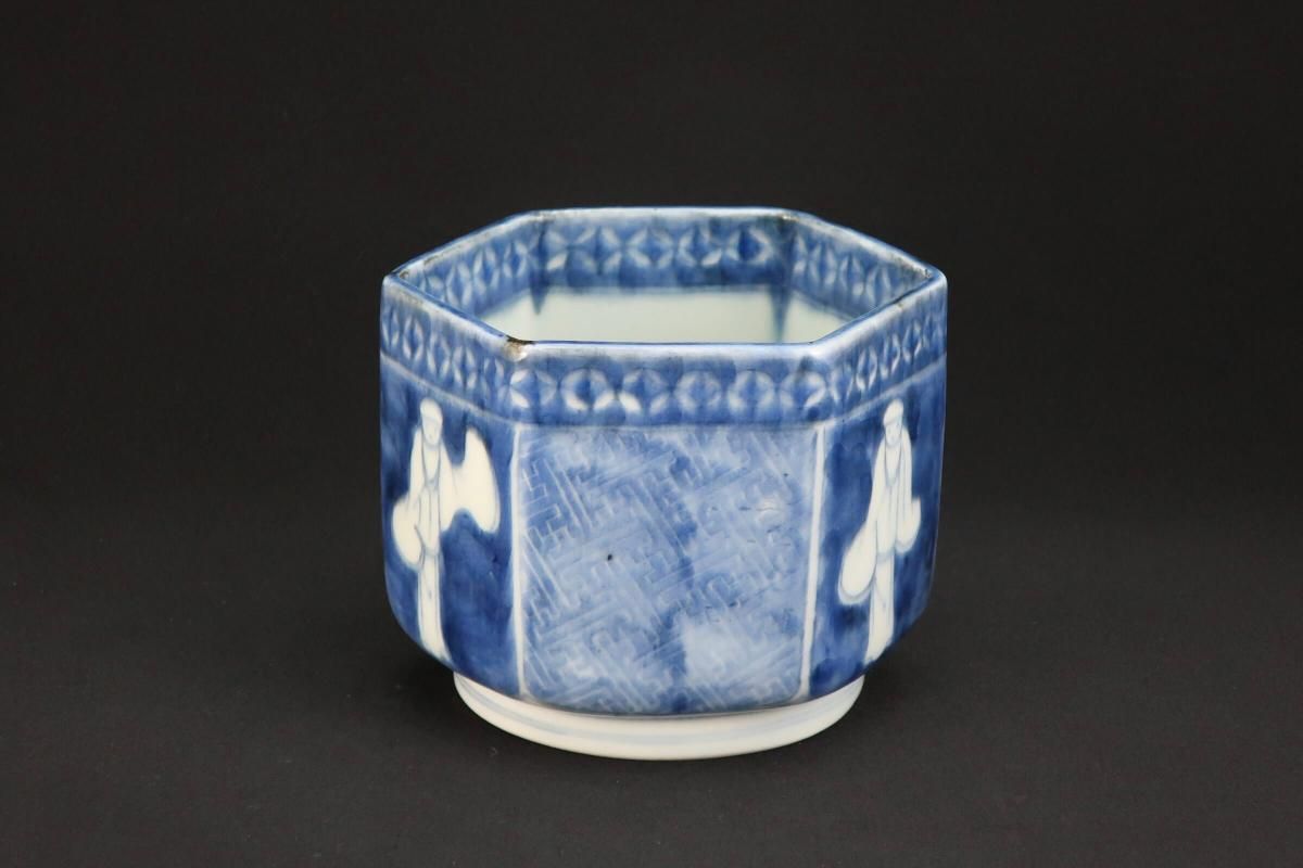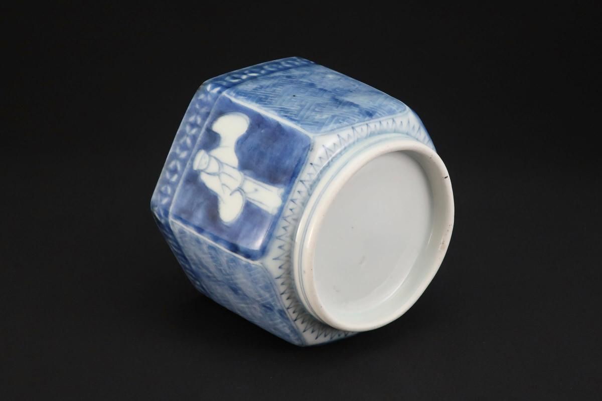伊万里染付韃靼人の図六角火入 / Imari Hexagonal Blue & White 'Hiire' Pot with the picture of Tartar