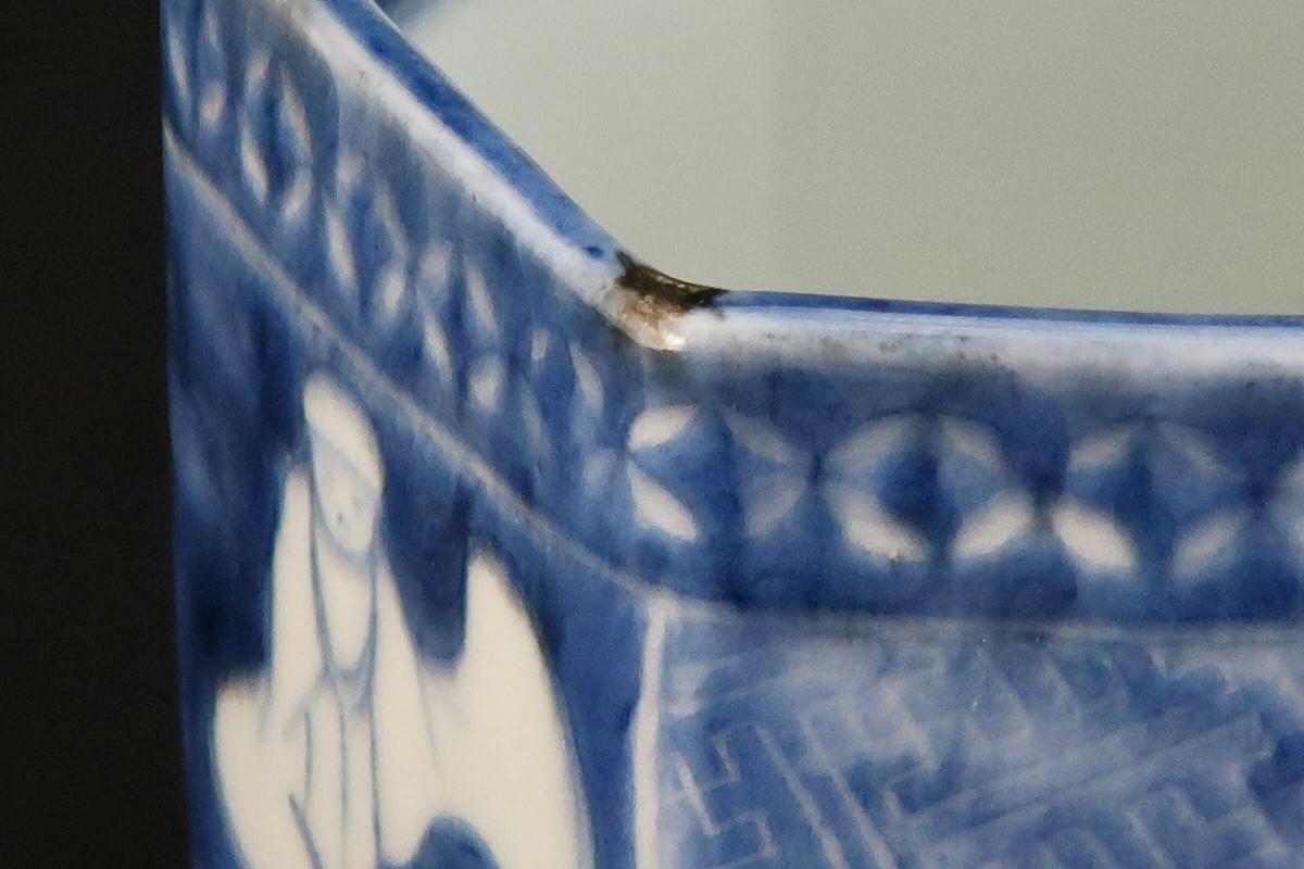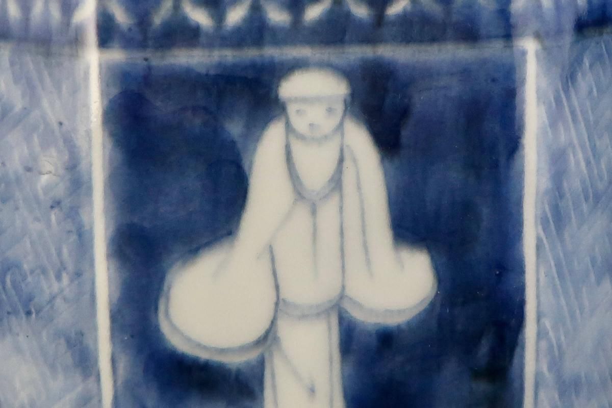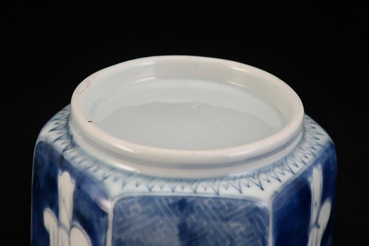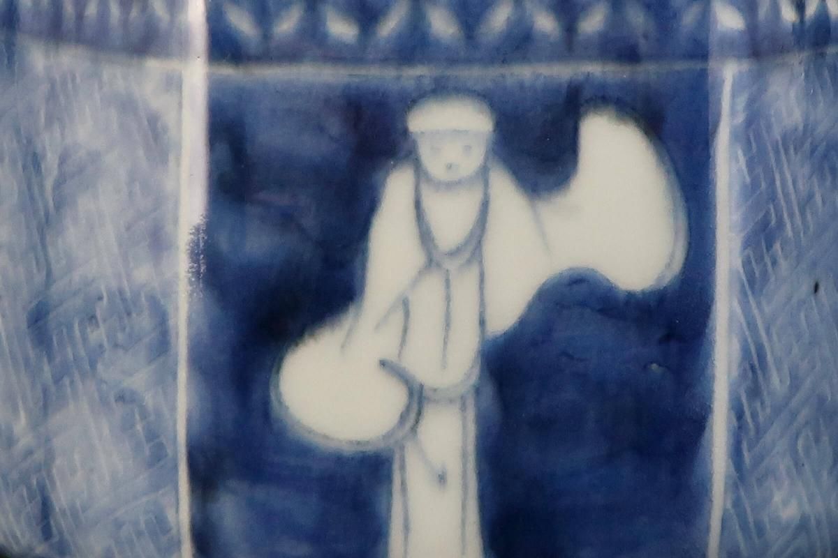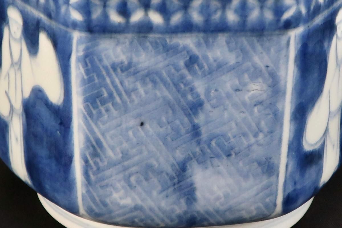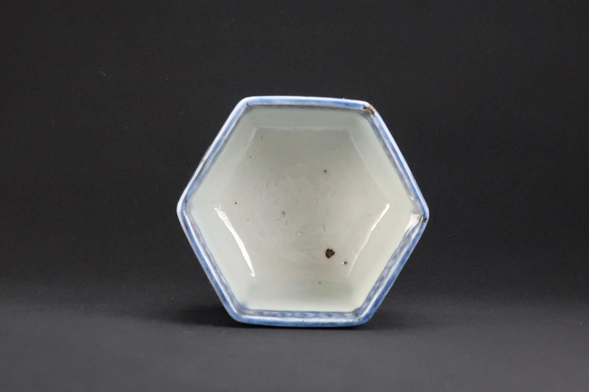 伊万里染付韃靼人の図六角火入 / Imari Hexagonal Blue & White 'Hiire' Pot with the picture of Tartar