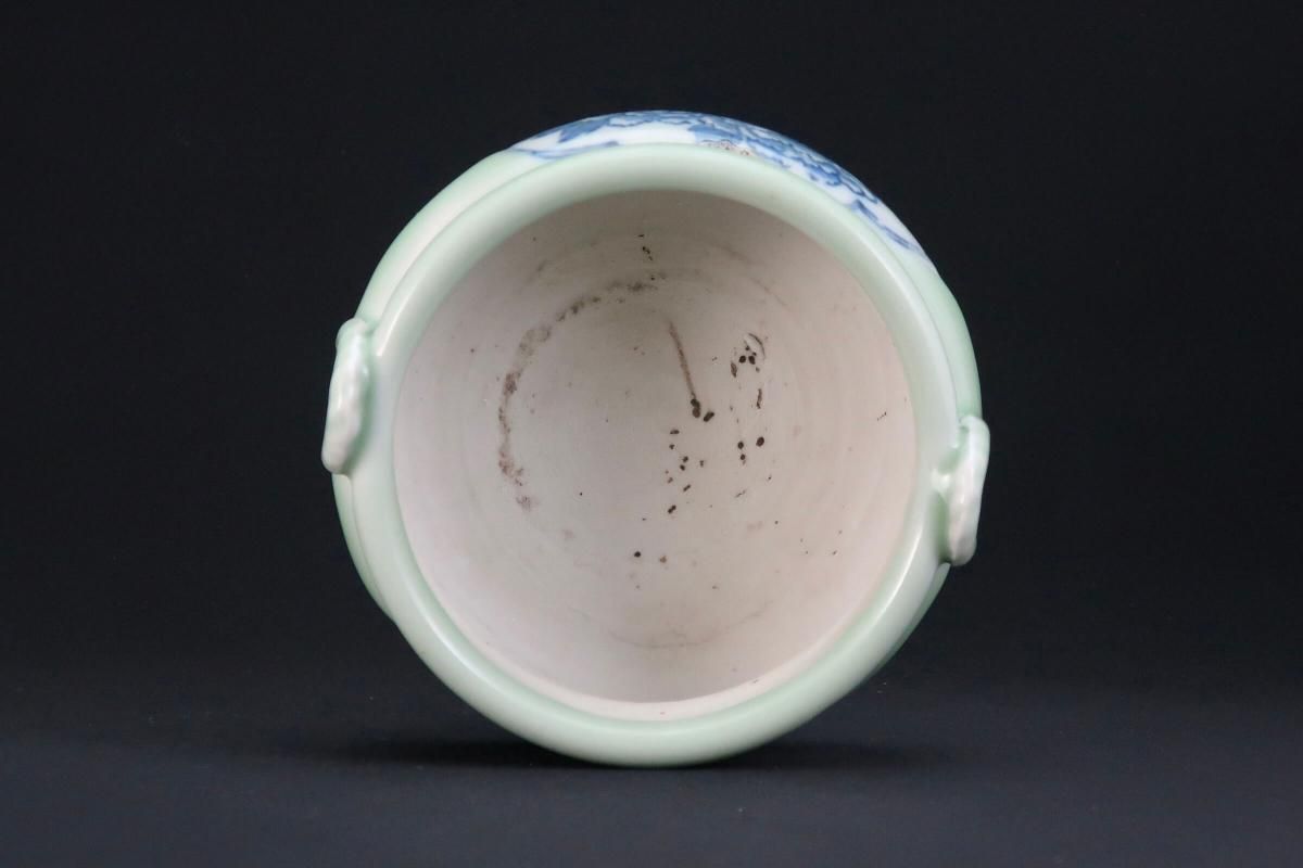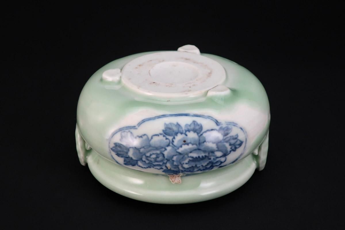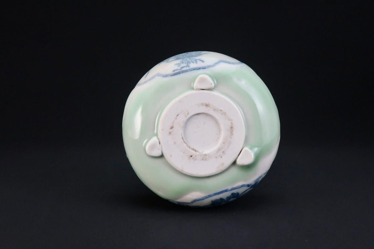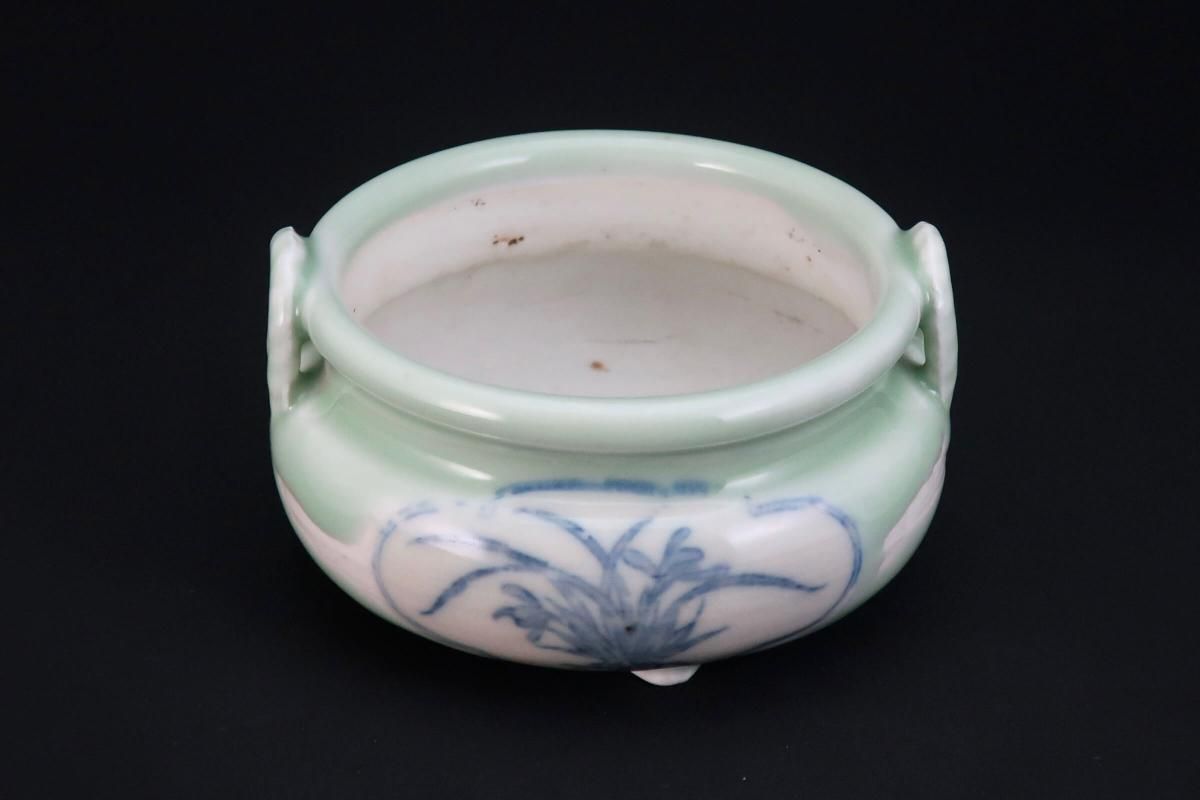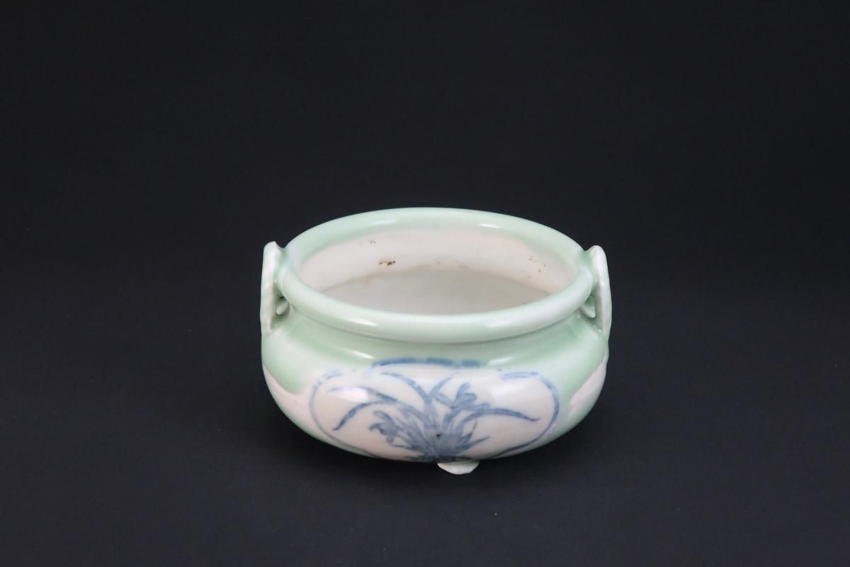 青磁染付牡丹紫蘭文火入 / Celadon Blue & White 'Hiire' Pot with the picture of Peony and Orchid Flowers