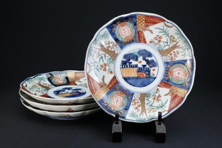 伊万里色絵花鳥文七寸皿 四枚組 / Imari Polychrome Plates with the picture of Birds and Plants set of 4