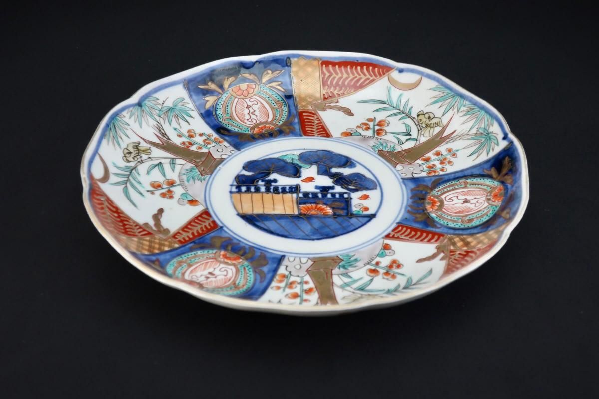 ☆見込みには松、竹と梅は縁側に描かれた七寸皿。小鳥がその周囲で遊ぶ姿がなんとも平和な光景です。明治伊万里らしい鮮やかな色合いでテーブルを明るい印象にしてくれそうです。