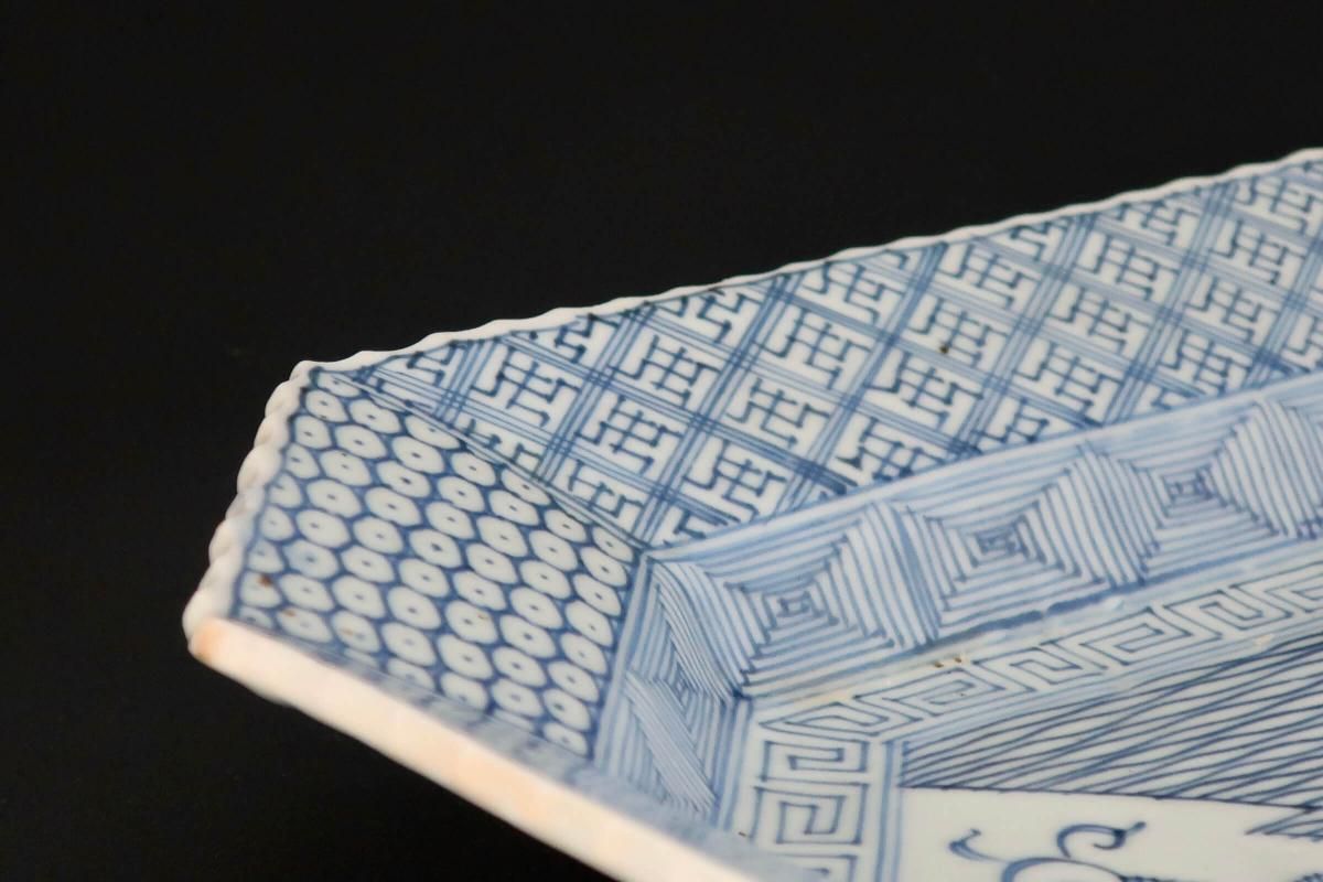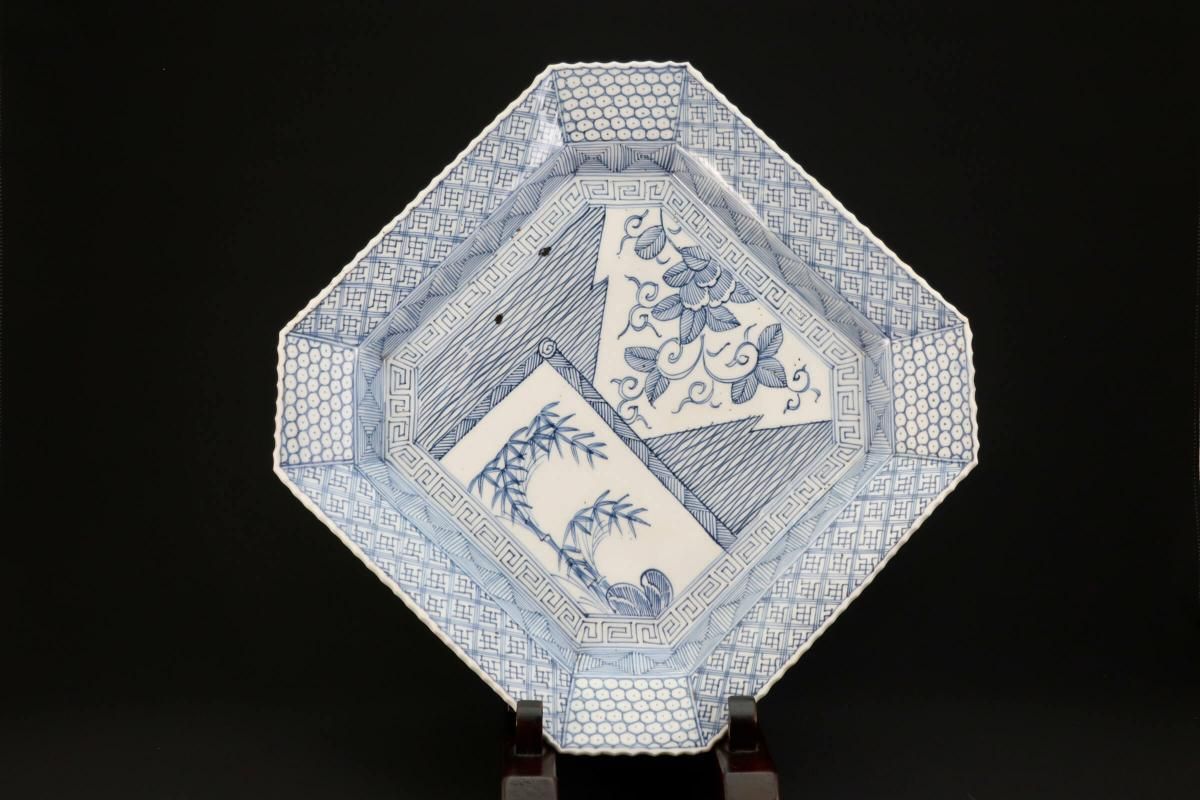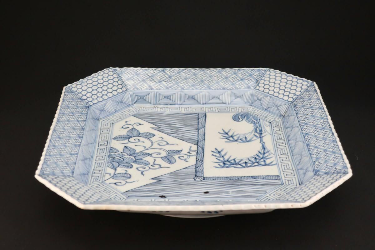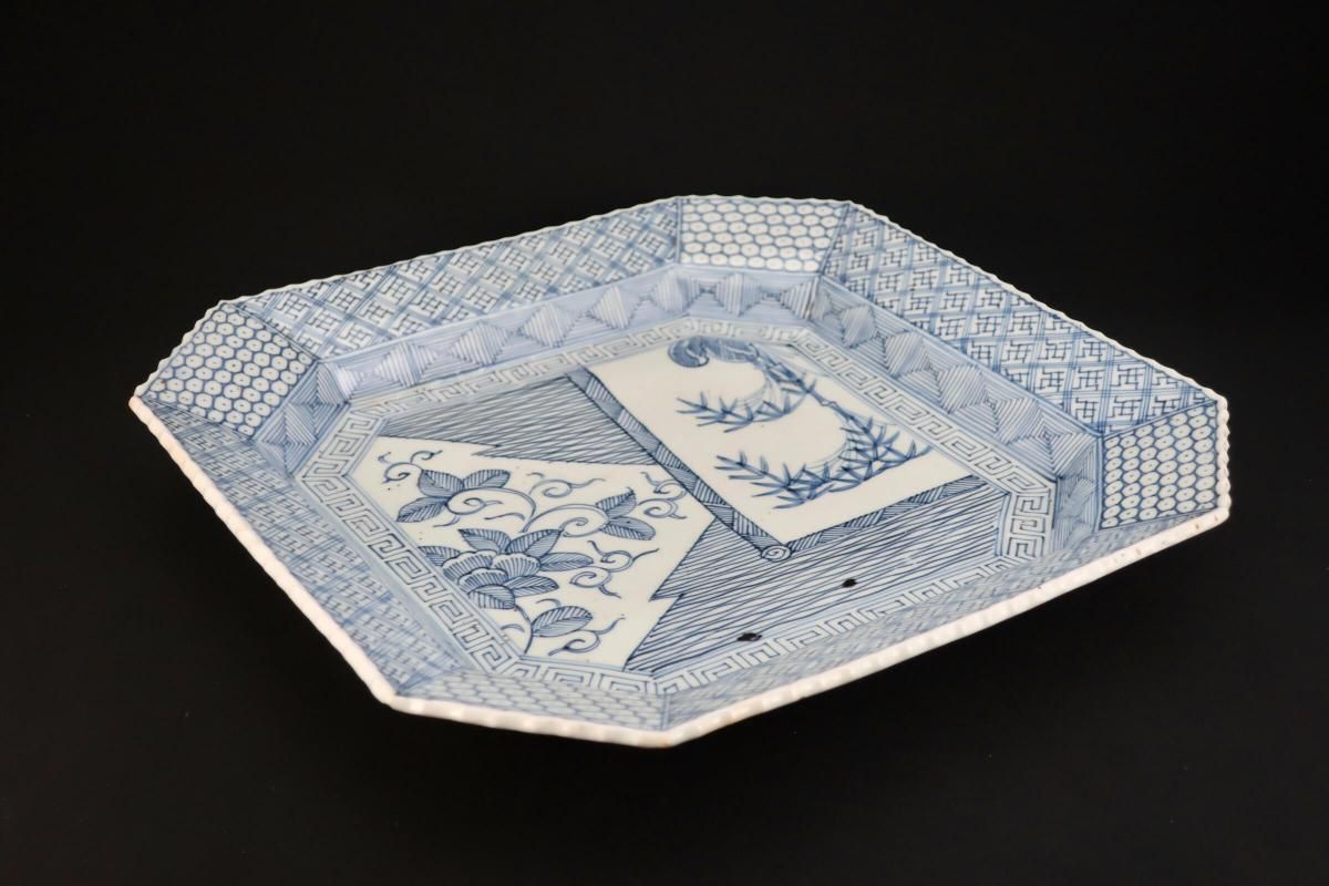 伊万里線描染付草花幾何学文隅切角大皿 / Imari Large Square Blue & White Plate