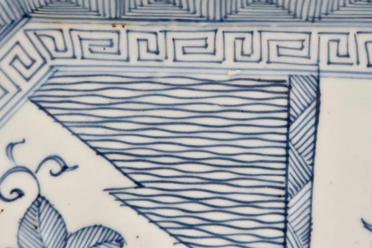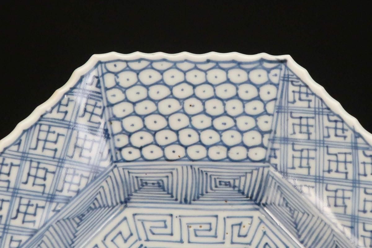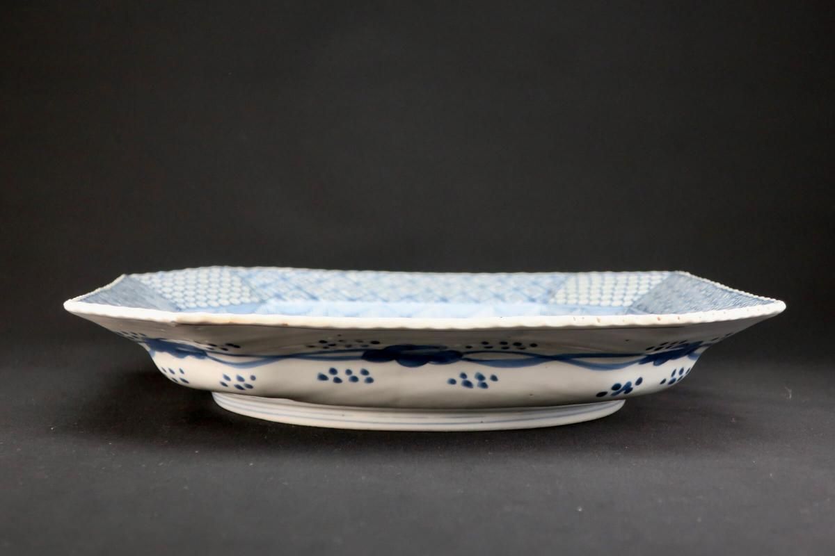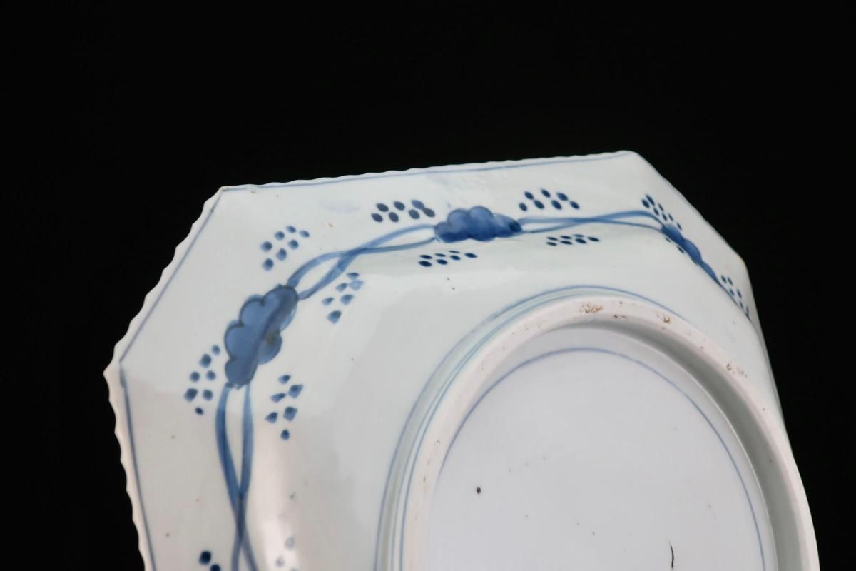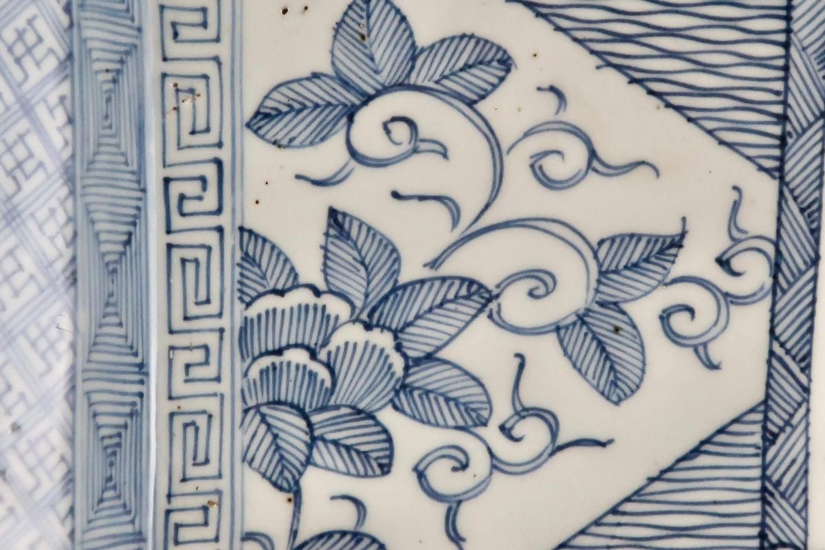 伊万里線描染付草花幾何学文隅切角大皿 / Imari Large Square Blue & White Plate