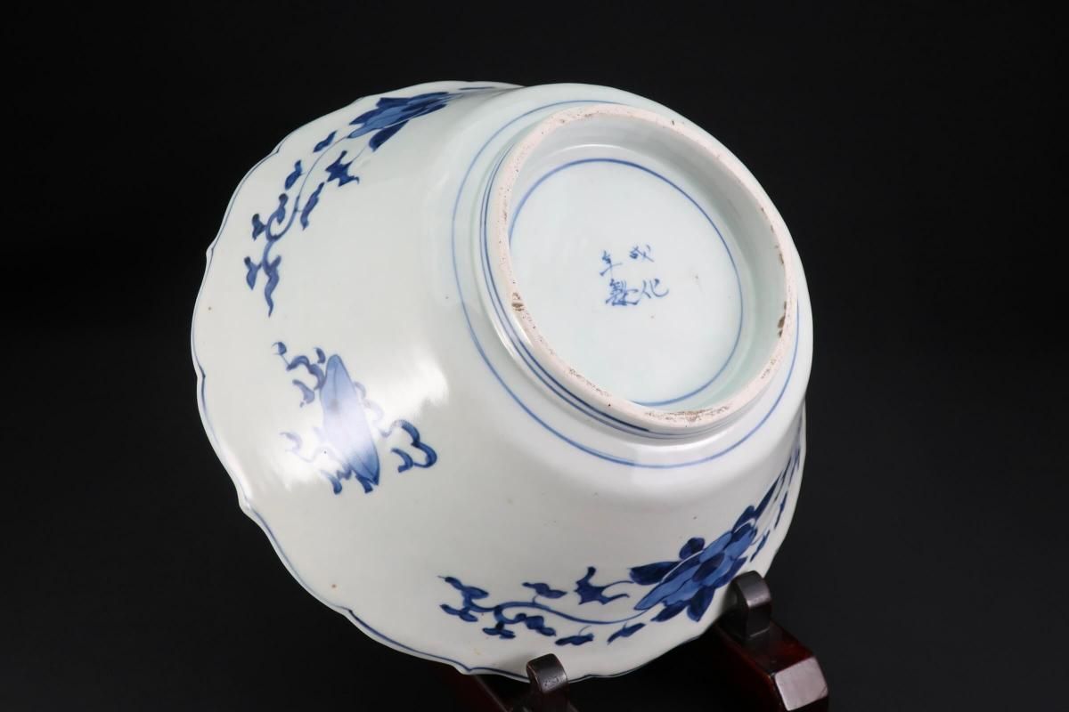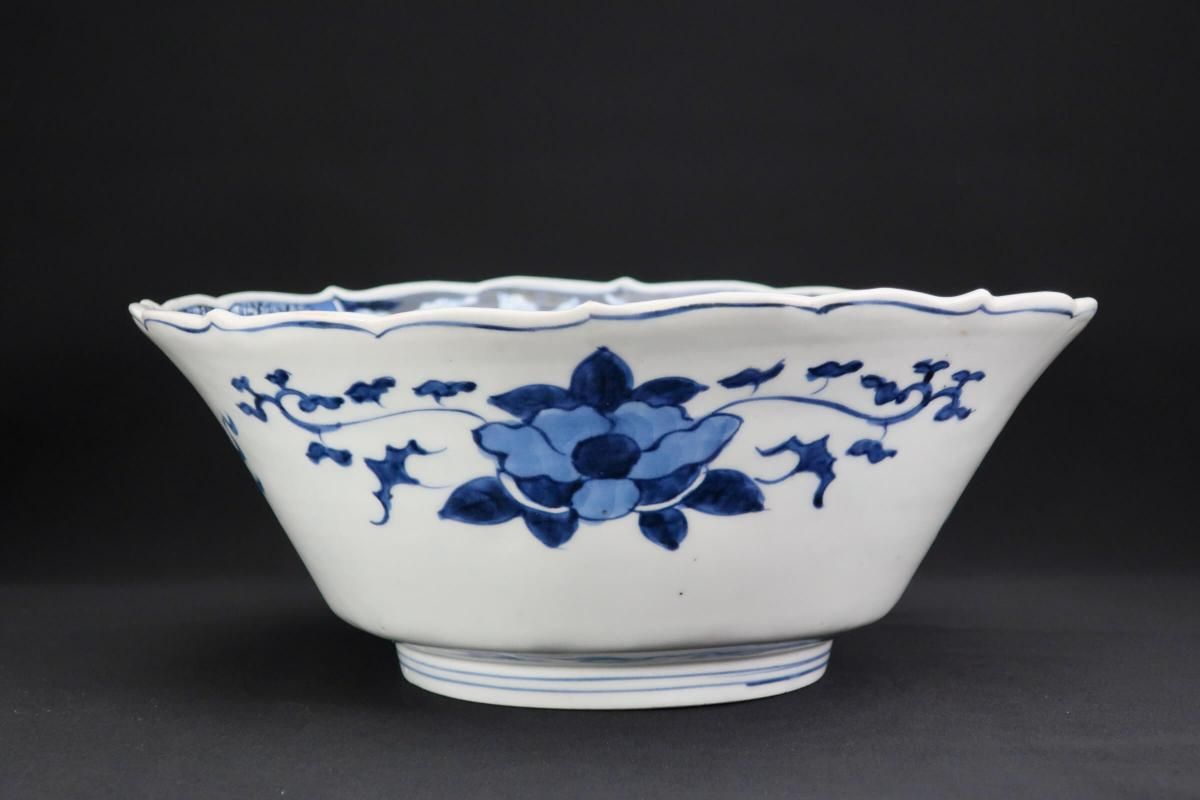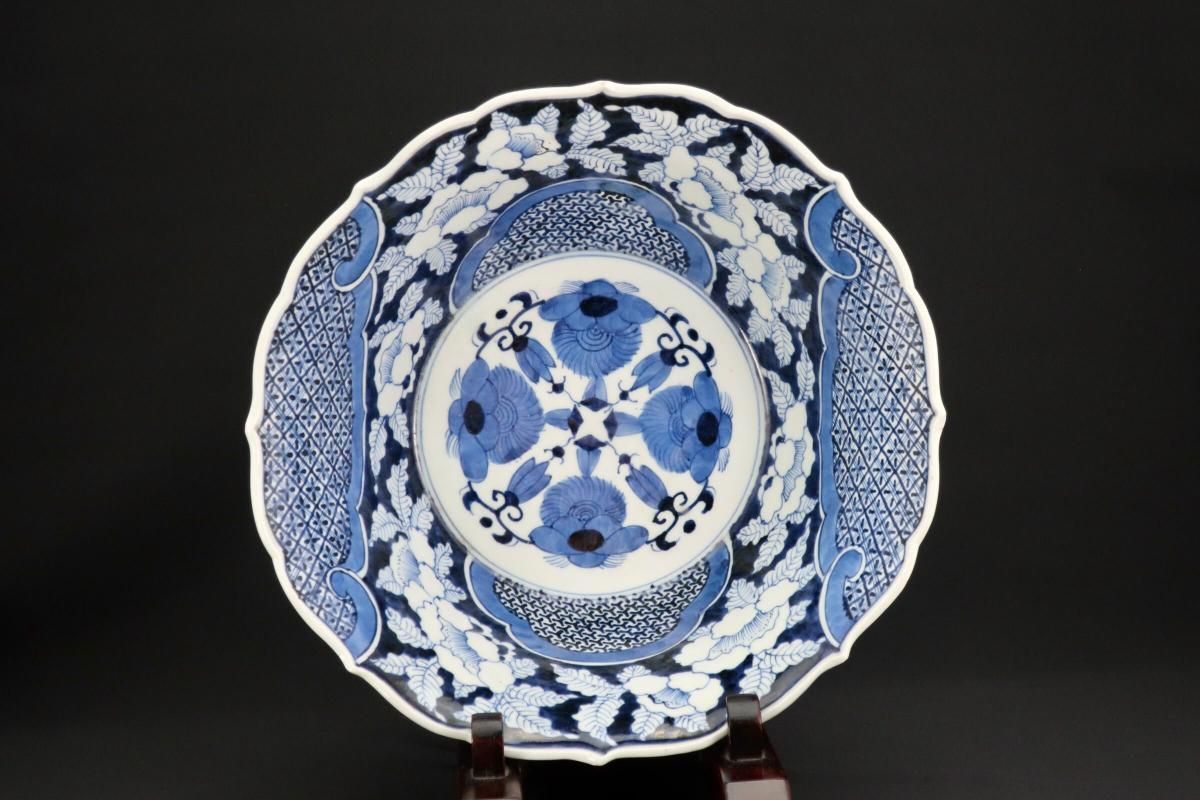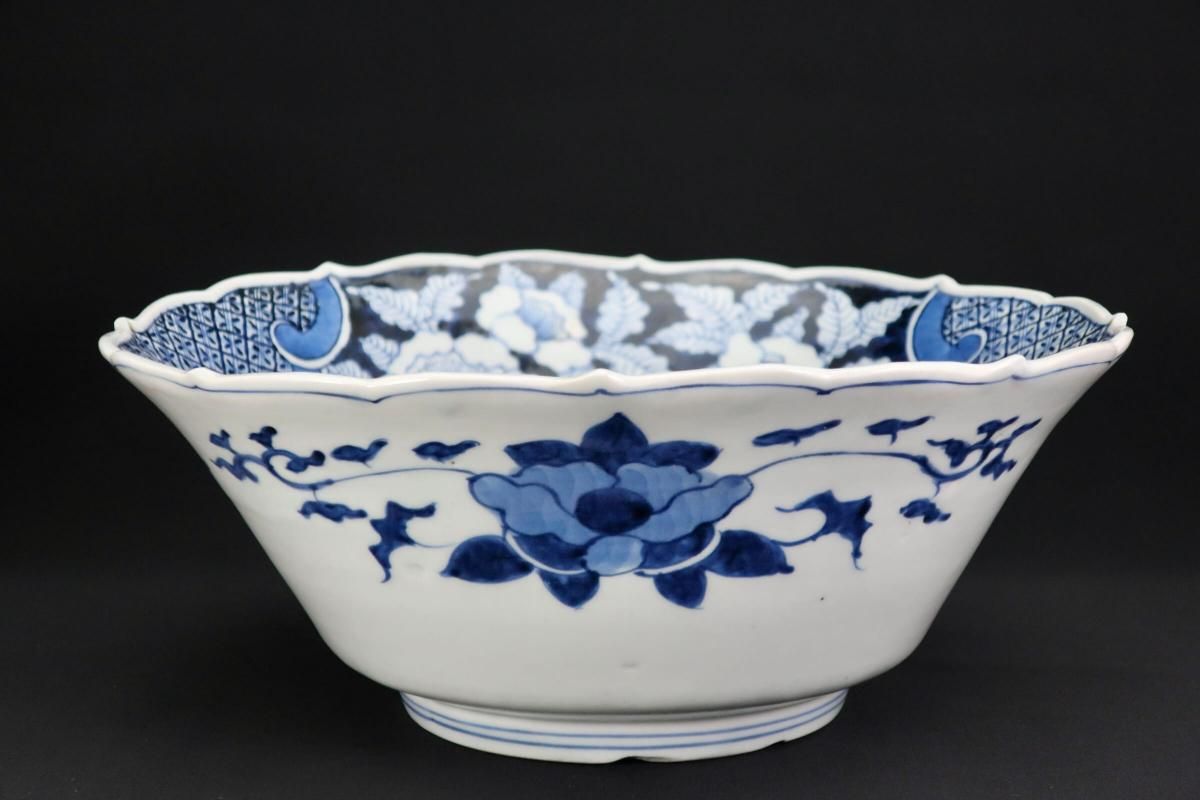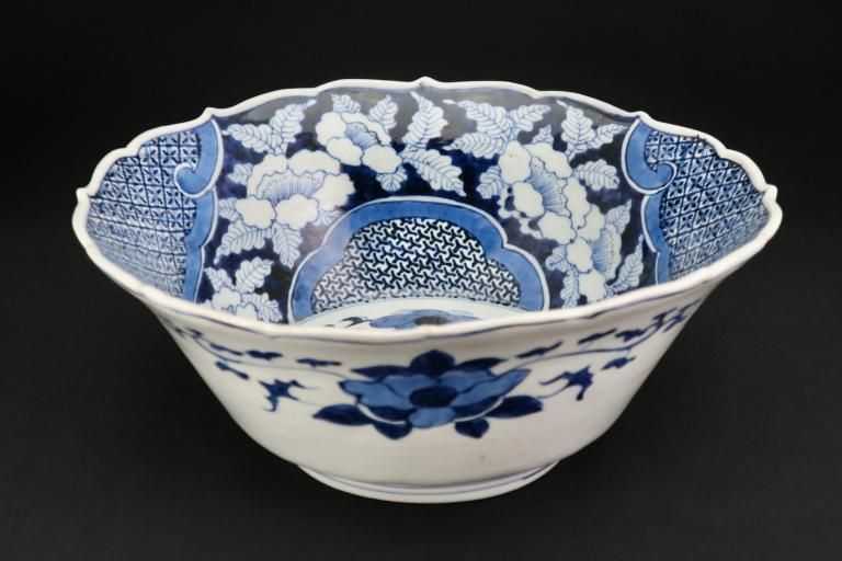 伊万里染付椿文変形大鉢 / Imari Large Blue & White Bowl with the picture of Camellia