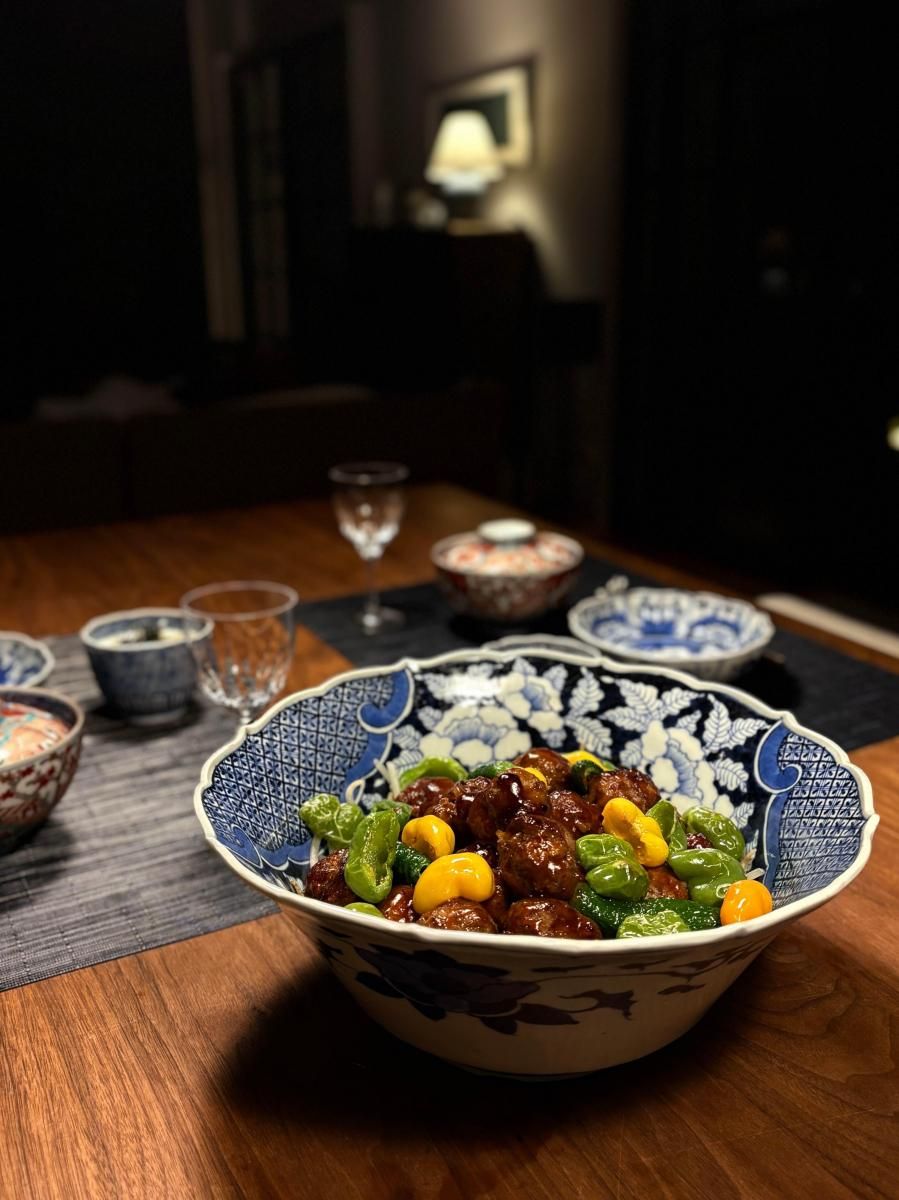 ☆たっぷりとした大きさの染付鉢。はっきりとした色合いと伸びやかに広がった形がポイント。色鮮やかなサラダが似合いそうです。