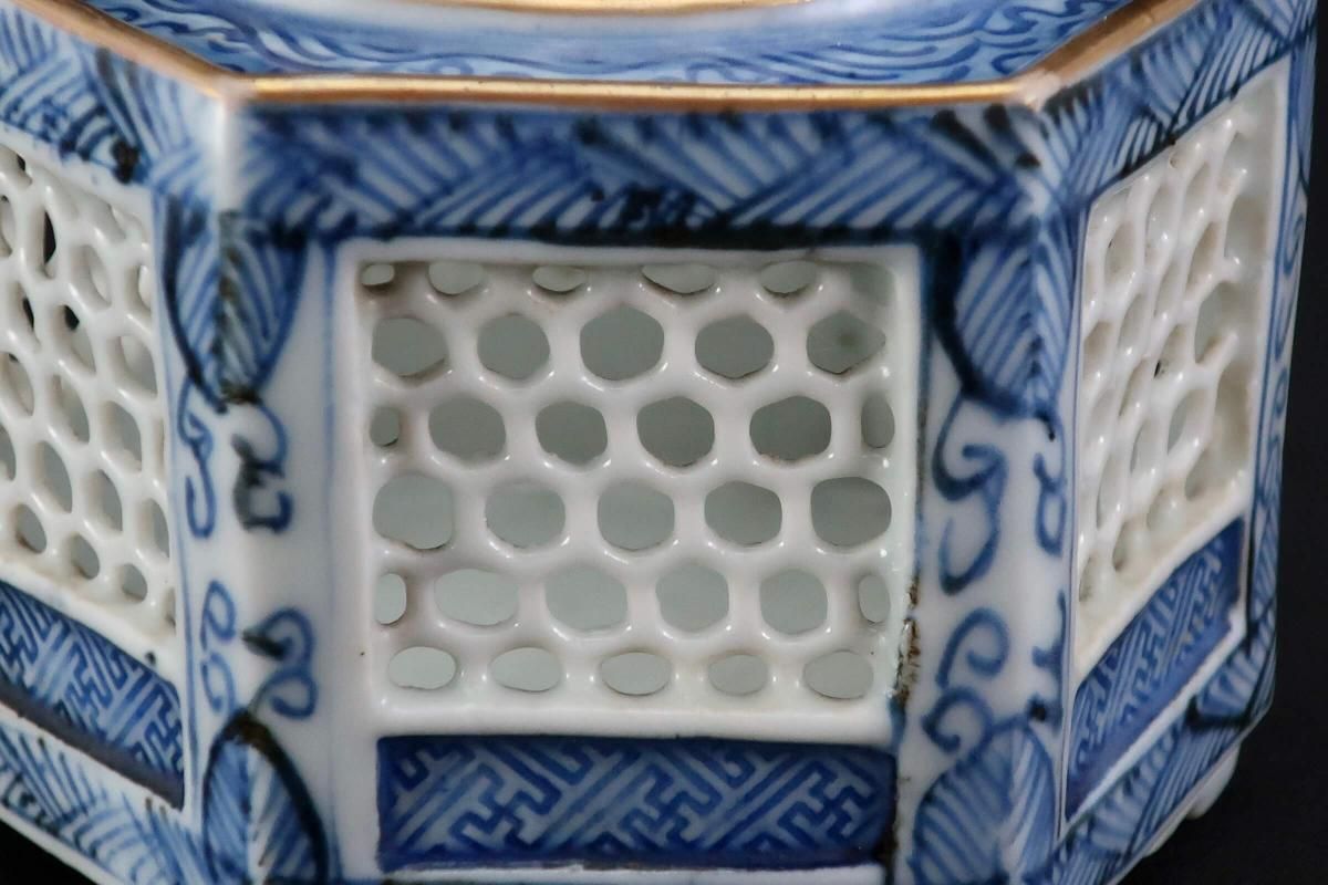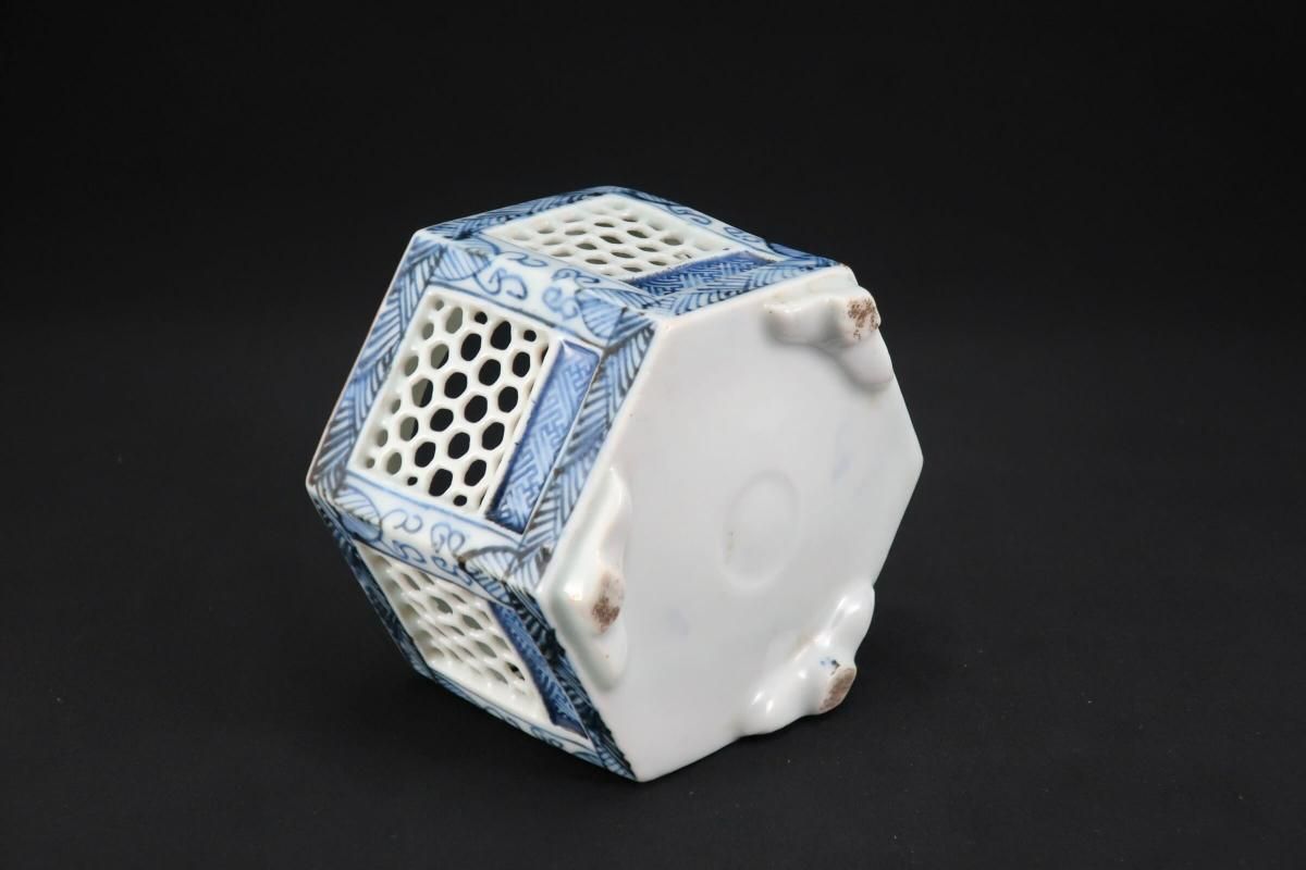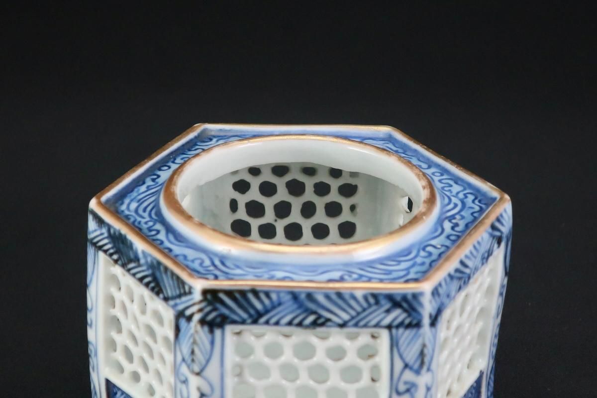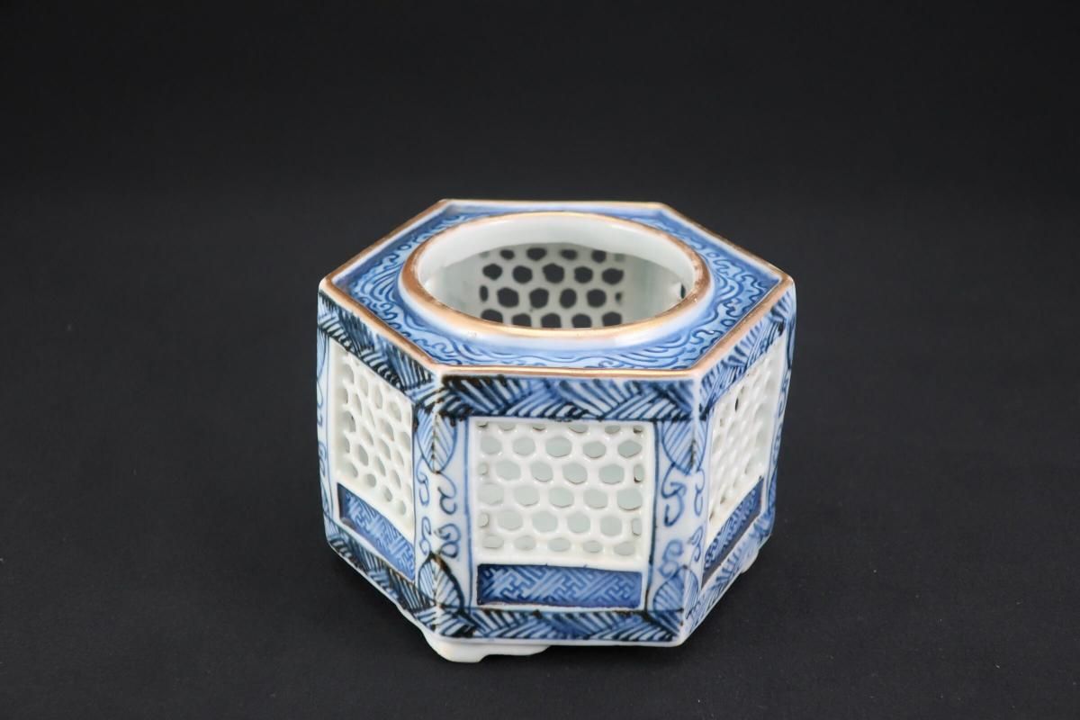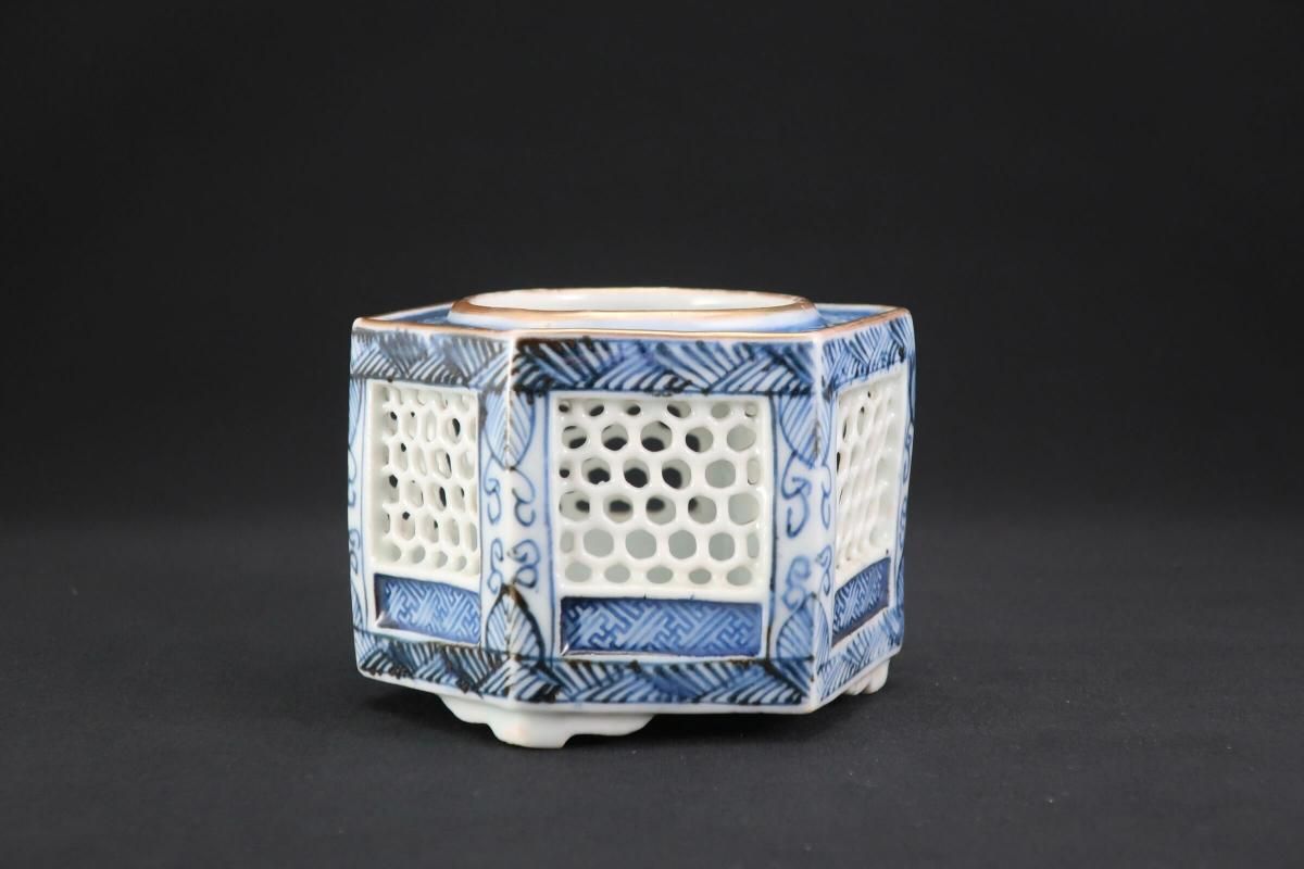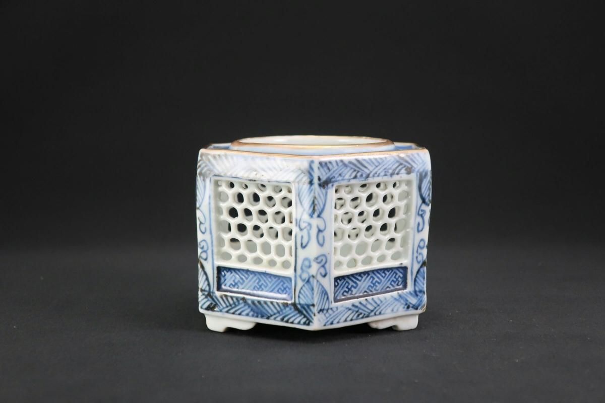 伊万里染付六角透かし盃台 / Imari Hexagonal Blue & White 'Haidai' Sake Cup Holder