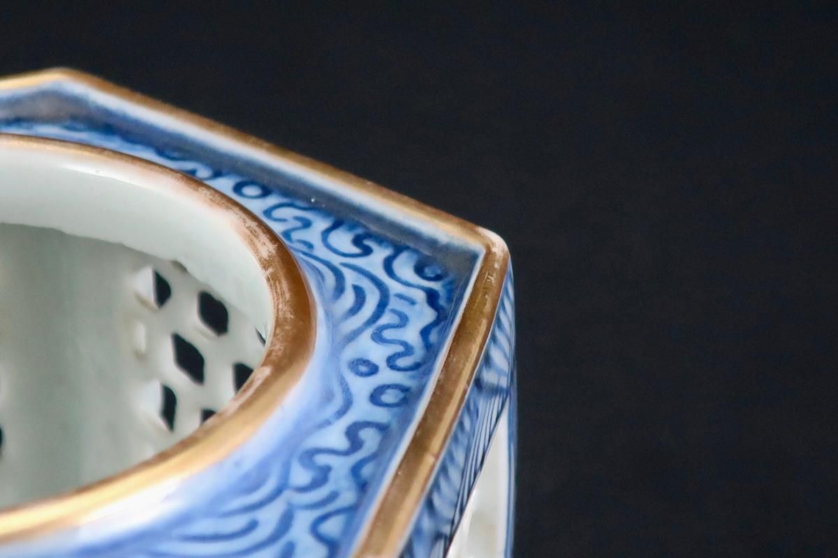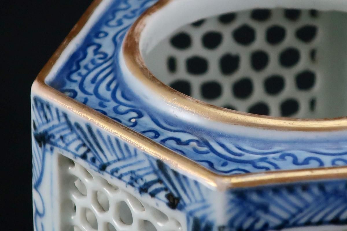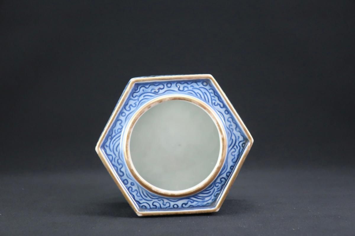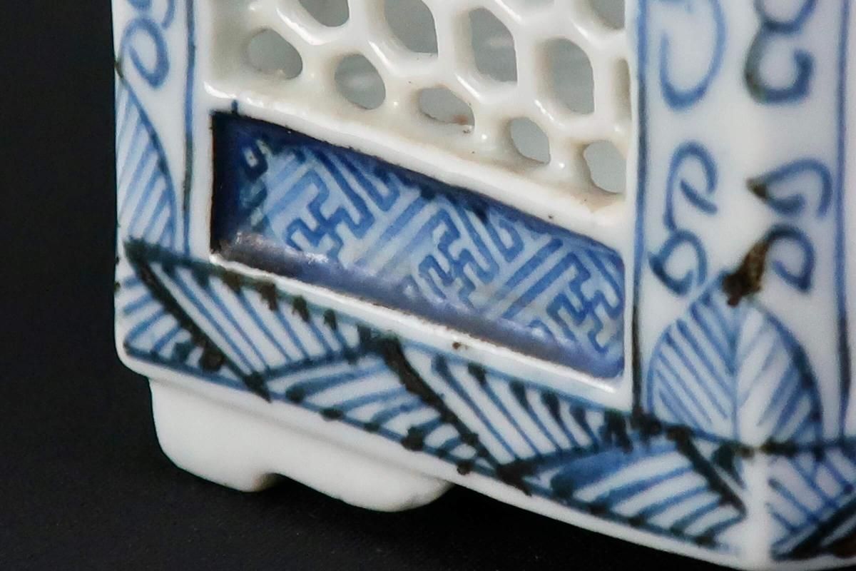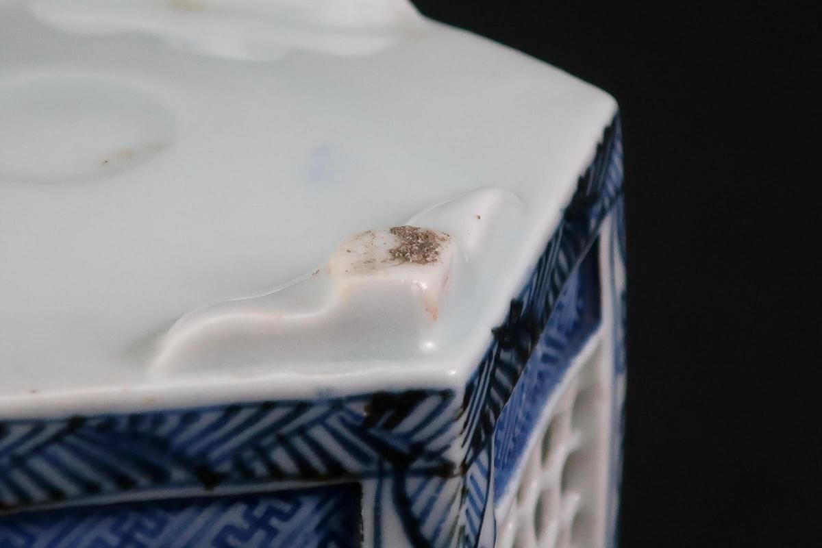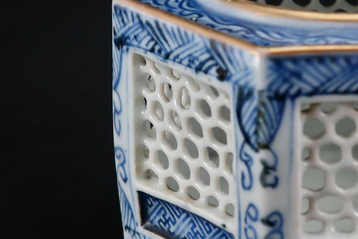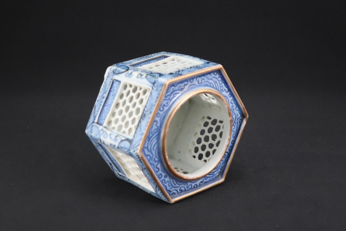 伊万里染付六角透かし盃台 / Imari Hexagonal Blue & White 'Haidai' Sake Cup Holder