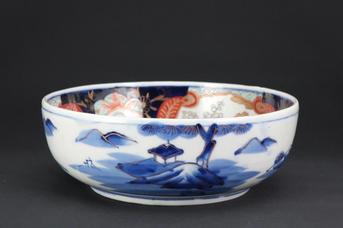 ☆普段遣いに便利なサイズの色絵鉢。明治伊万里の典型的な鮮やかな色合いがお好きの方におすすめです。
