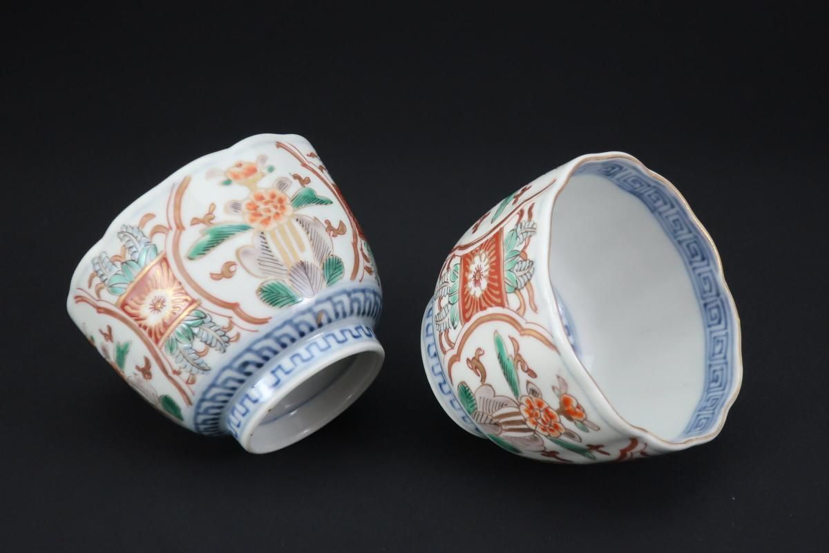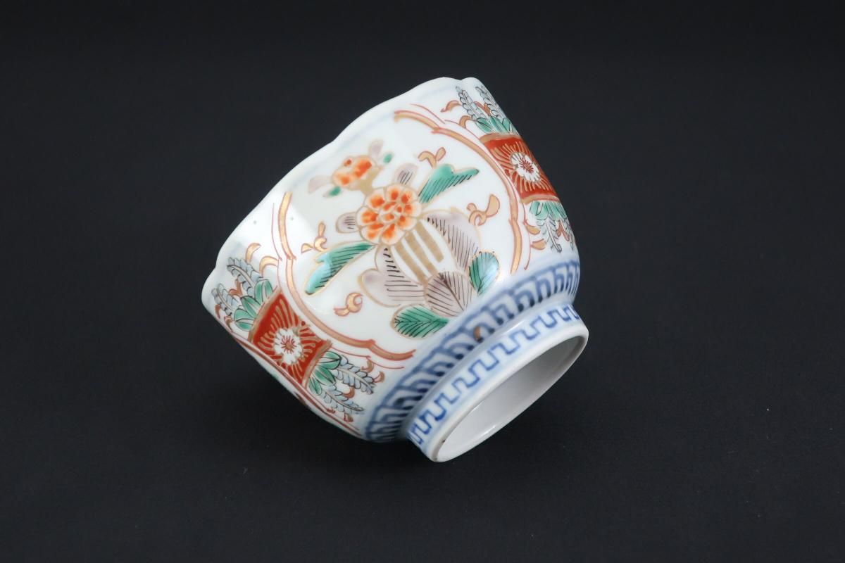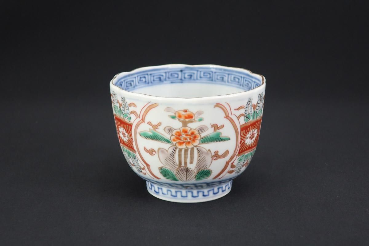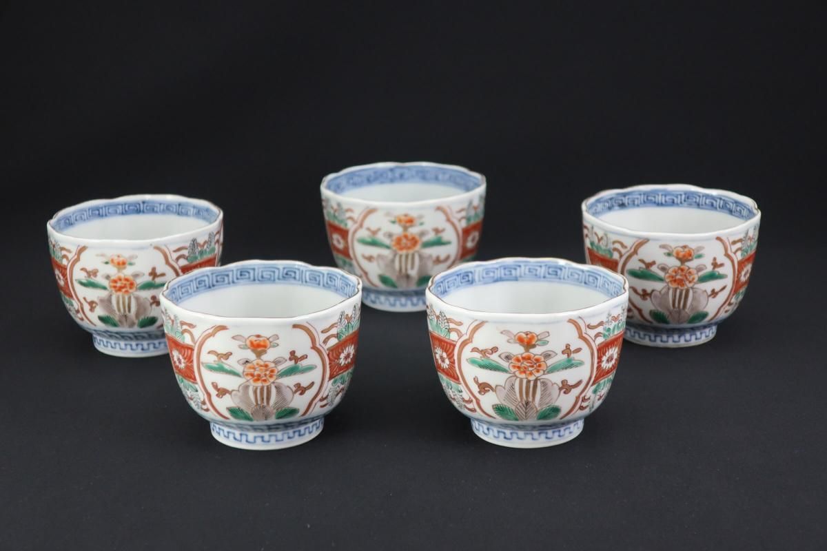 伊万里色絵草花文向付 五客組 / Imari Polychrome 'Mukoduke' Cups set of 5