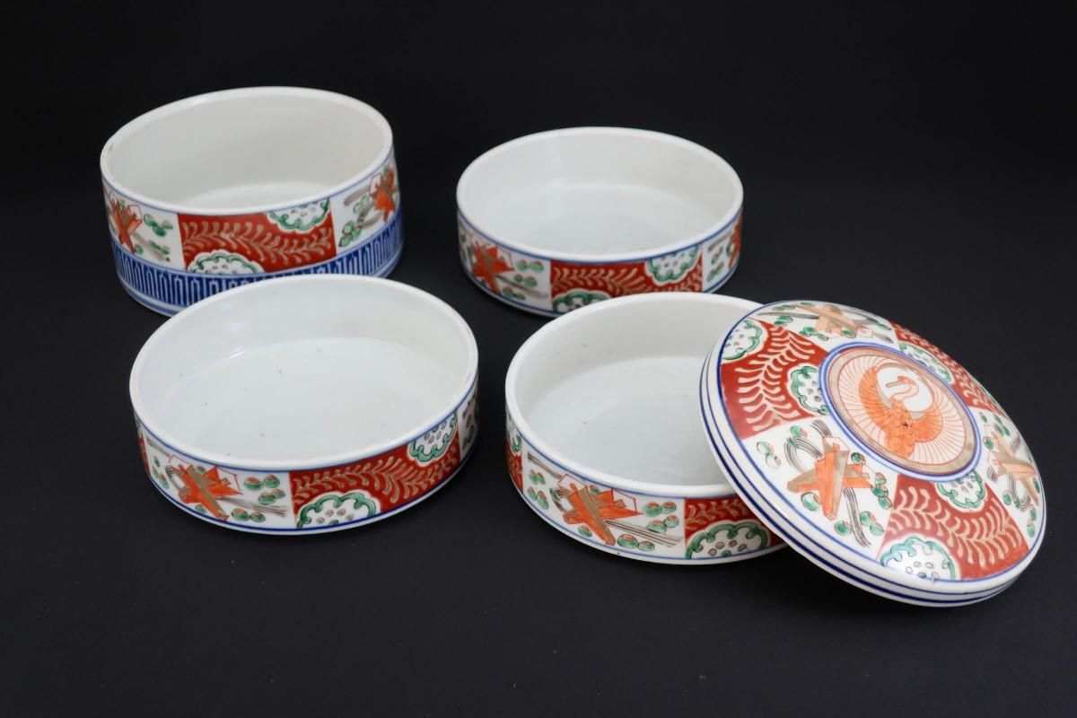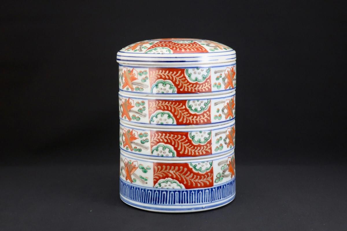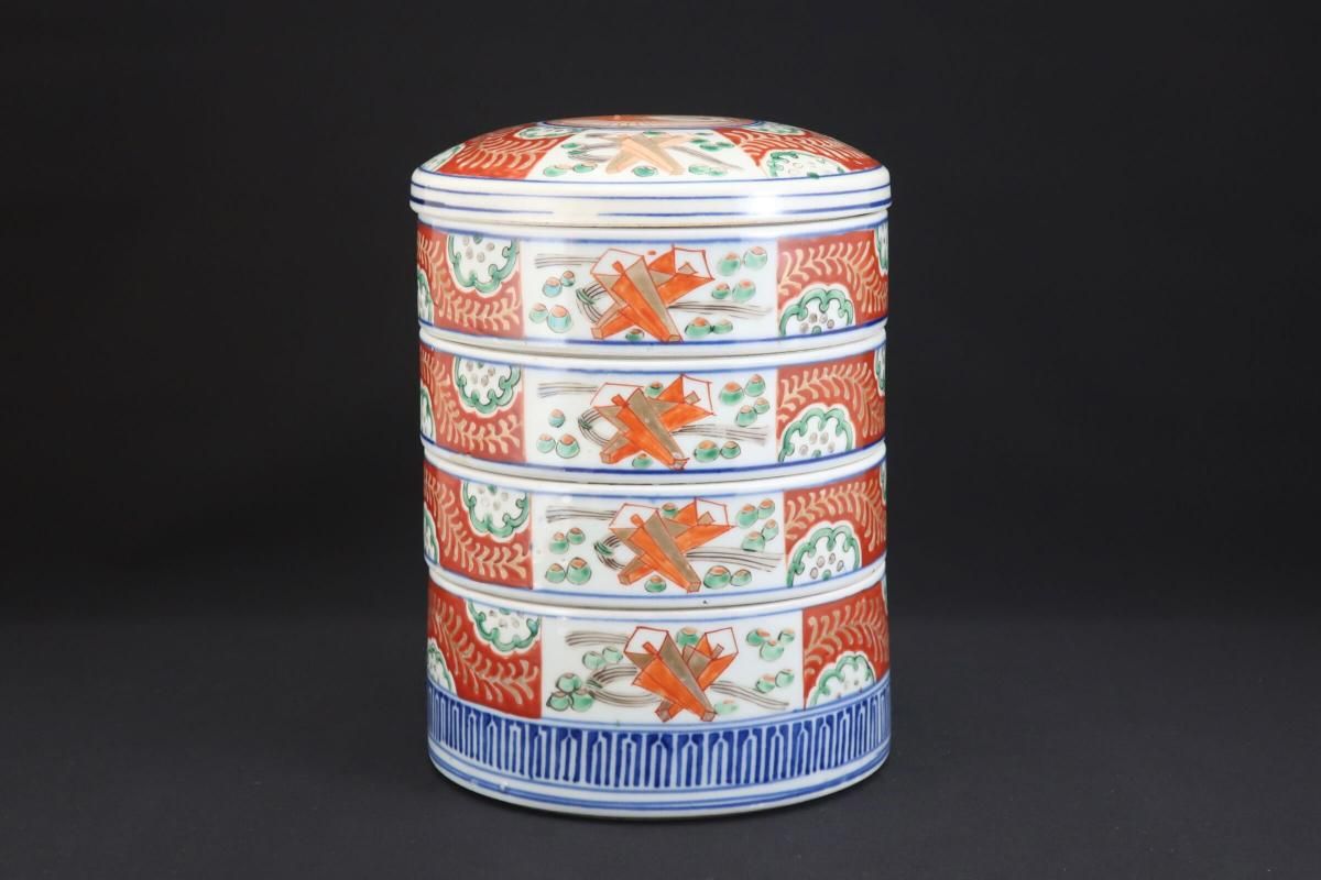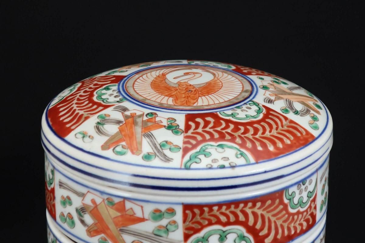 伊万里色絵鶴熨斗文段重 / Imari Round Polychrome 'Danju' Food Boxes