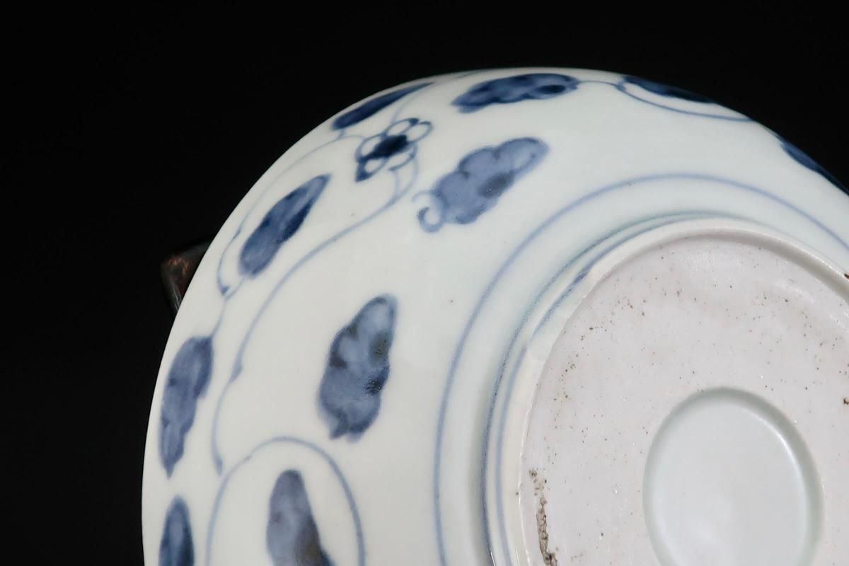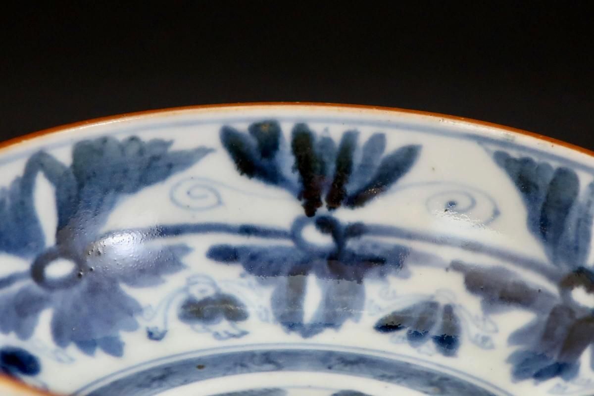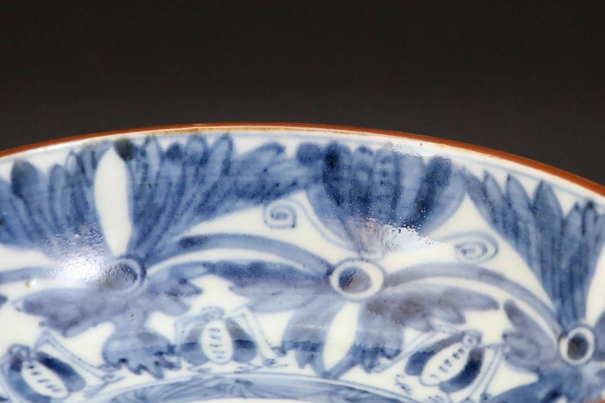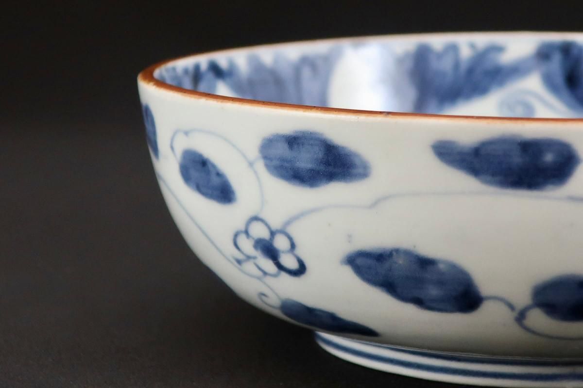 ☆デフォルメされた菊と蝶々が描かれたなます皿。江戸期の自然な呉須の色がとても綺麗。やや小さめサイズはお鍋料理のお取皿としても使えそう。手描きなので絵付に個体差があるのも味のうち。素朴な料理がよく似合いそうです。