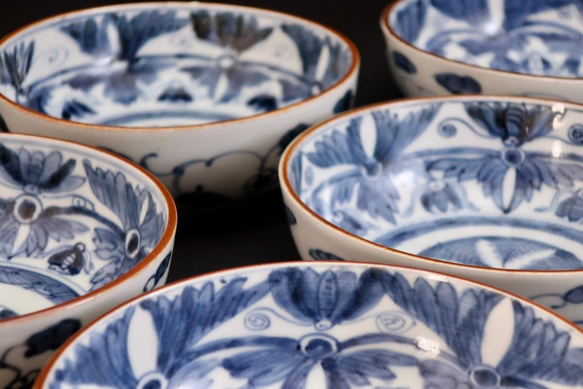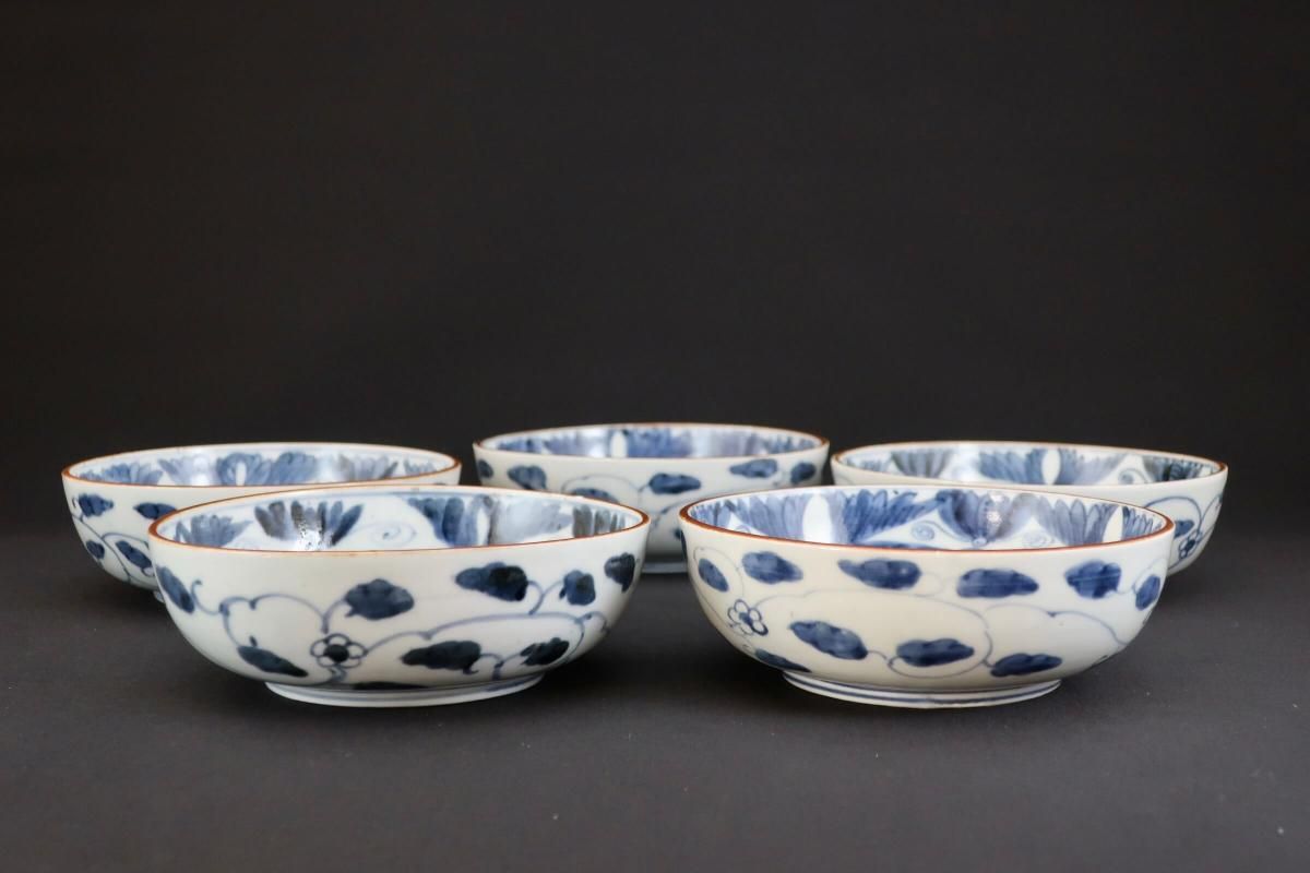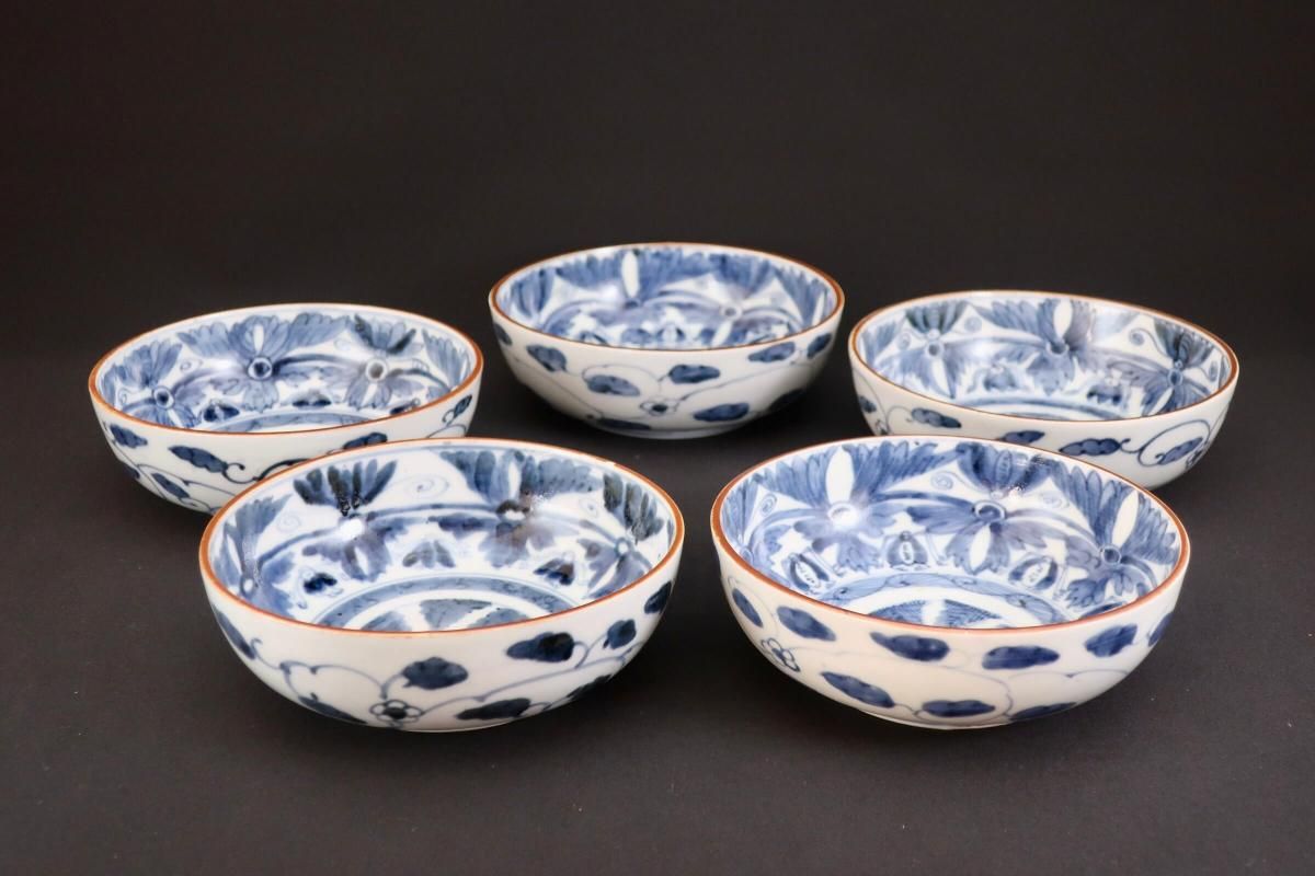 伊万里染付菊花文なます皿 五枚組 / Imari Blue & White 'Namasu' Bowls set of 5