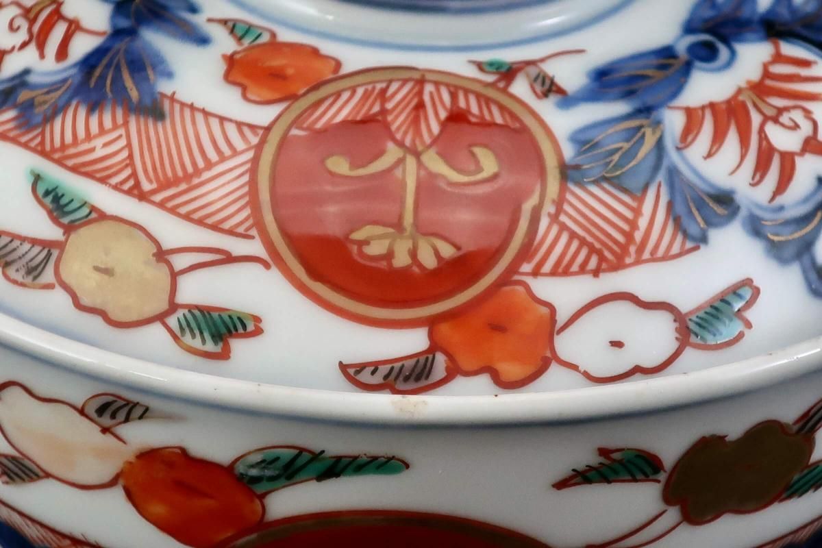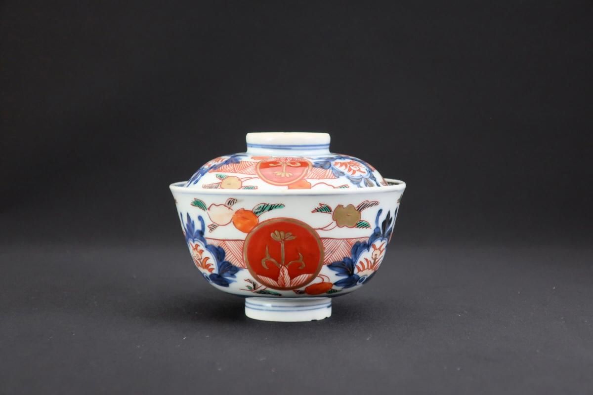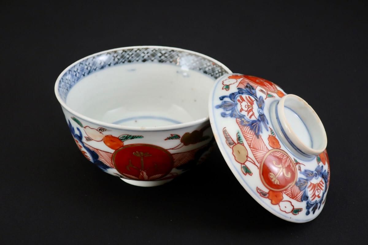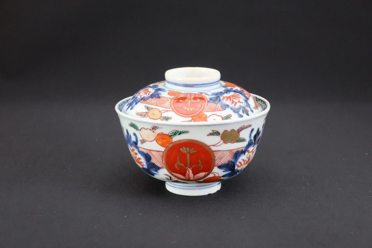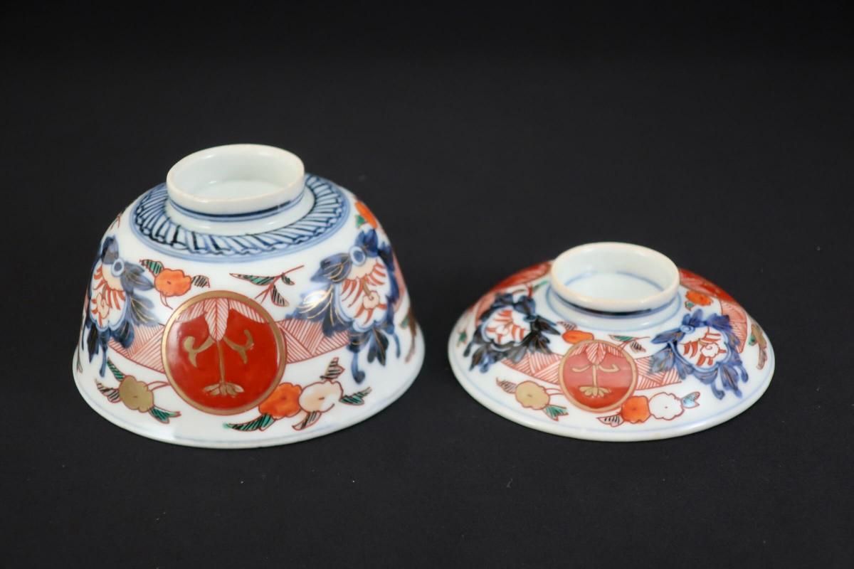 伊万里色絵赤玉草花文蓋茶碗 五客組 / Imari Polychrome Bowls with Lids set of 5