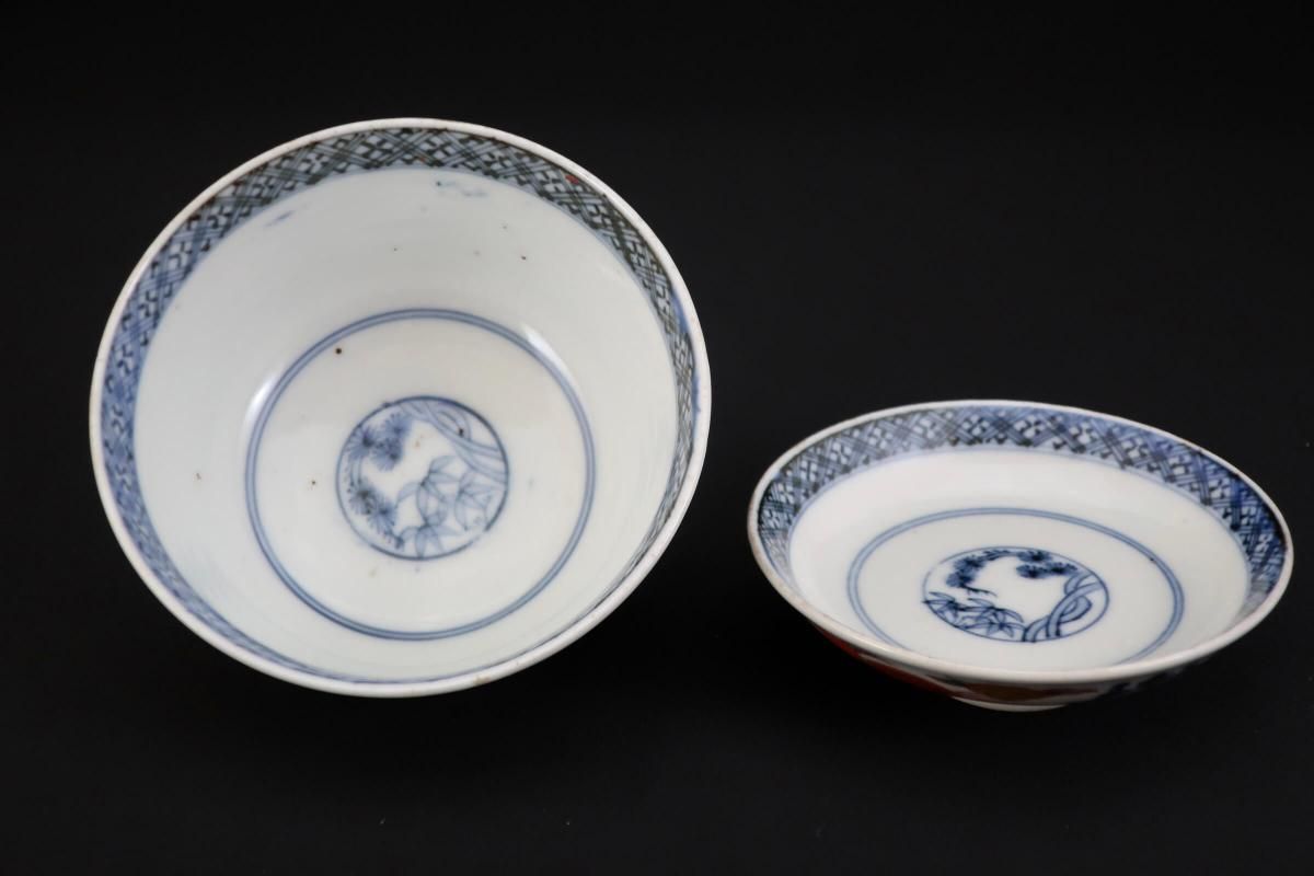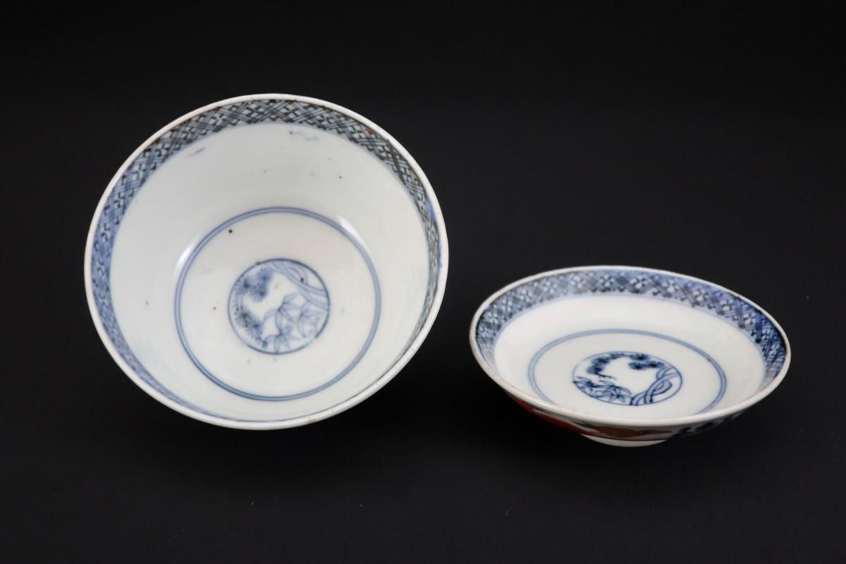 ☆3セット在庫がありますが、手描き故、絵付けに相違があります。全ピースの掲載は致しませんが、ご了承下さいませ。また、当時の窯の状況から、焼成時に出来た鉄分が付着して出来た茶色の部分や、ピンホール、釉薬の剥がれ等ございます。ご了承の上、ご購入くださいませ。