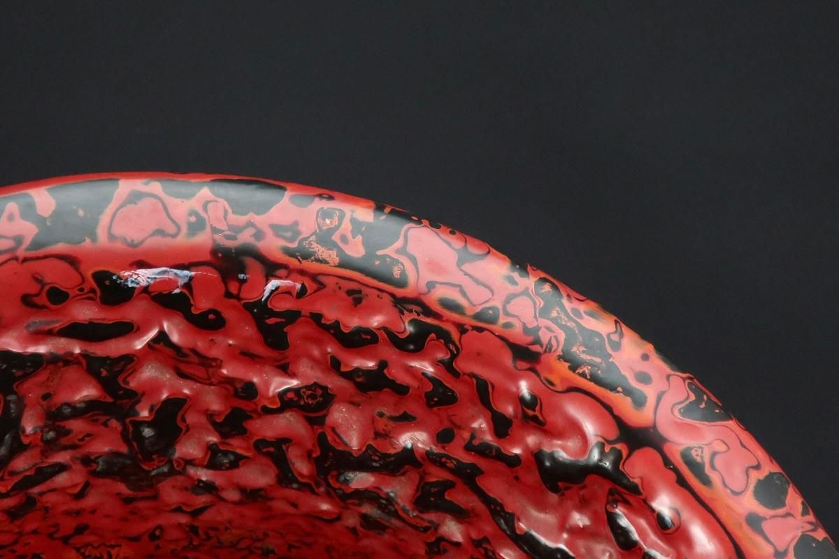 ☆乾漆鉢とは、塗り師さんが、漆を入れていた道具で何層にも漆が塗られており、それを研ぎ出して艶を上げた鉢の事を言います。鮮やかな朱漆と黒のコントラストが美しく、偶然出来たその表情に魅了される方も。そのものだけでも大きな存在感が感じられますが、シンプルなグリーンを入れて楽しまれても♫