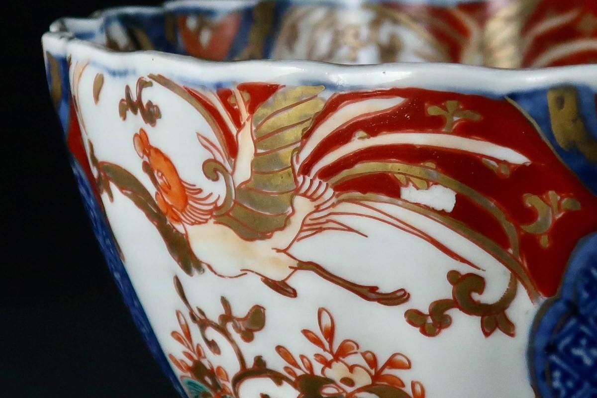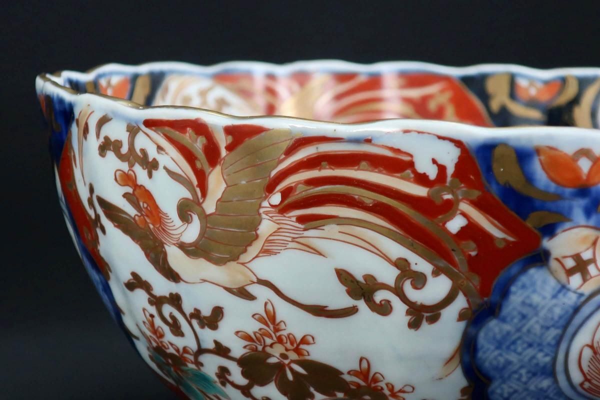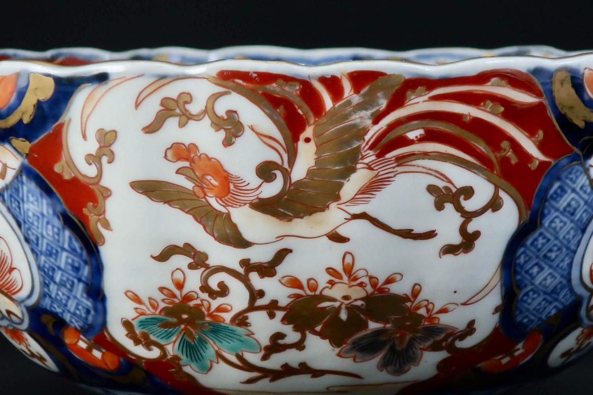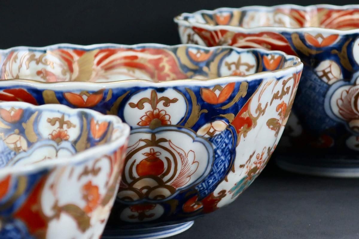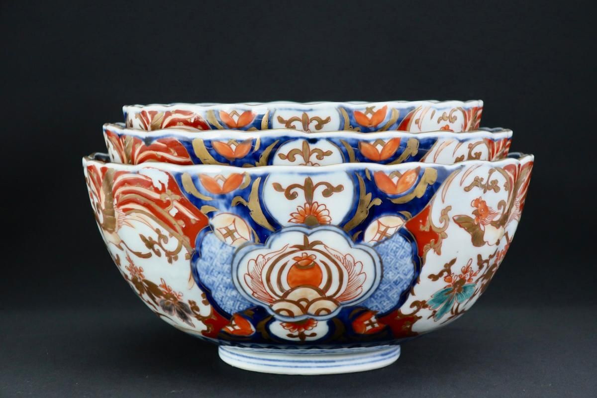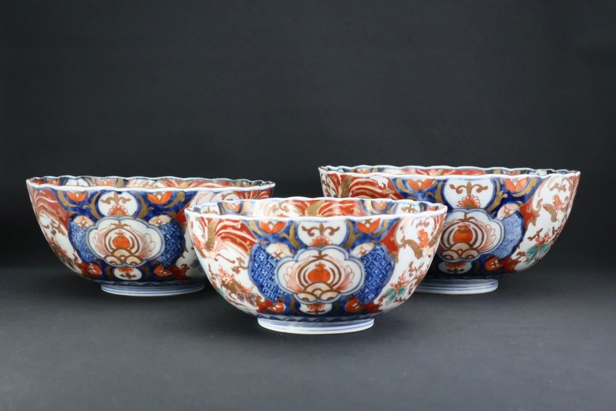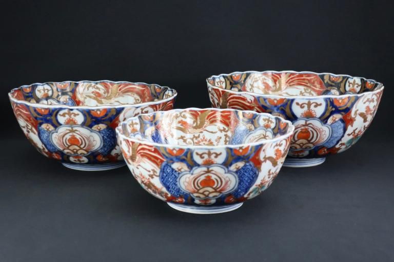 伊万里色絵菊花形桐鳳凰文三つ組鉢(大中小) / Imari Polychrome Bowls with the picture of Flower Basket set of 3(LMS)