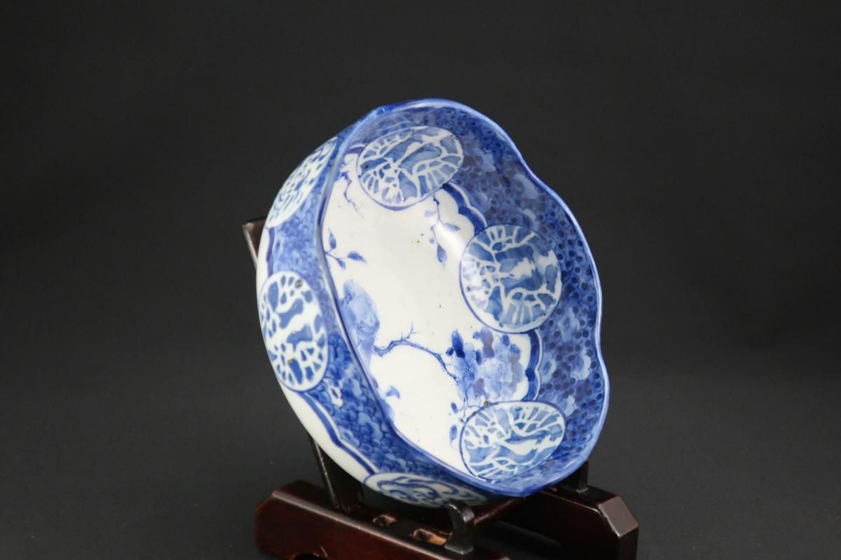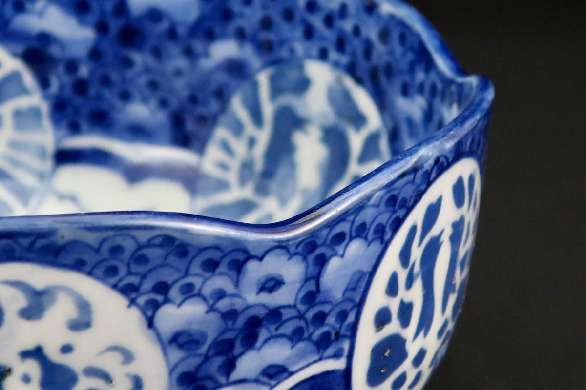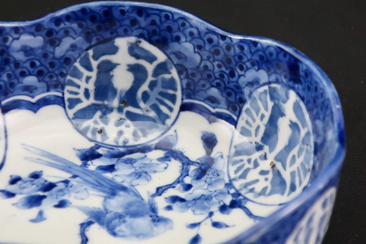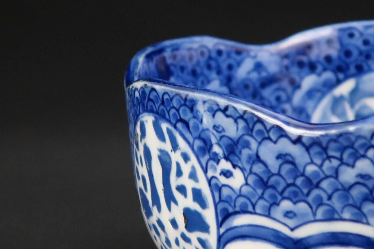 伊万里染付花鳥文変形鉢 / Imari Blue & White Bowl with the picture of Bird & Flowers