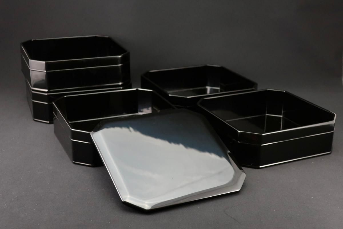 溜一閑 縁高 / Black-lacquered 'Fuchidaka' Sweet Boxes