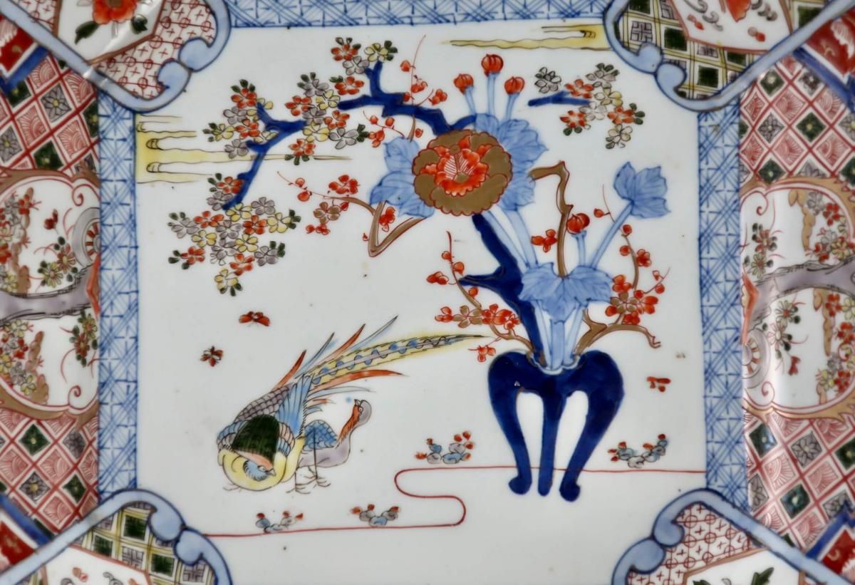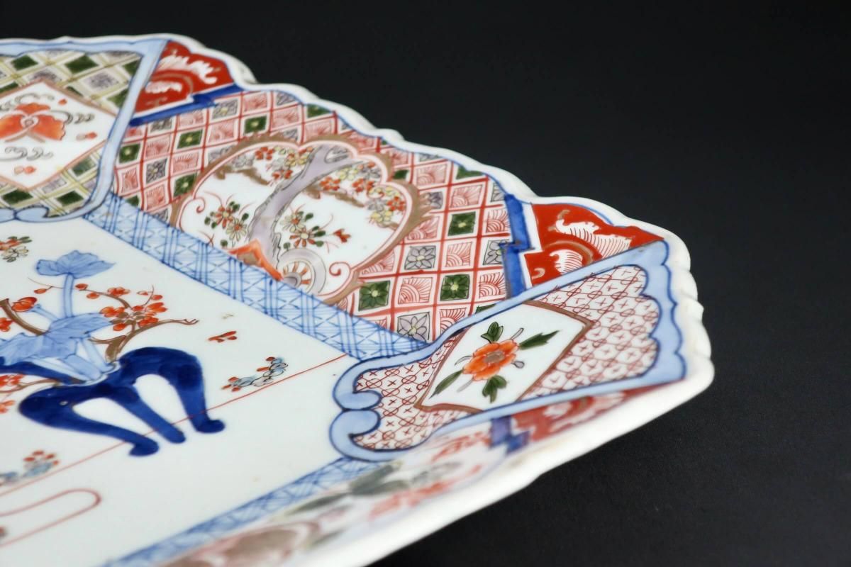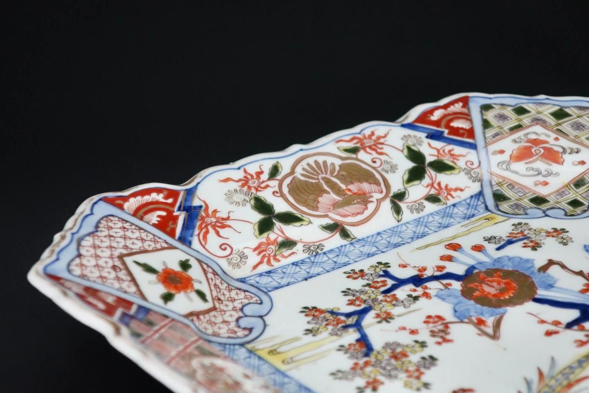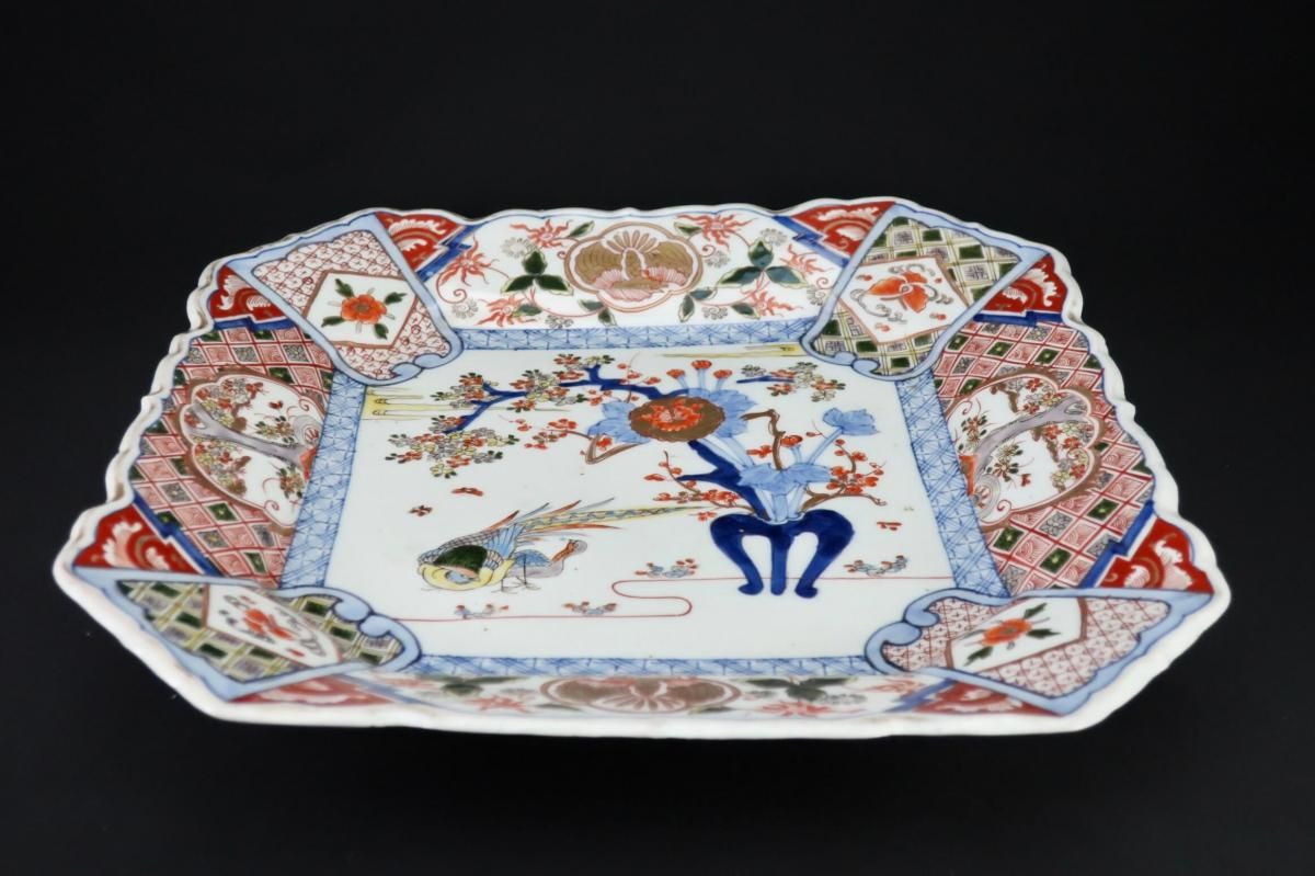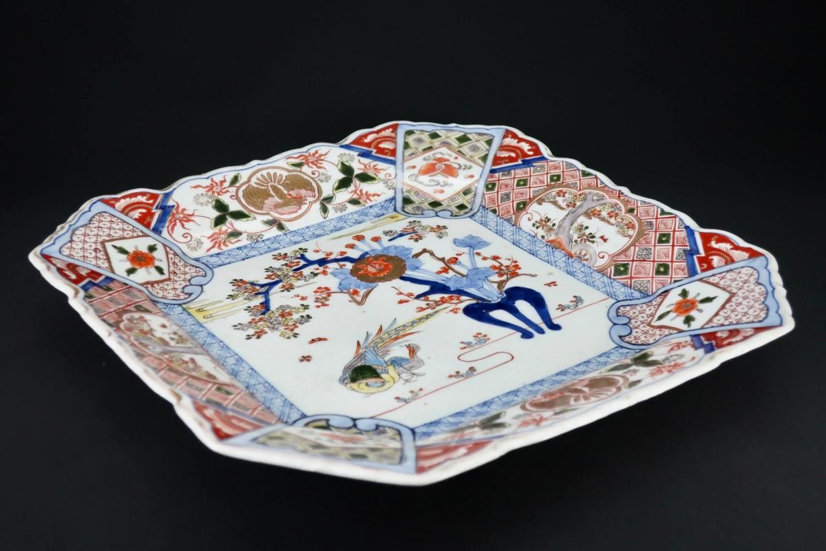 伊万里色絵花鳥文変形隅切角大皿 / Imari Laarge Square Plate with the picture of Birds & Flowers